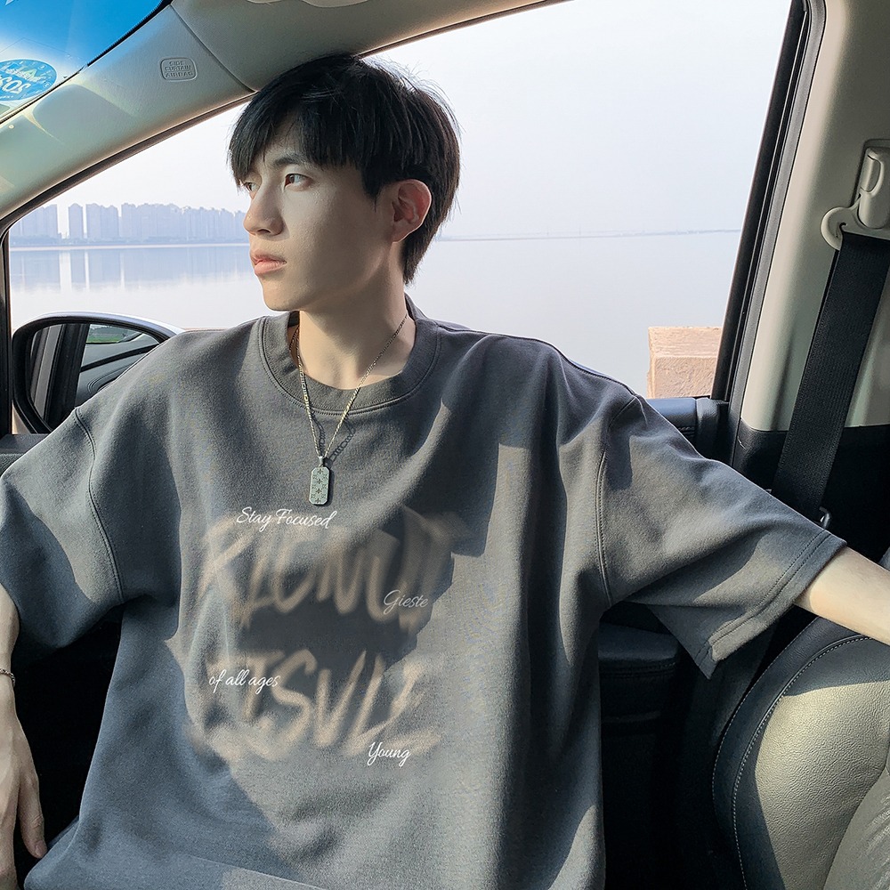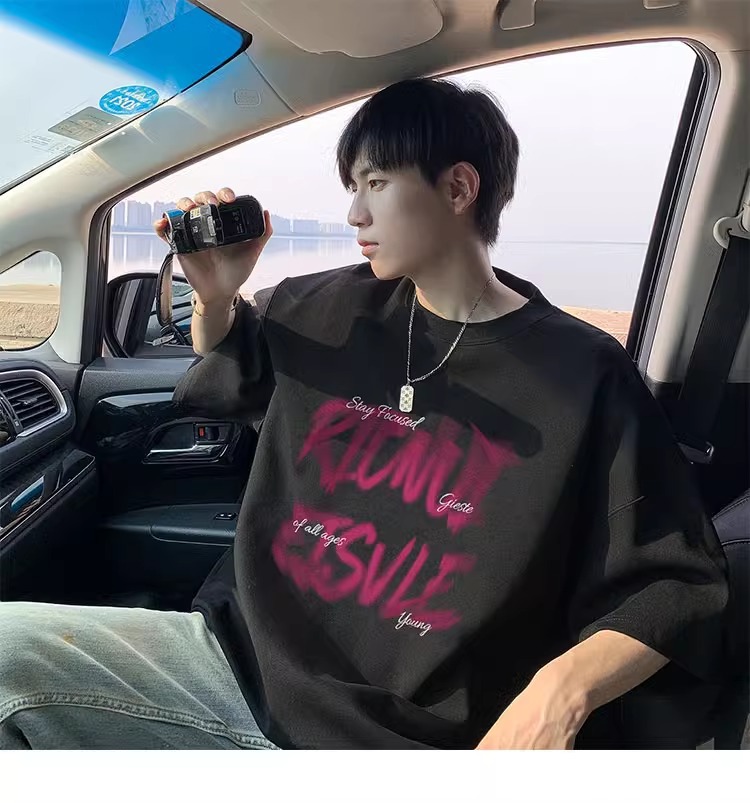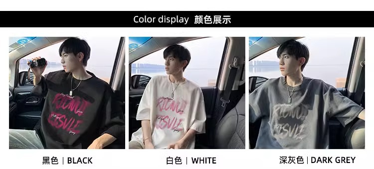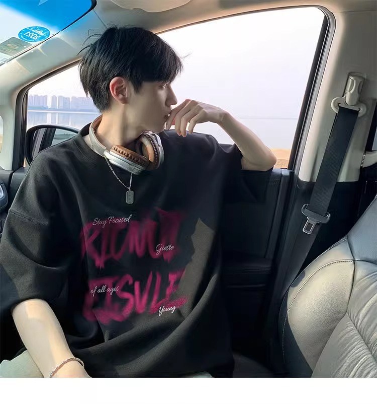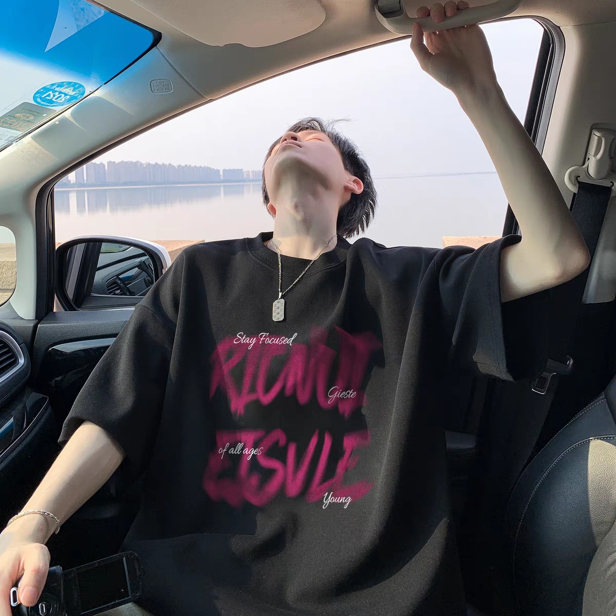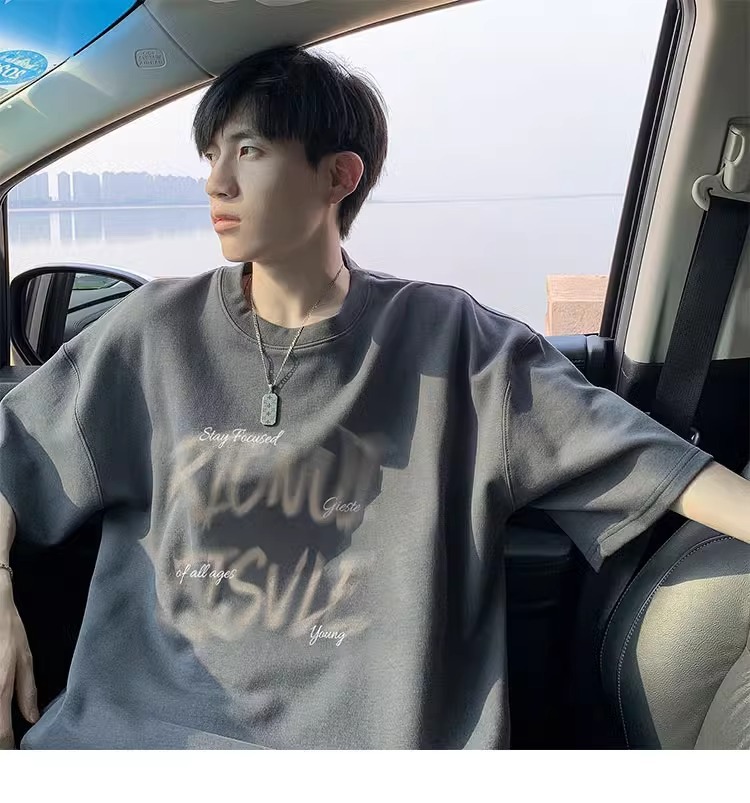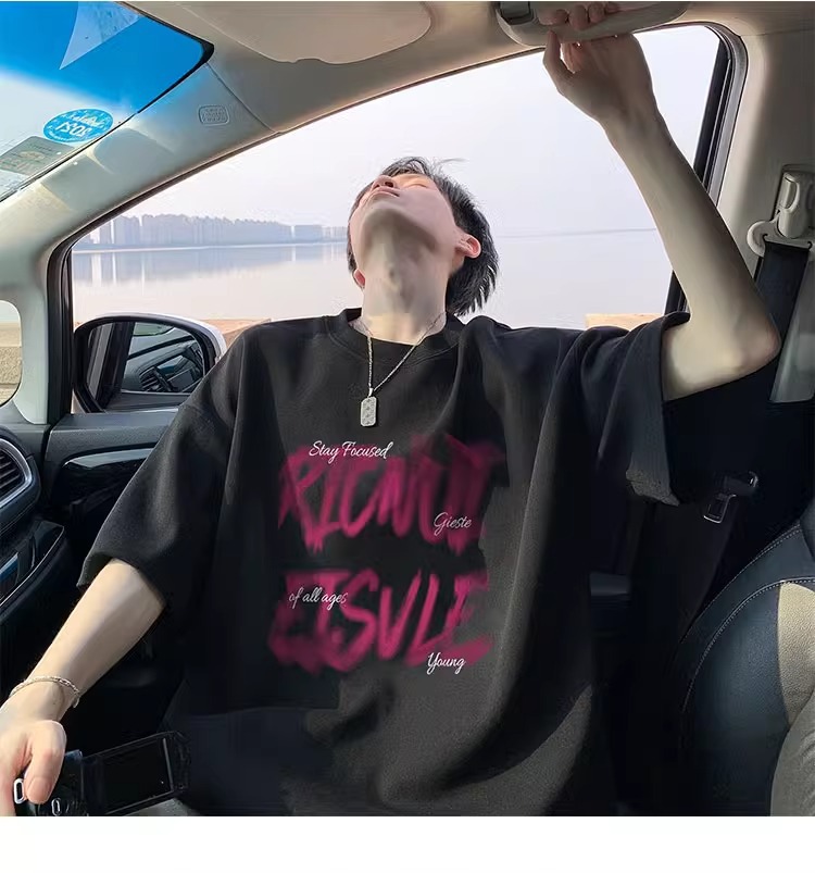 100%纯棉240g新款字母印花t恤男女同款百塔宽松休闲短袖t恤小落肩