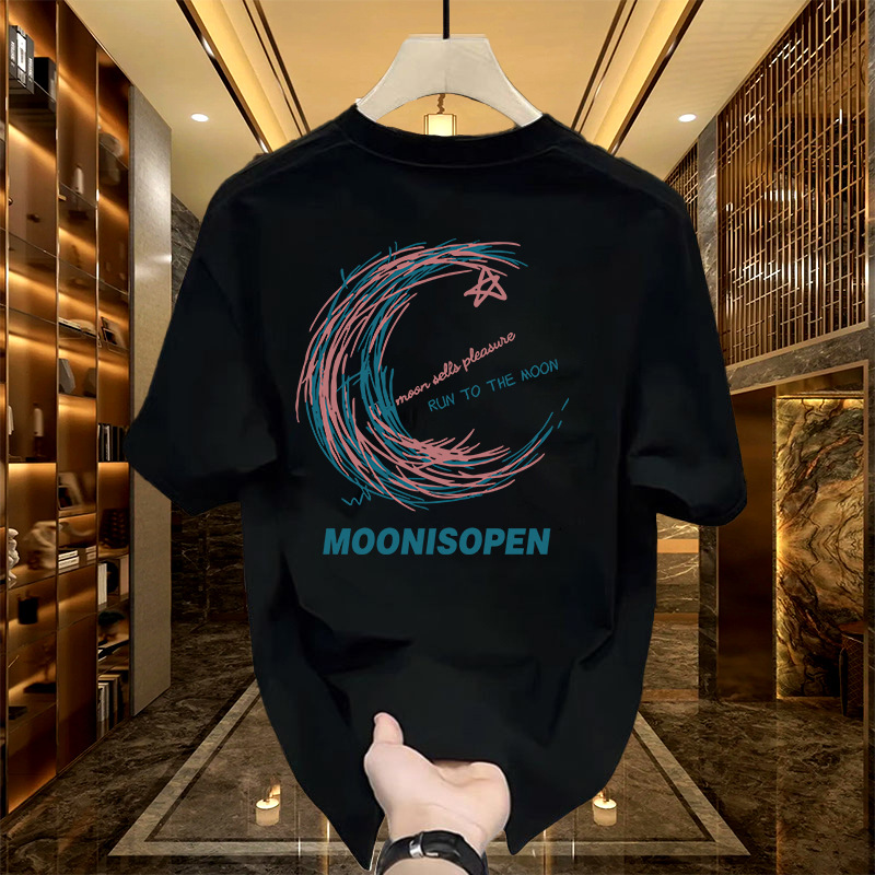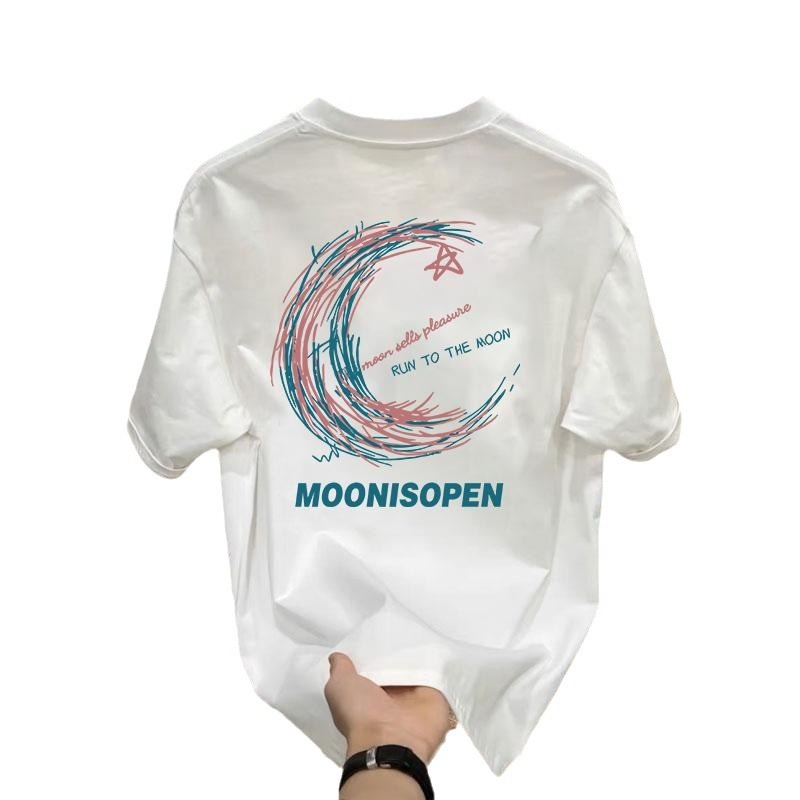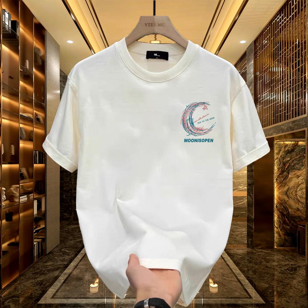 2024新款纯棉短袖T恤潮流百搭美式设计印花宽松透气男士圆领上衣