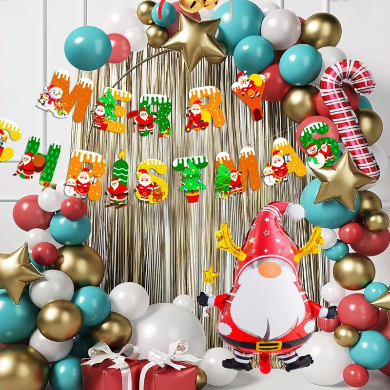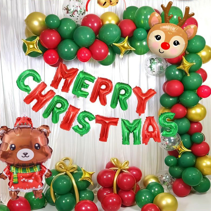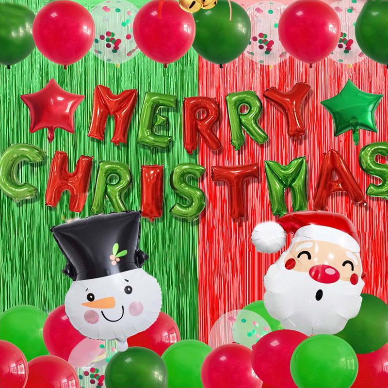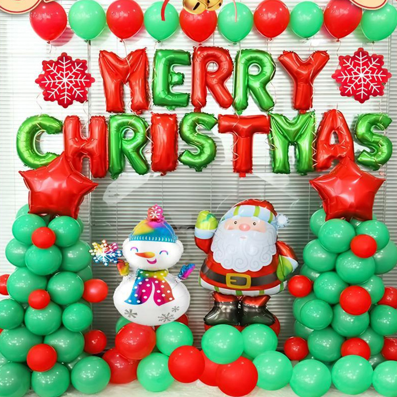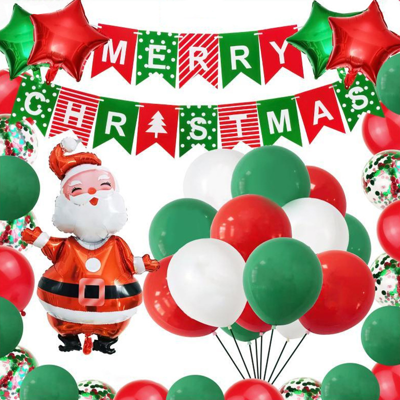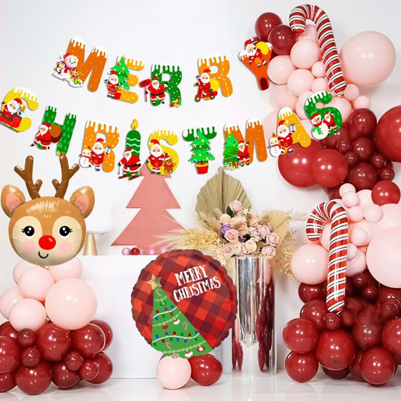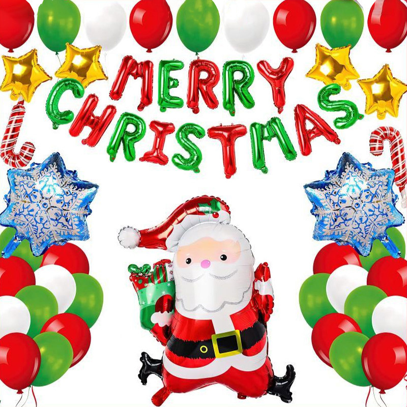 新款圣诞气球套装圣诞老人麋鹿铝膜气球节日派对活动装饰布置用品