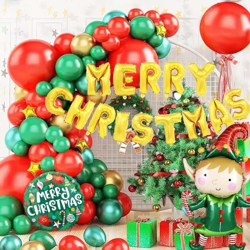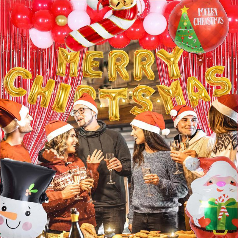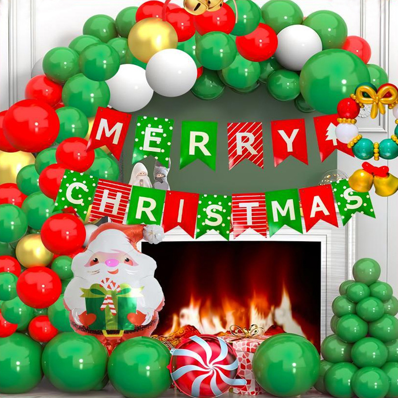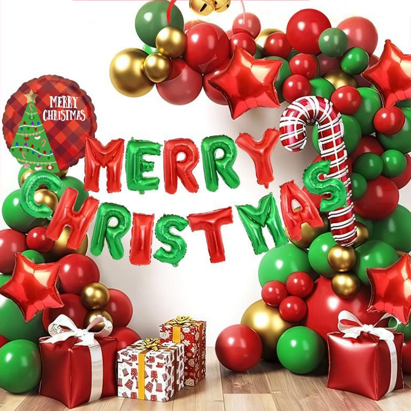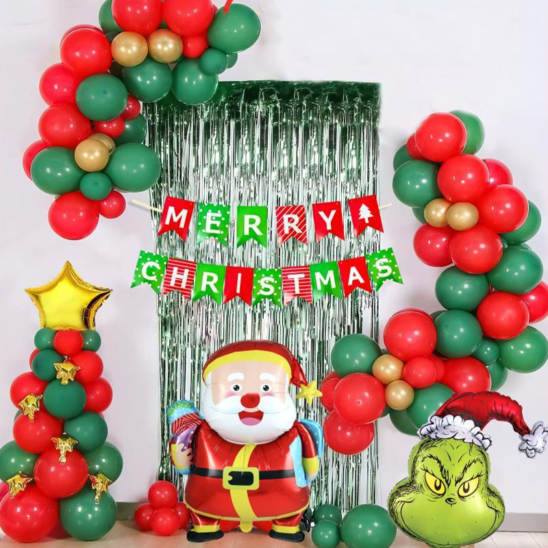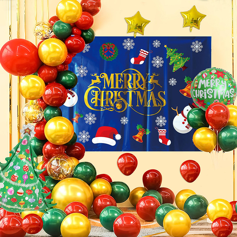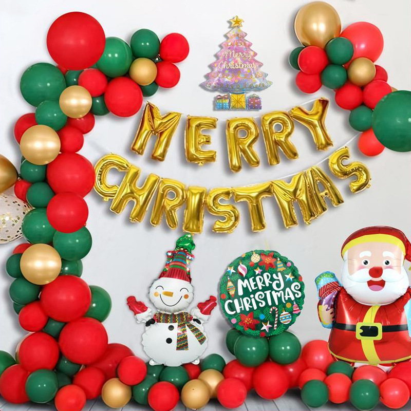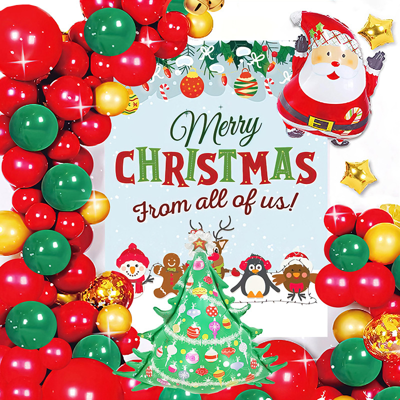 新款圣诞气球套装圣诞老人麋鹿铝膜气球节日派对活动装饰布置用品