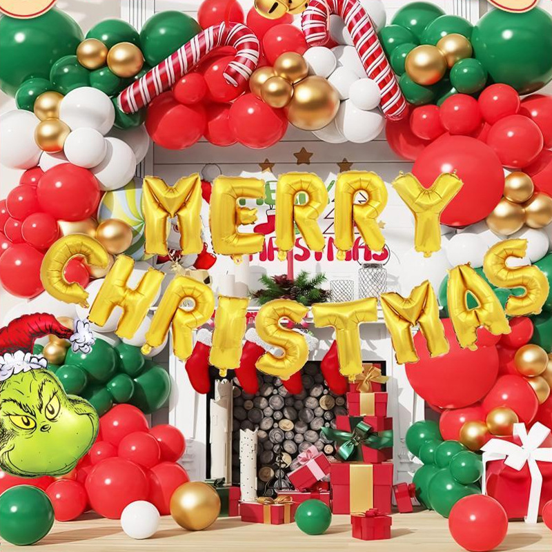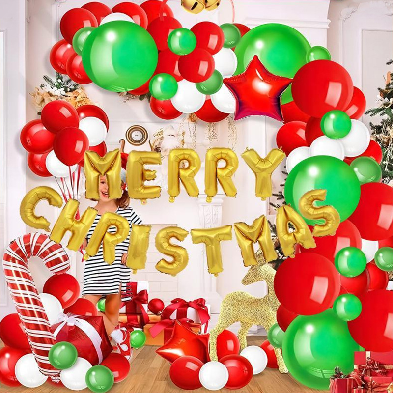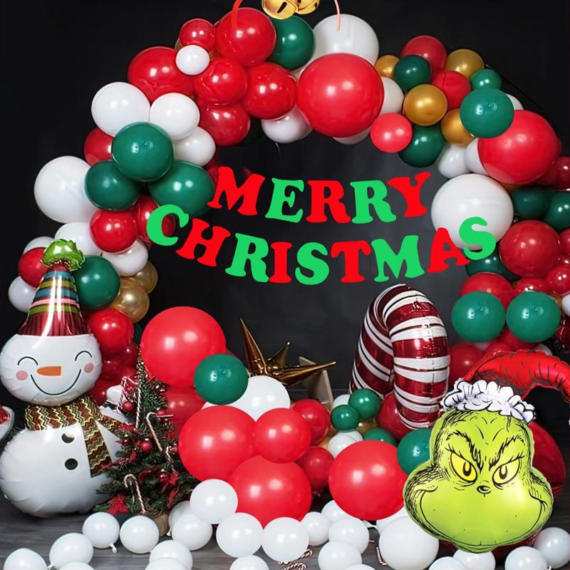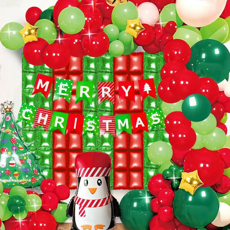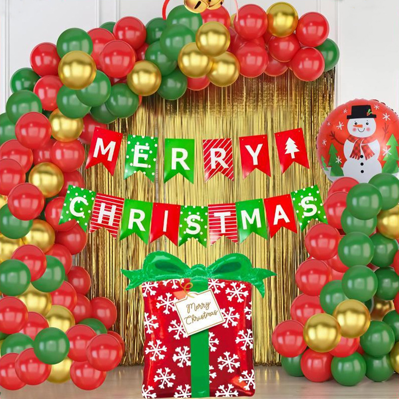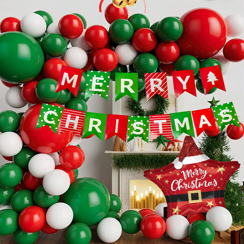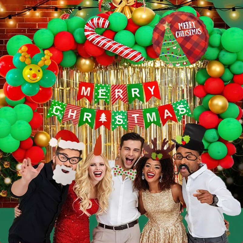 新款圣诞气球套装圣诞老人麋鹿铝膜气球节日派对活动装饰布置用品
