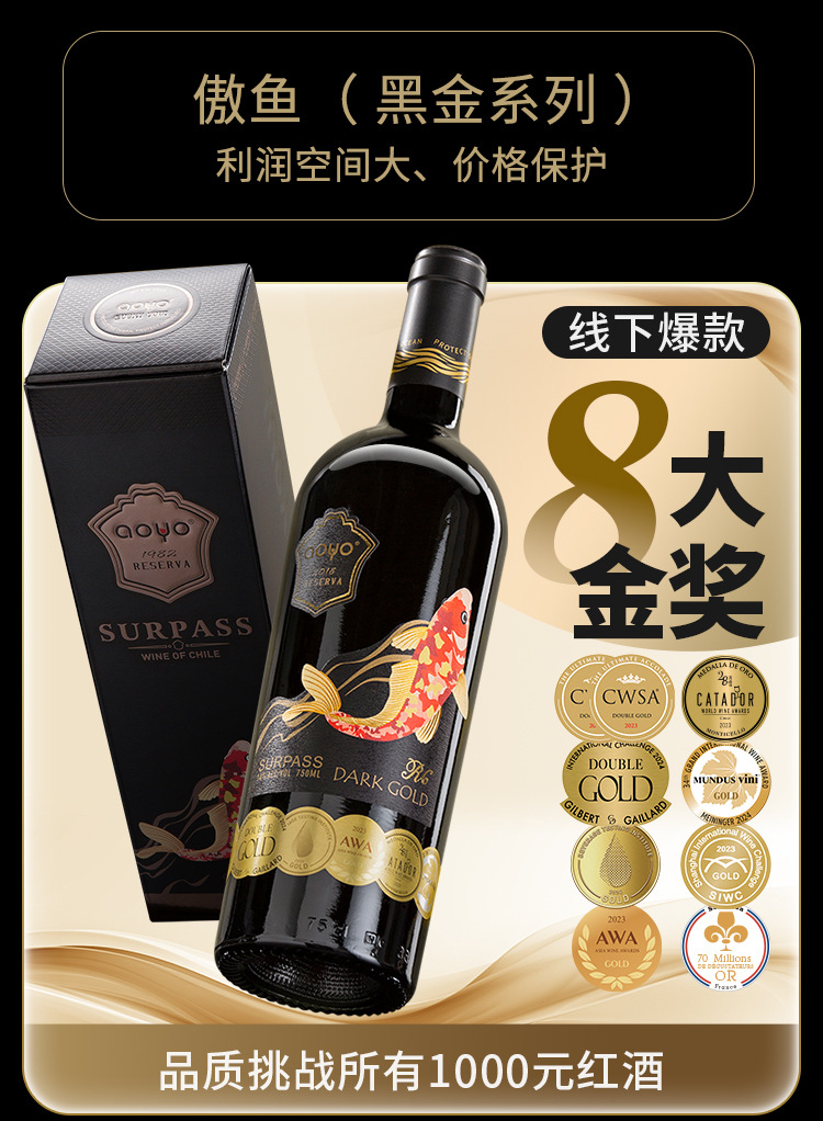 傲鱼智利原装原瓶进口红酒干红葡萄酒水果酒批发代理整箱礼盒装