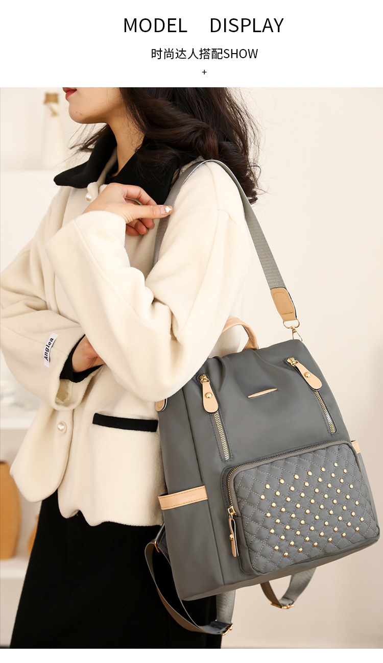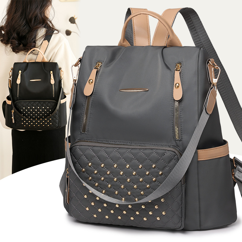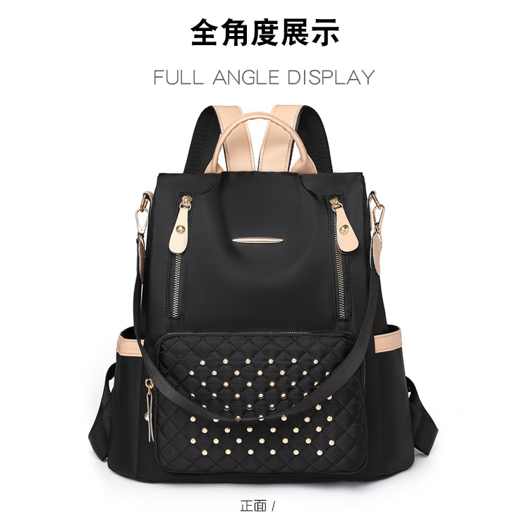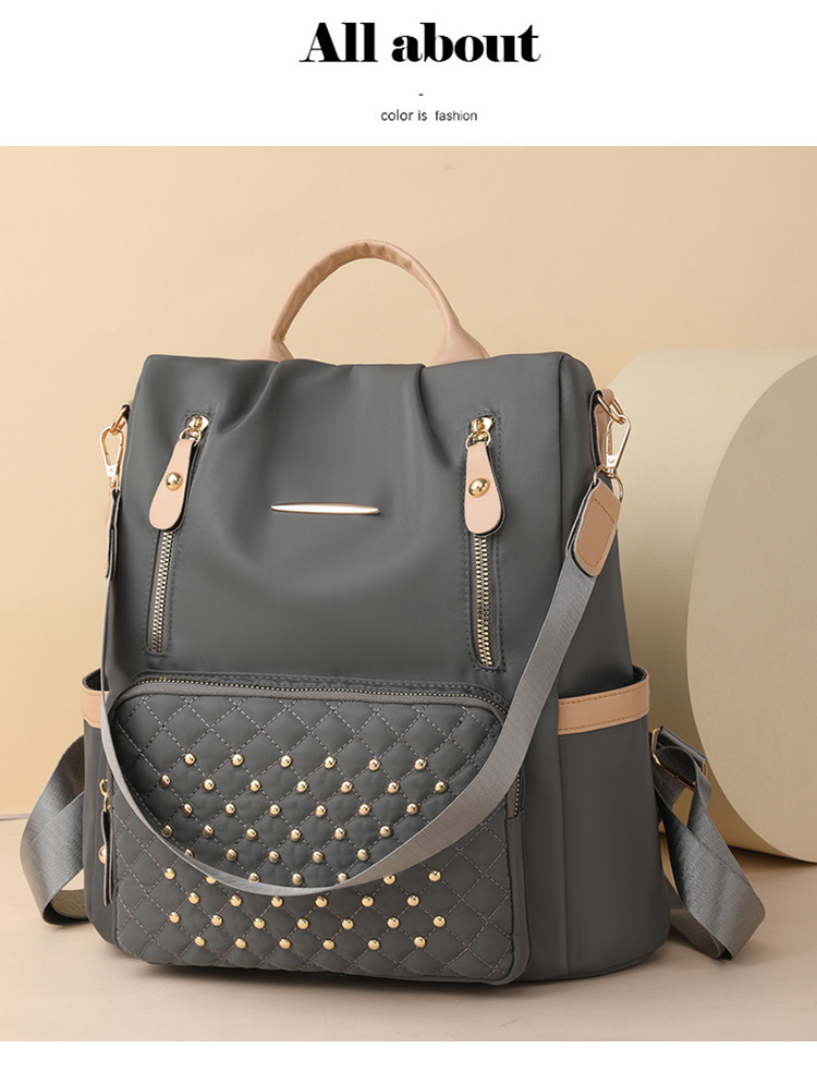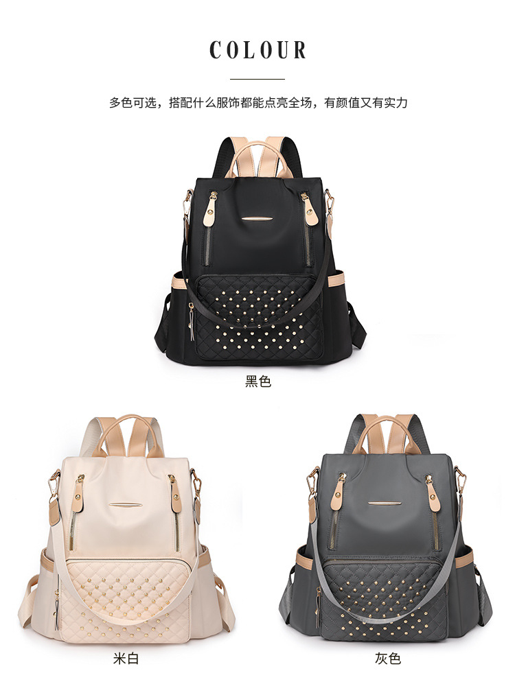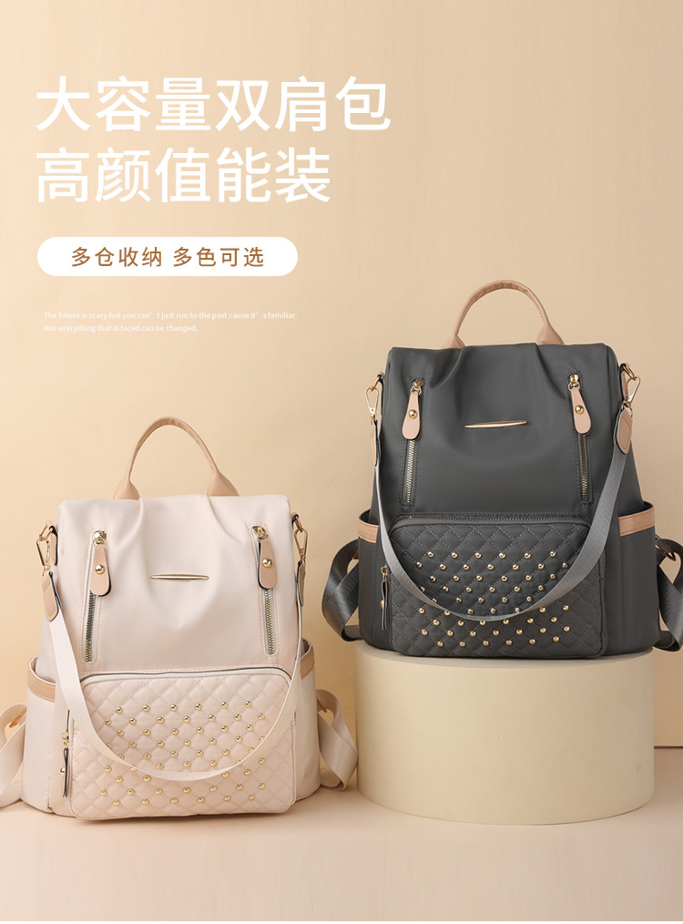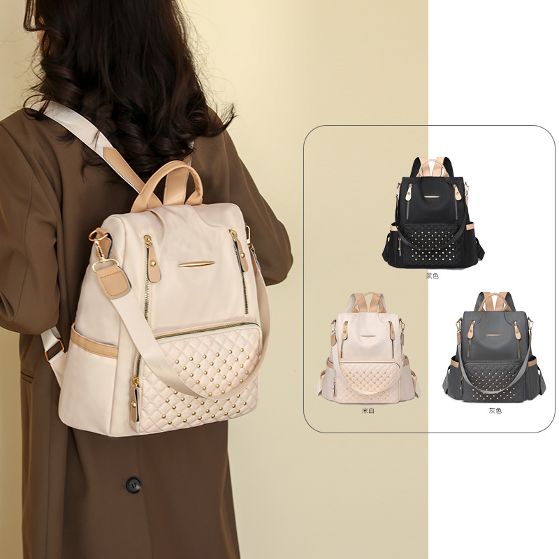 菱格绣线双肩包女2024新款女士背包旅行背包
