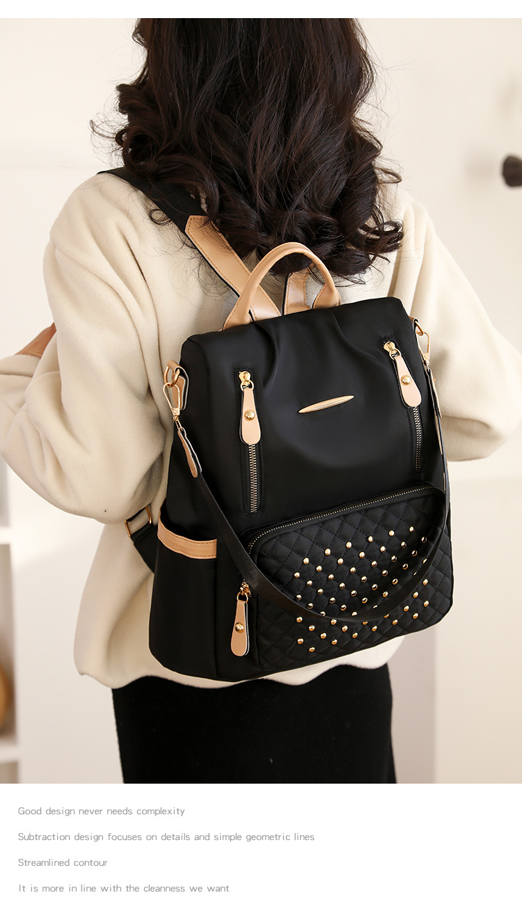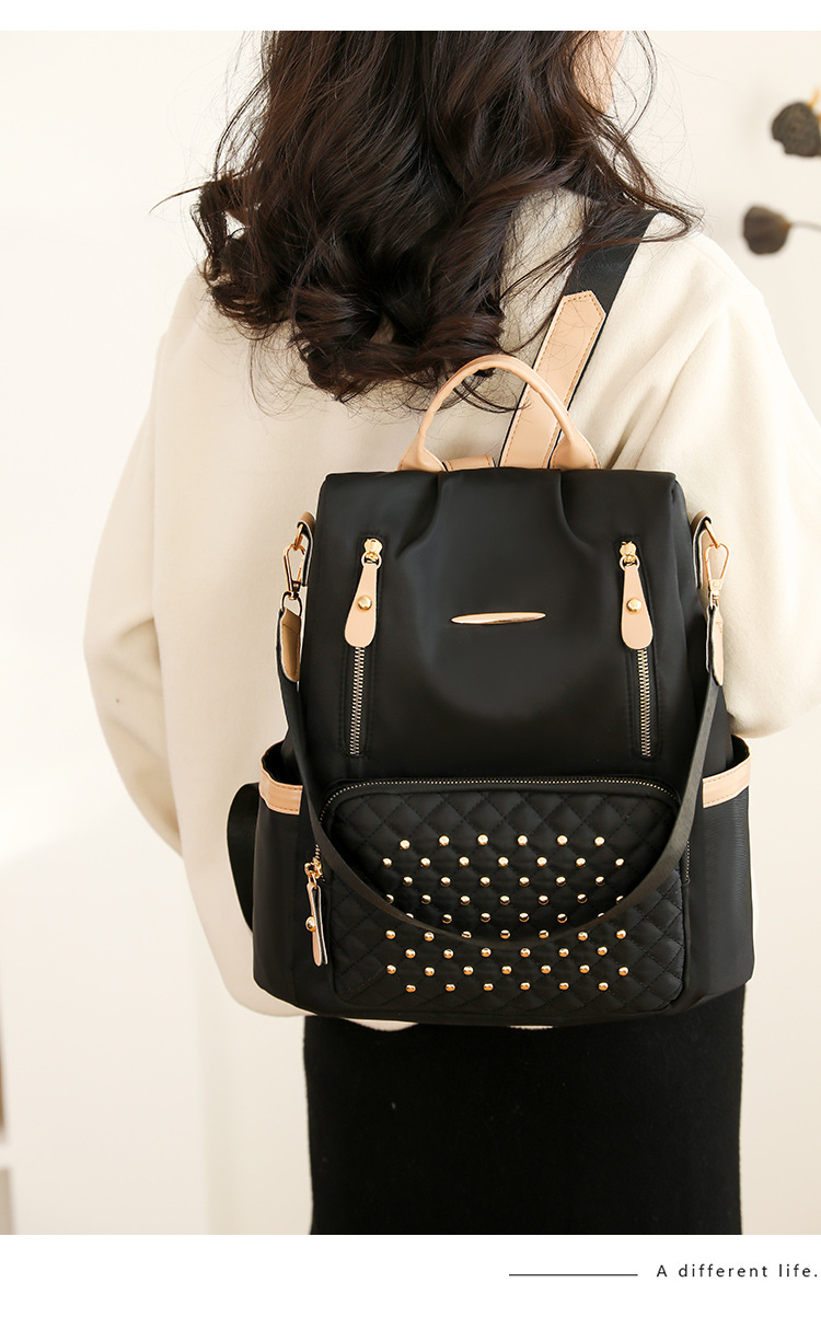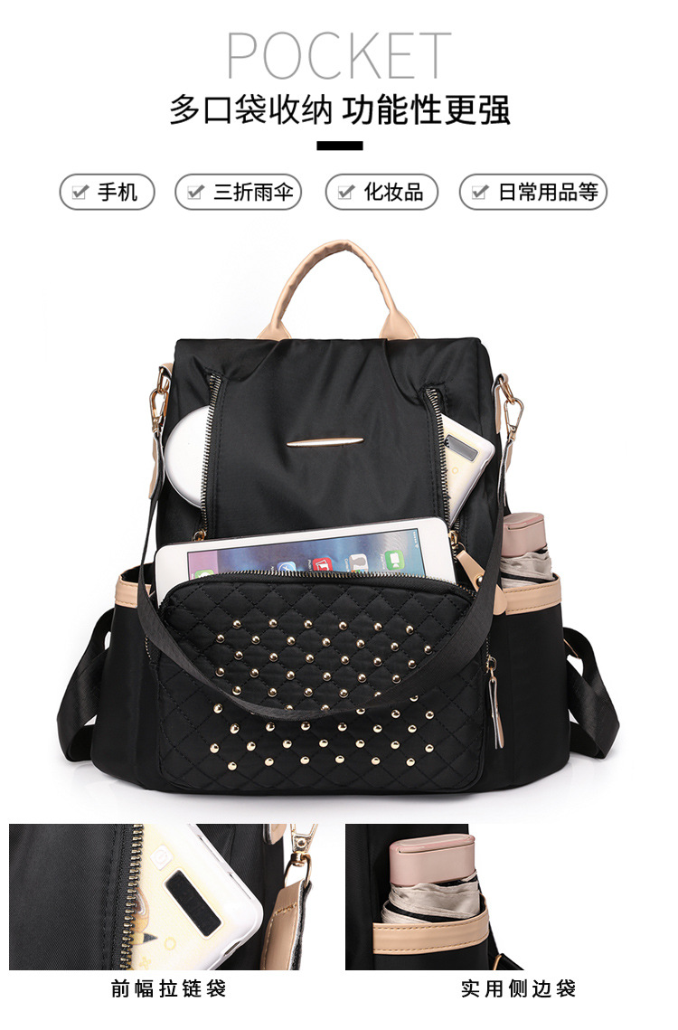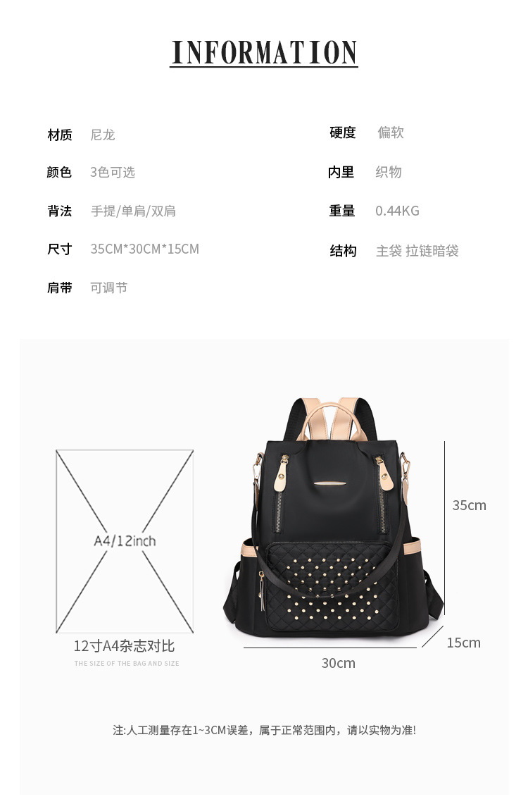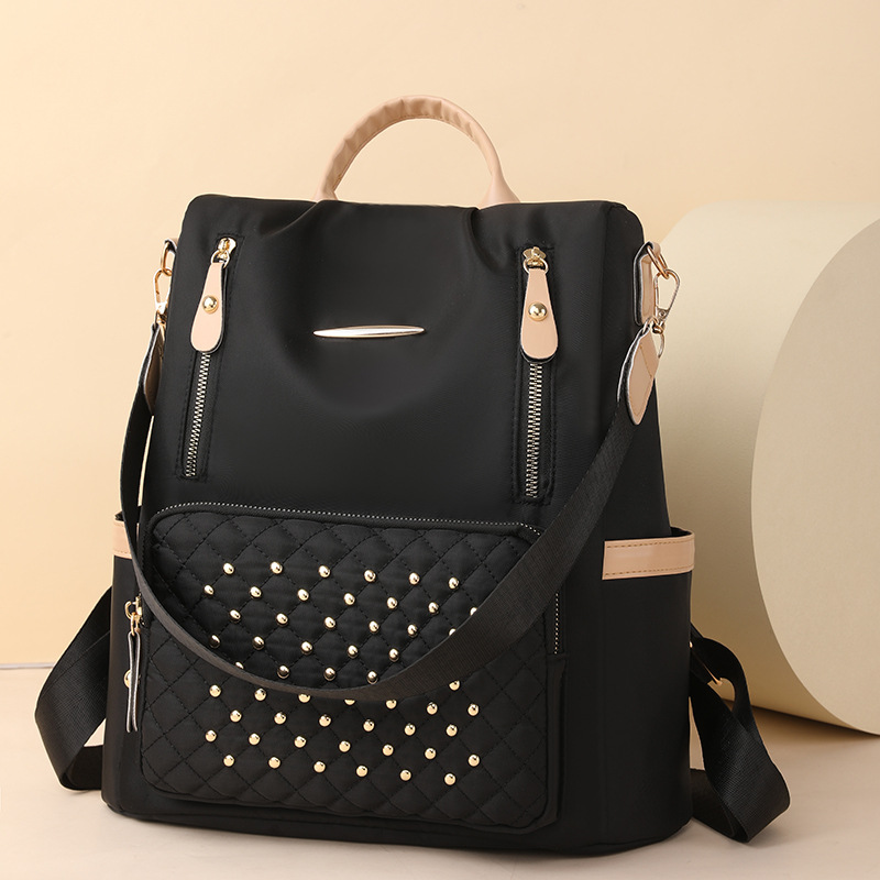 菱格绣线双肩包女2024新款女士背包旅行背包
