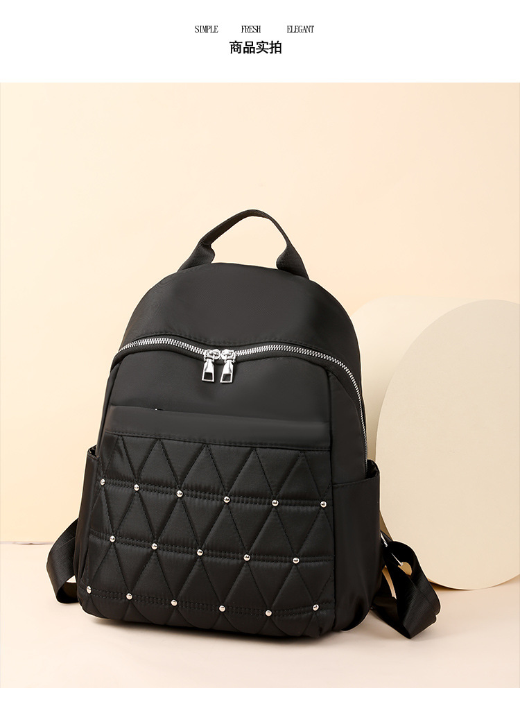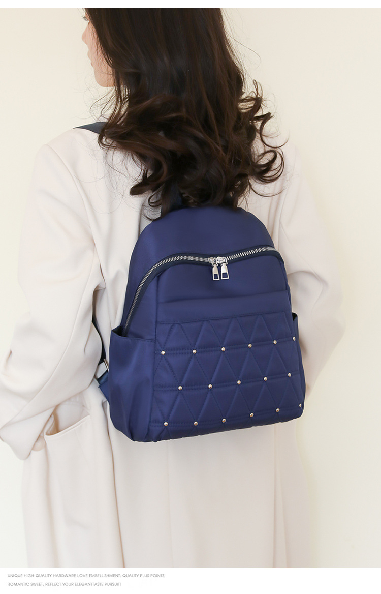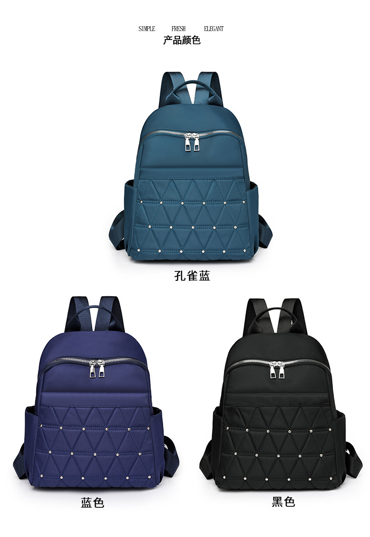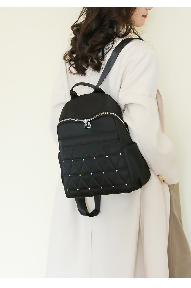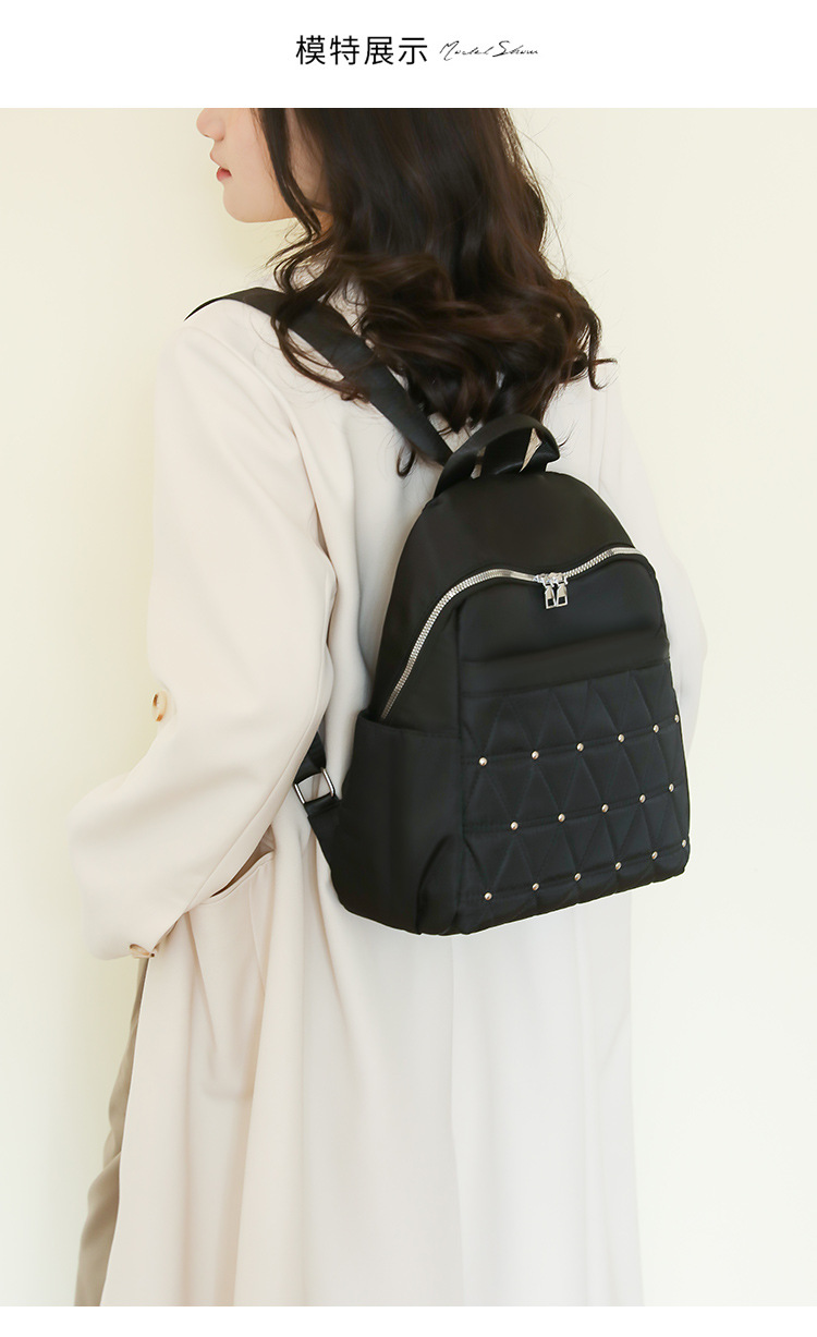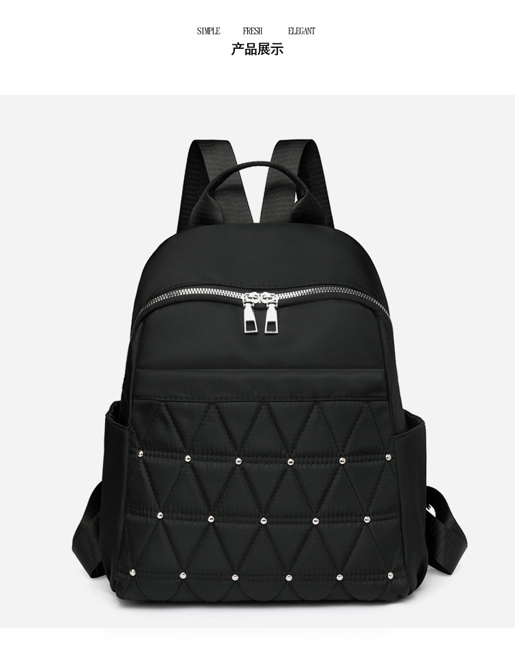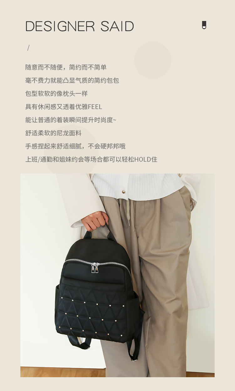双肩包菱格铆钉背包纯色都市通勤旅行包