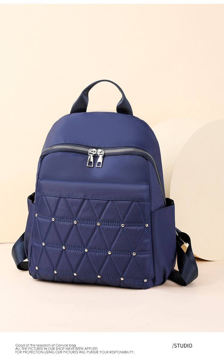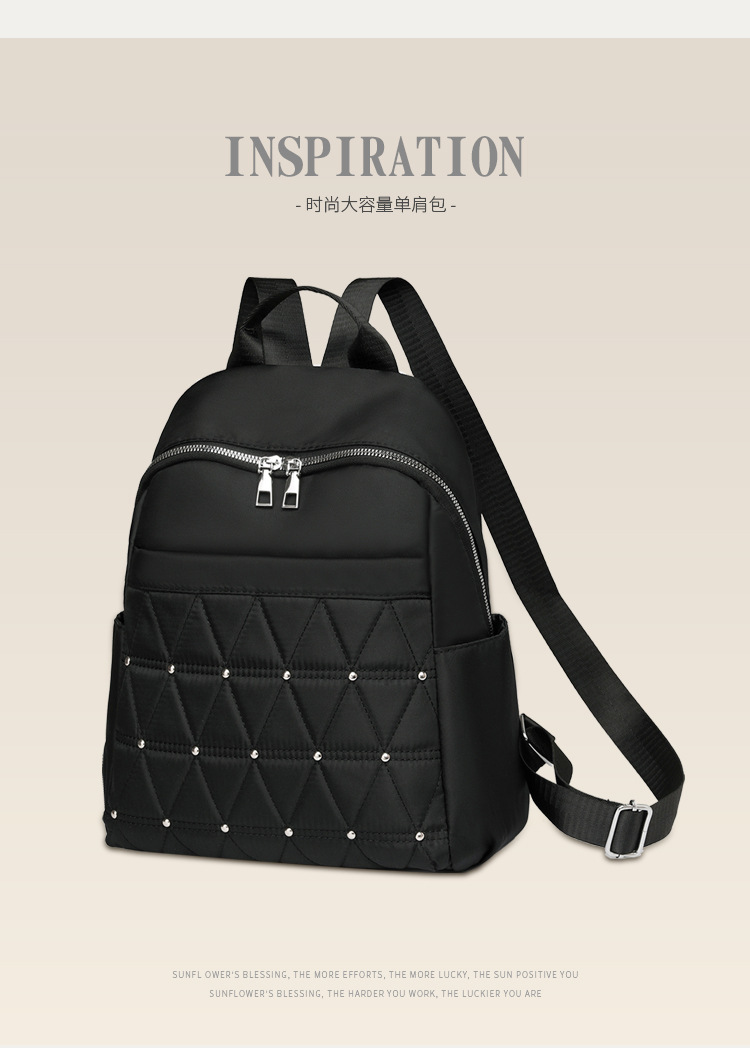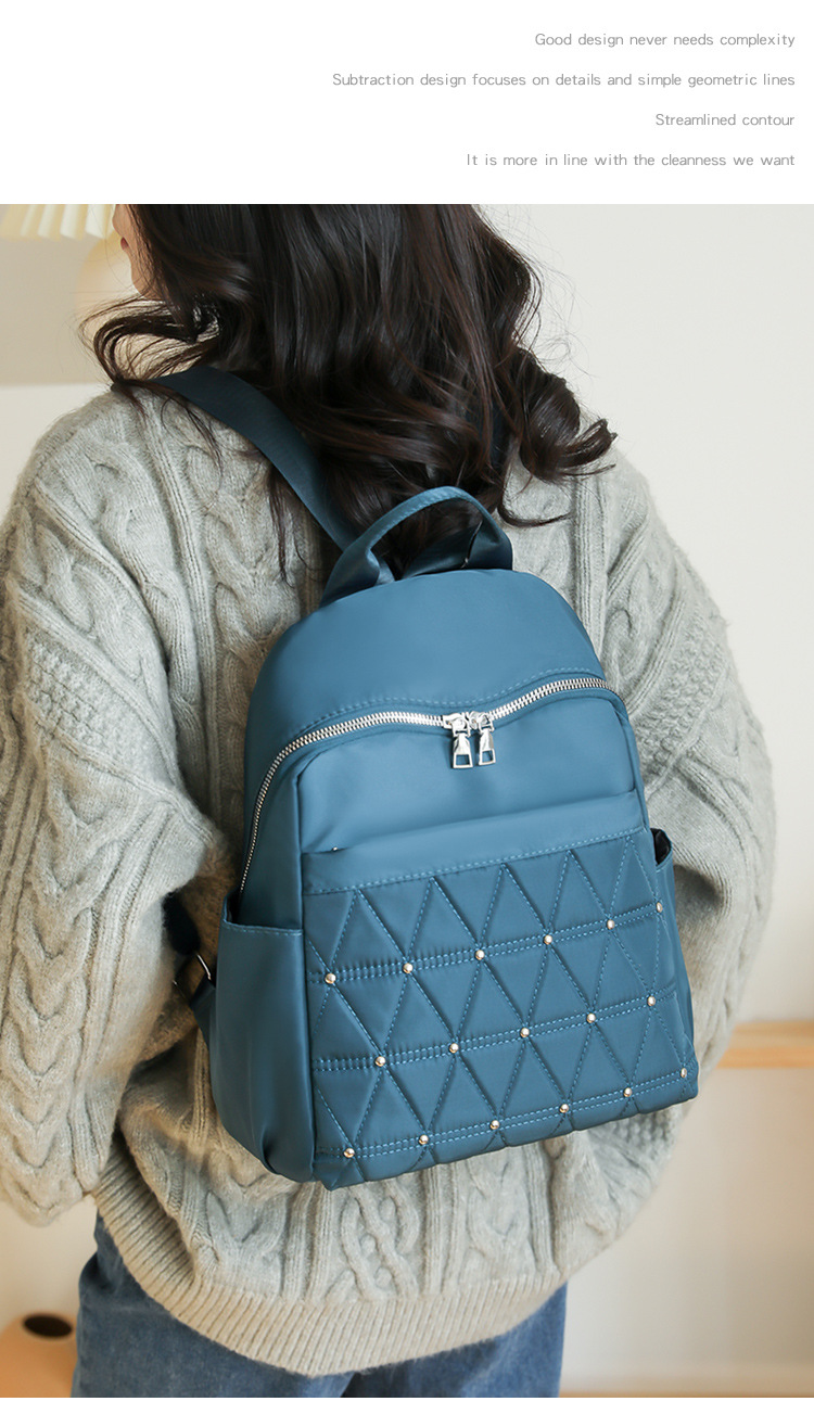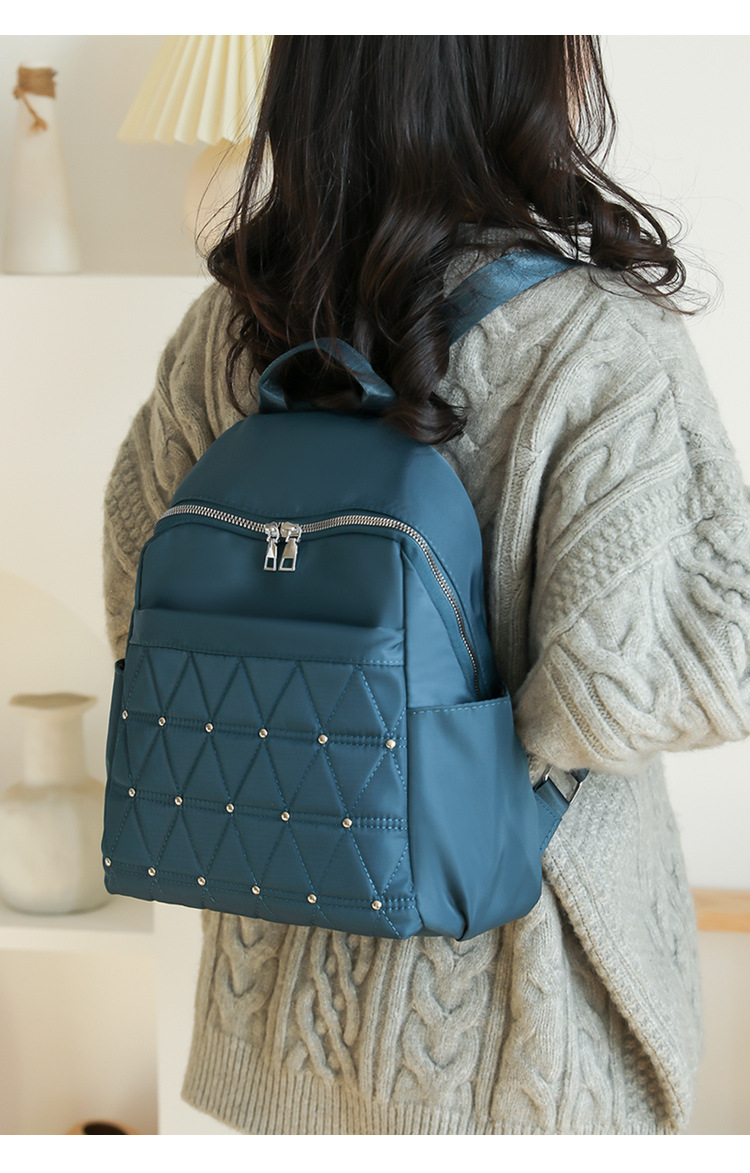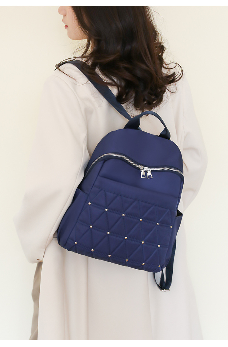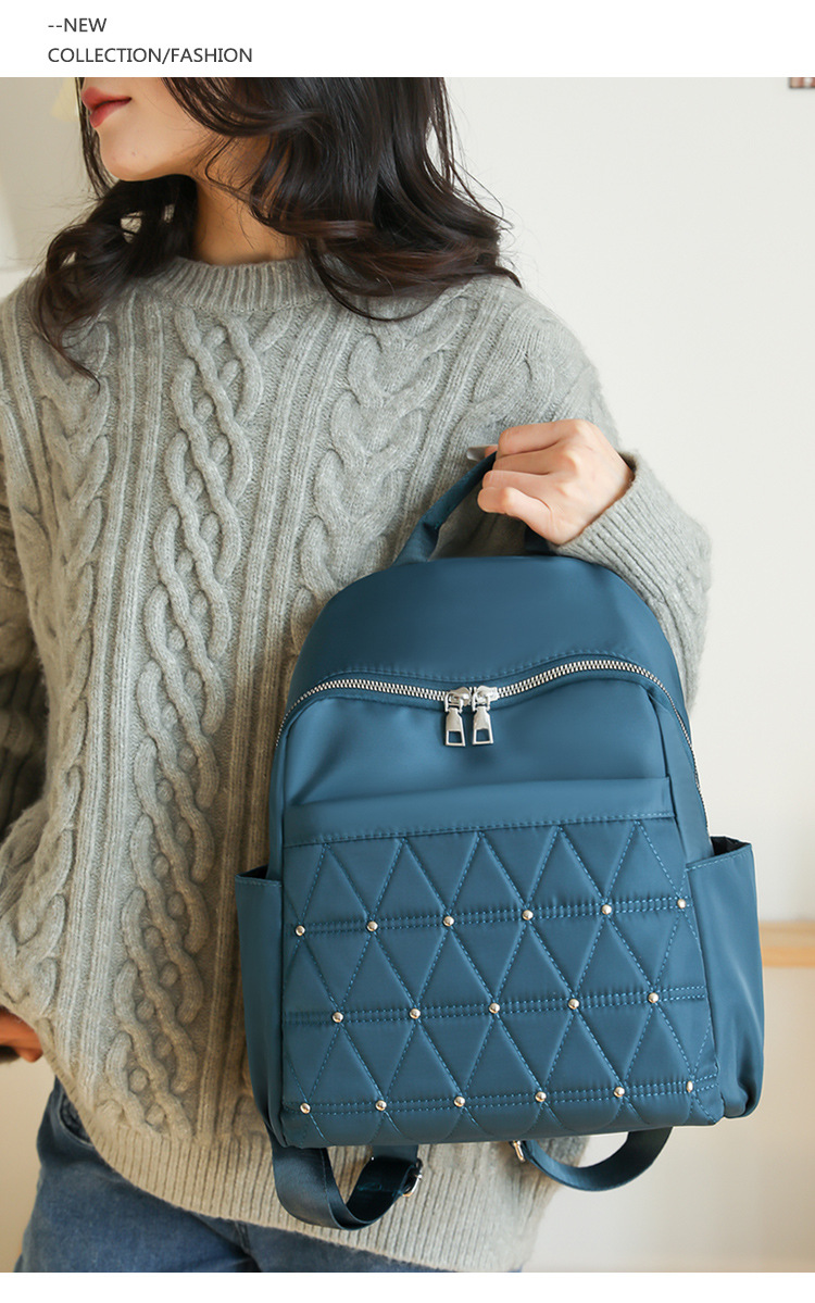 双肩包菱格铆钉背包纯色都市通勤旅行包