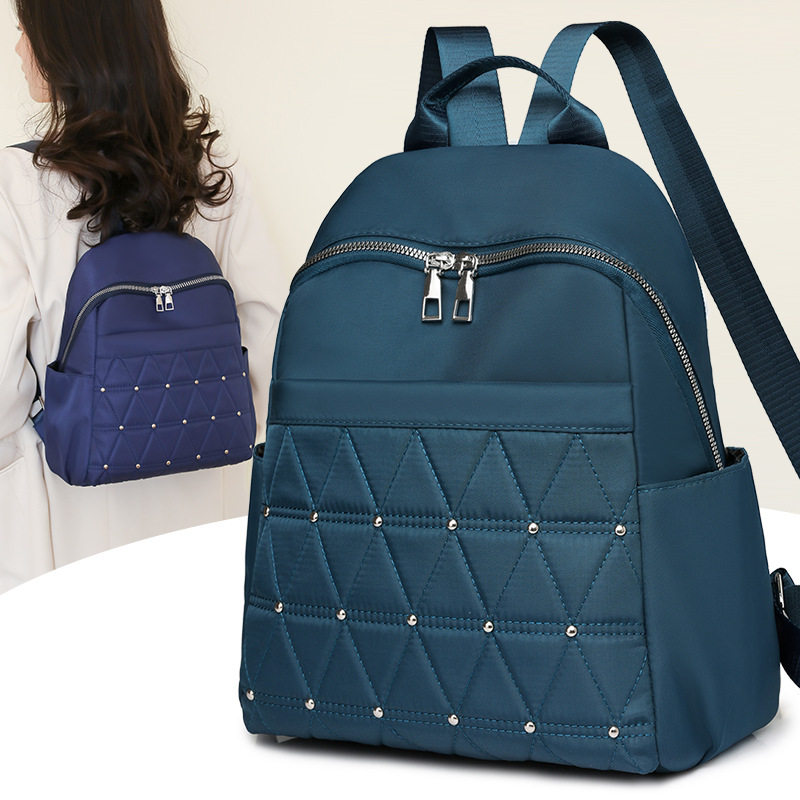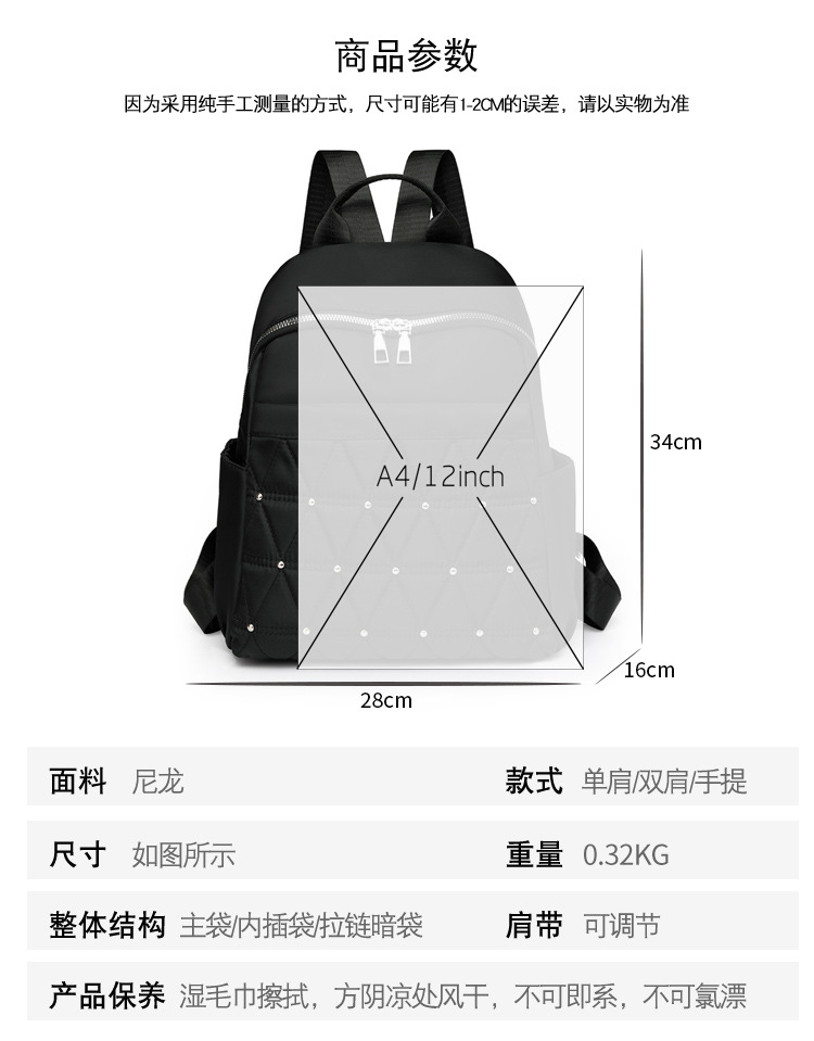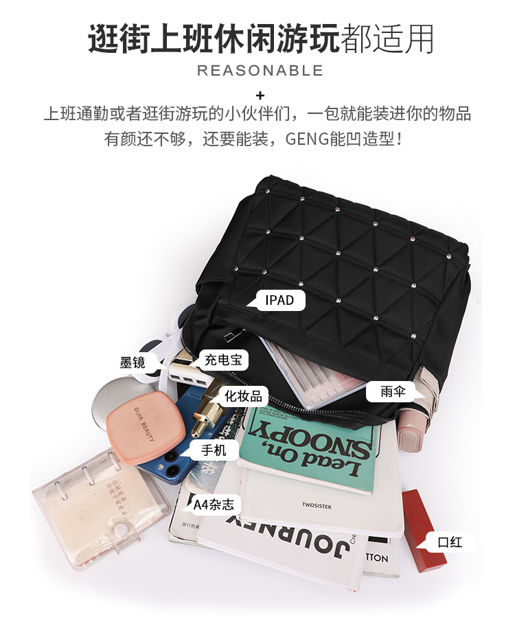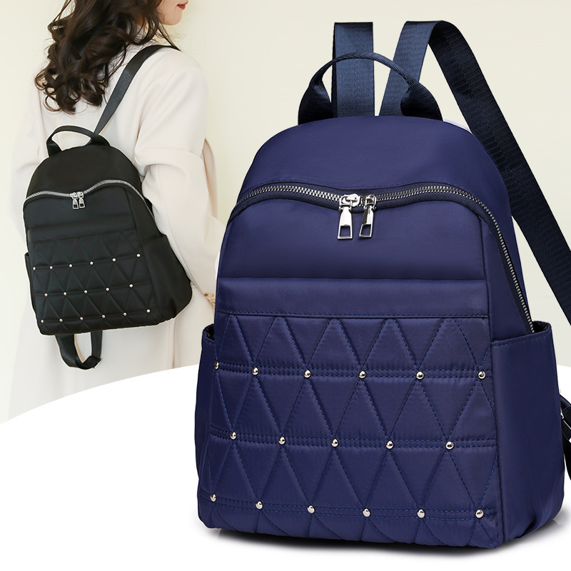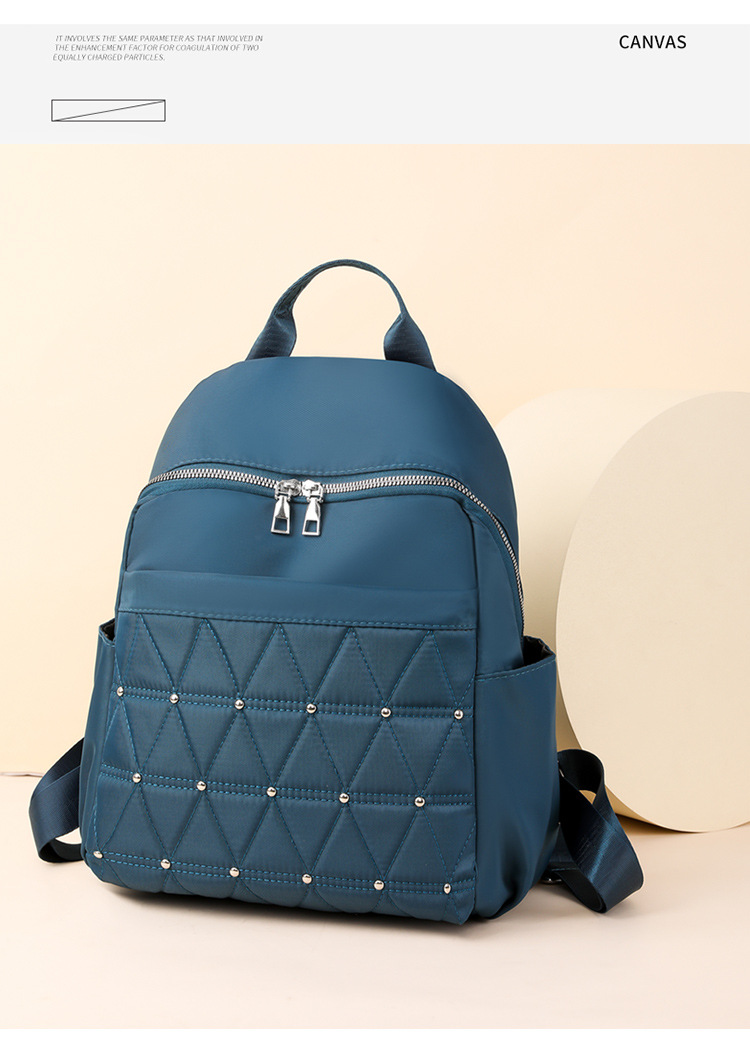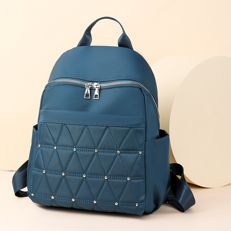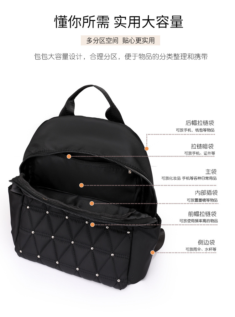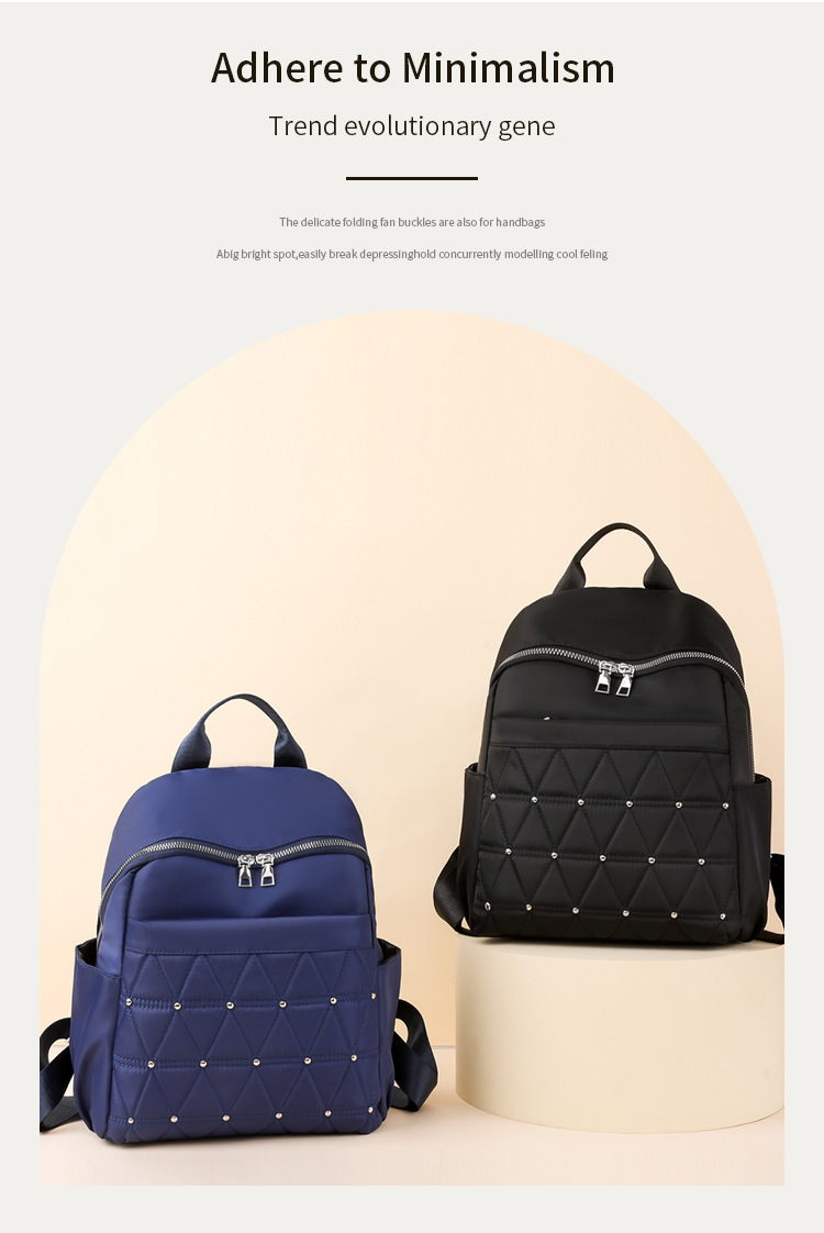 双肩包菱格铆钉背包纯色都市通勤旅行包