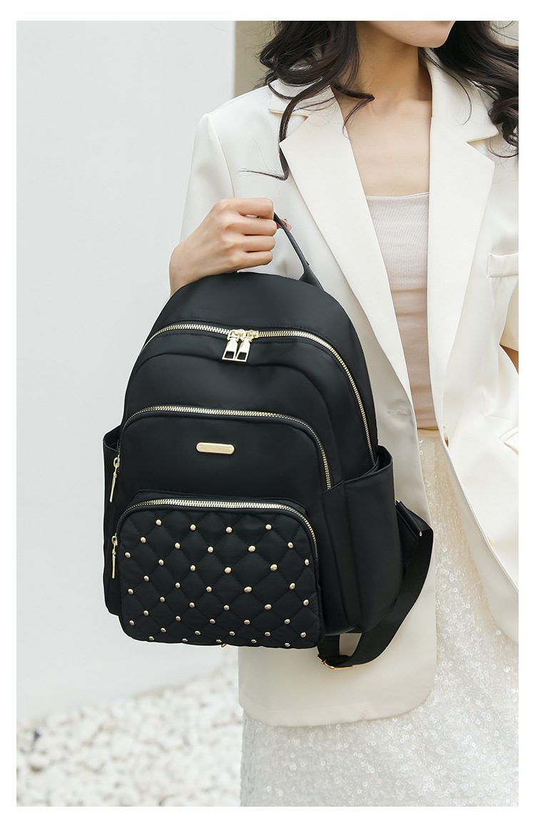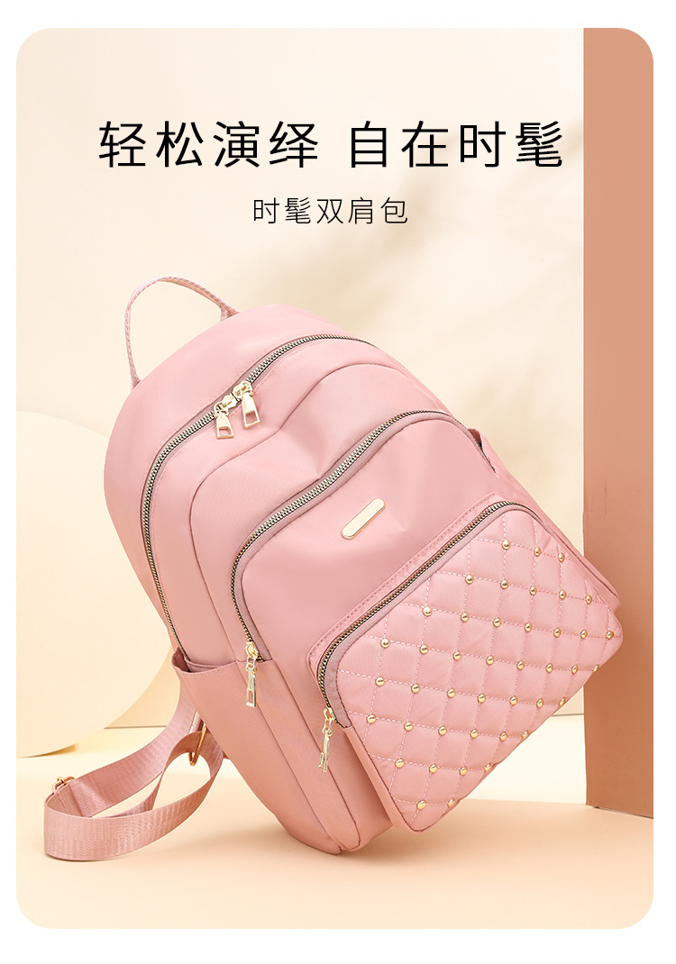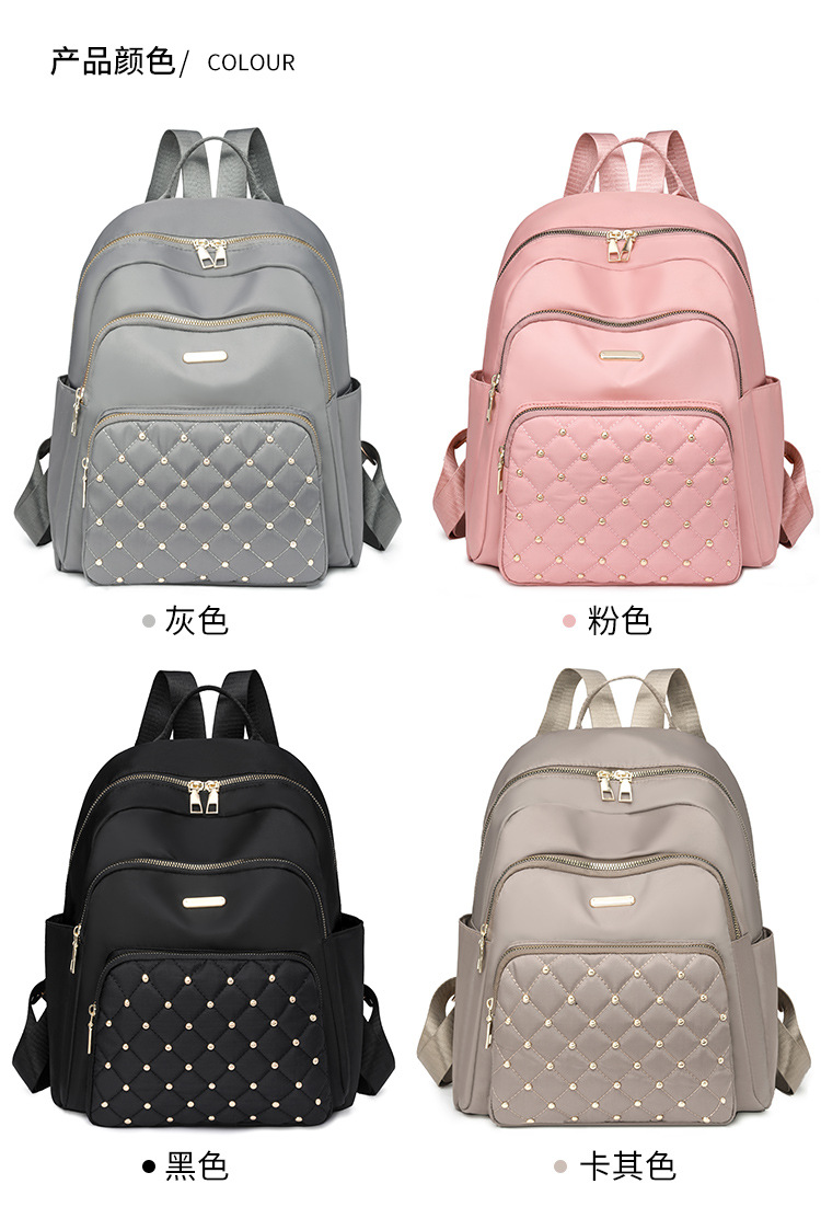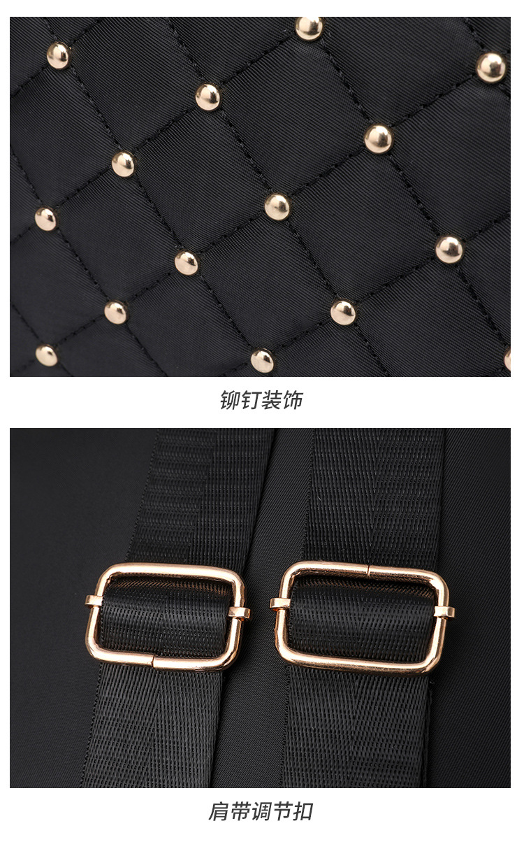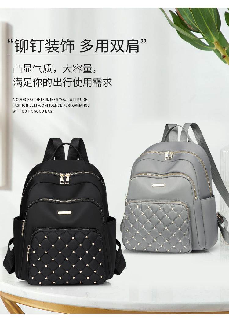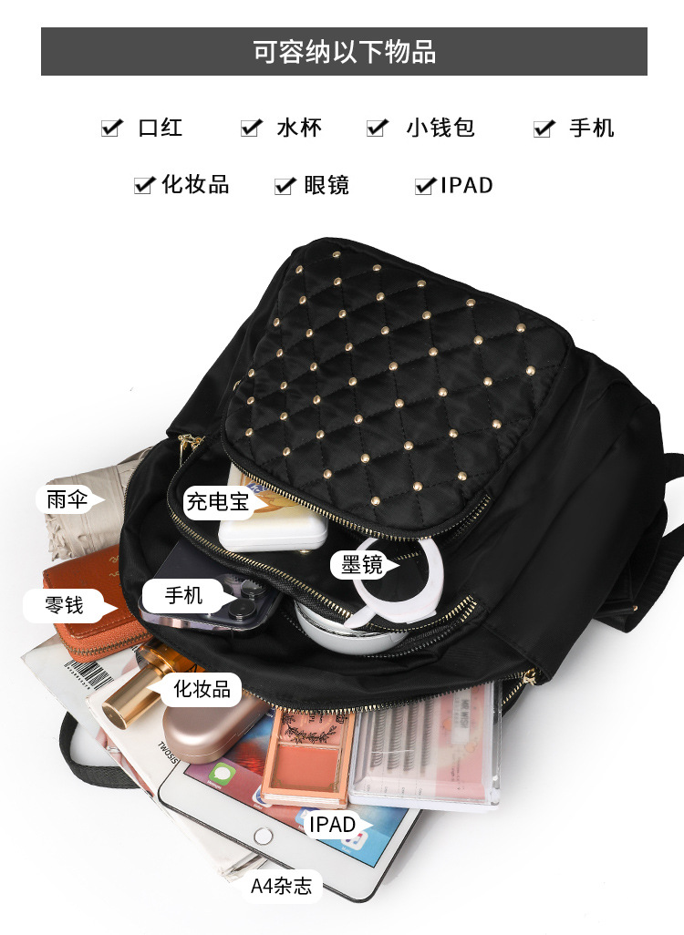 菱格绣线铆钉双肩包女新款时尚旅行背包
