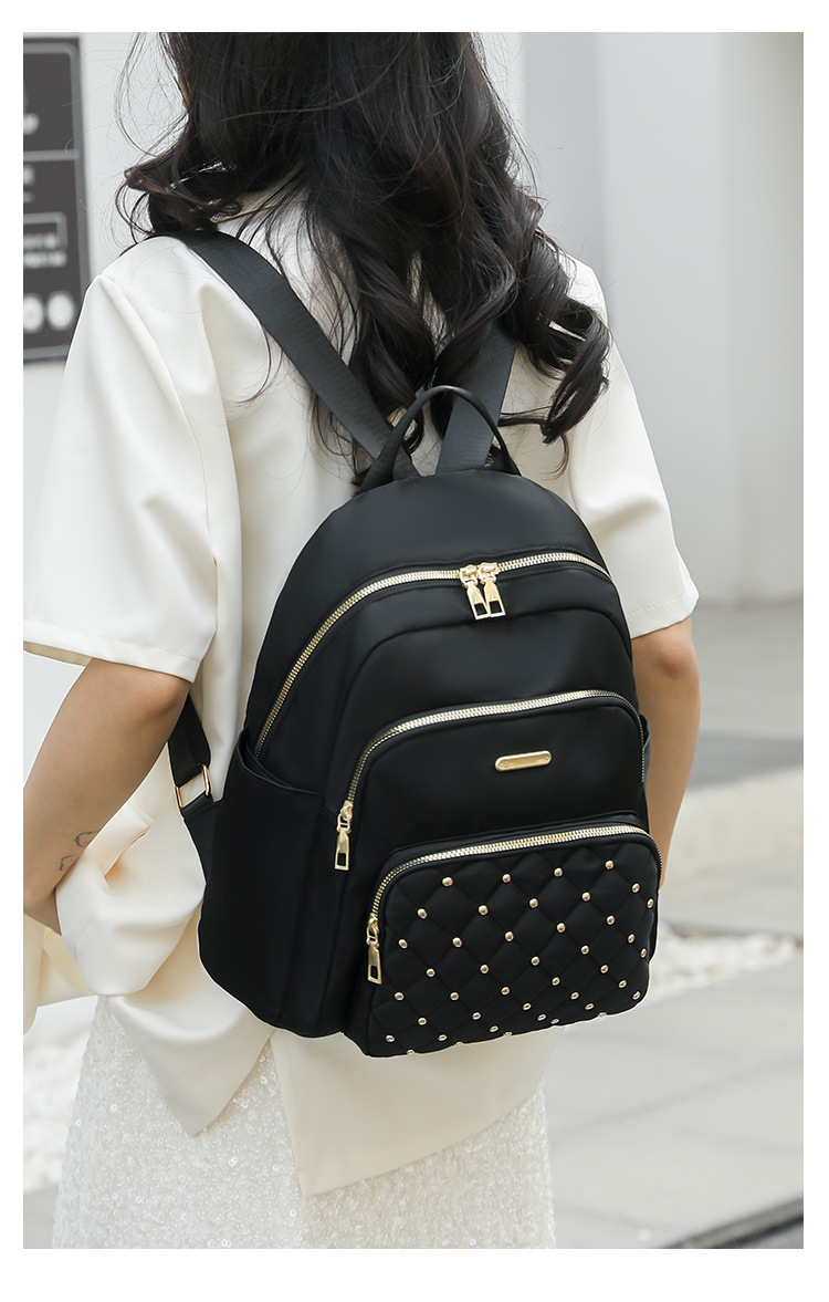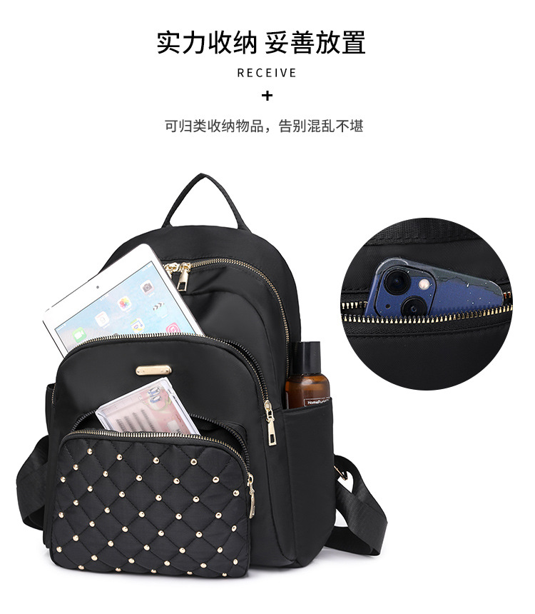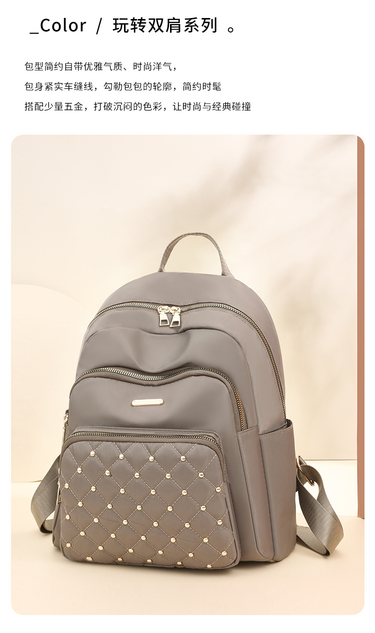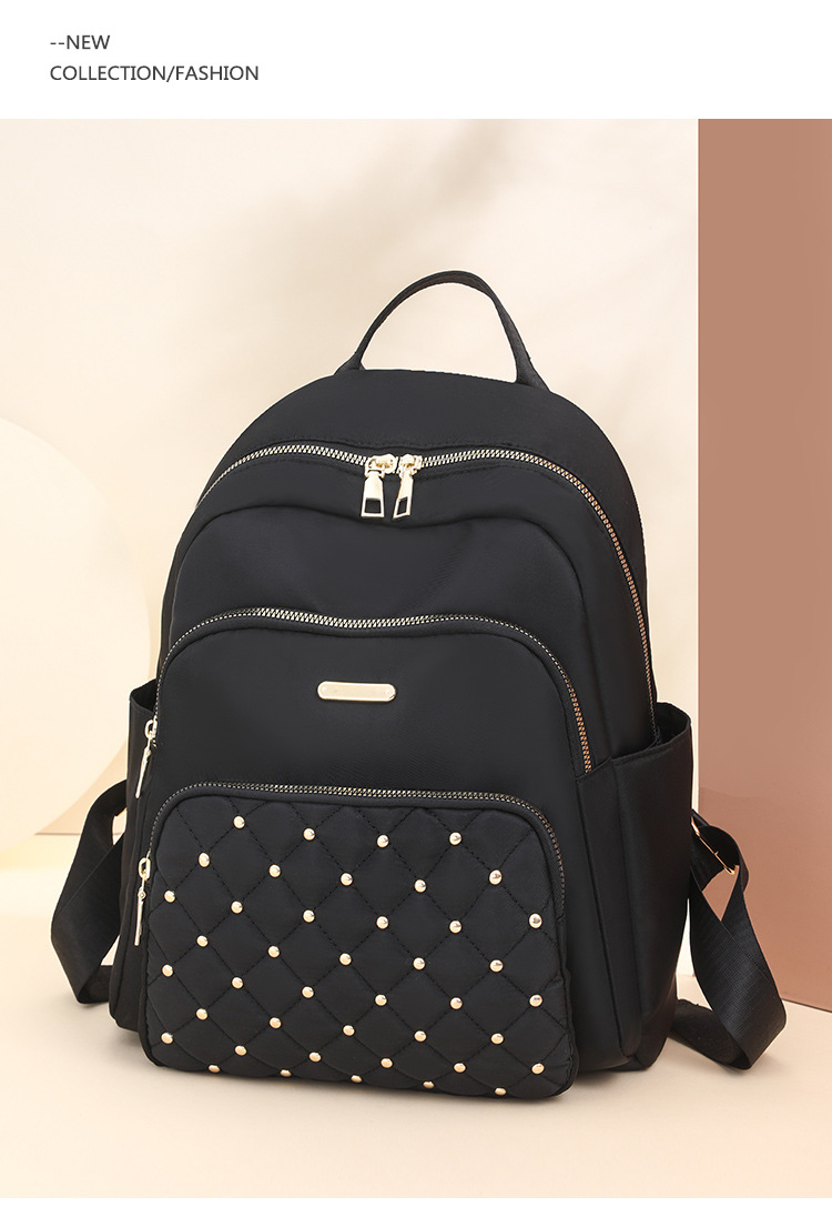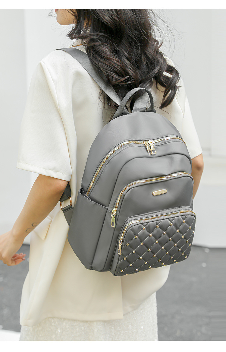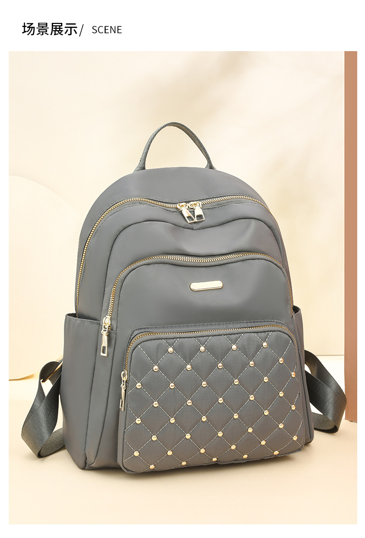 菱格绣线铆钉双肩包女新款时尚旅行背包