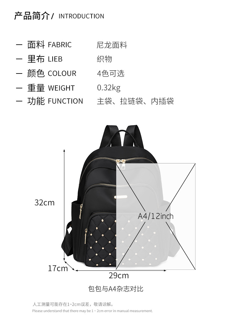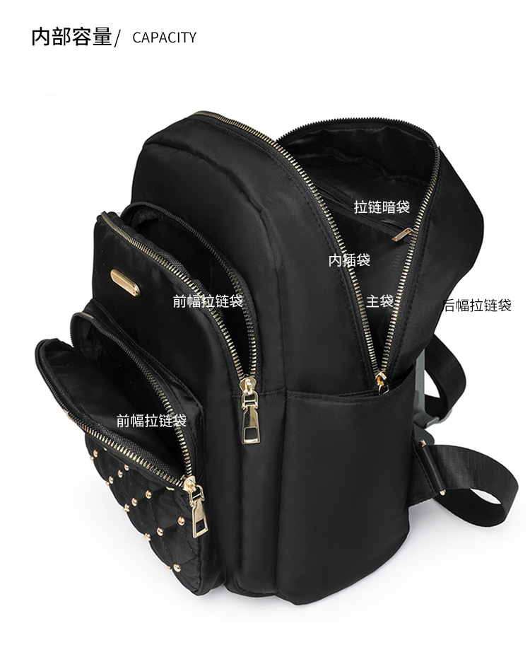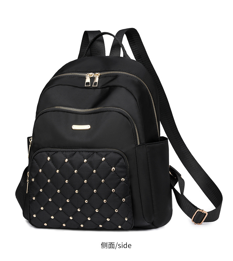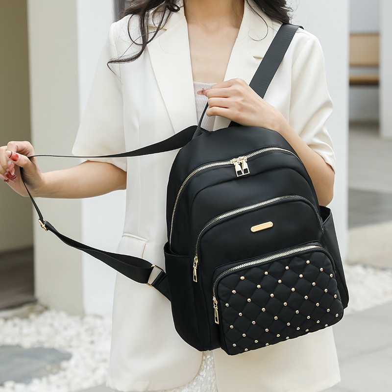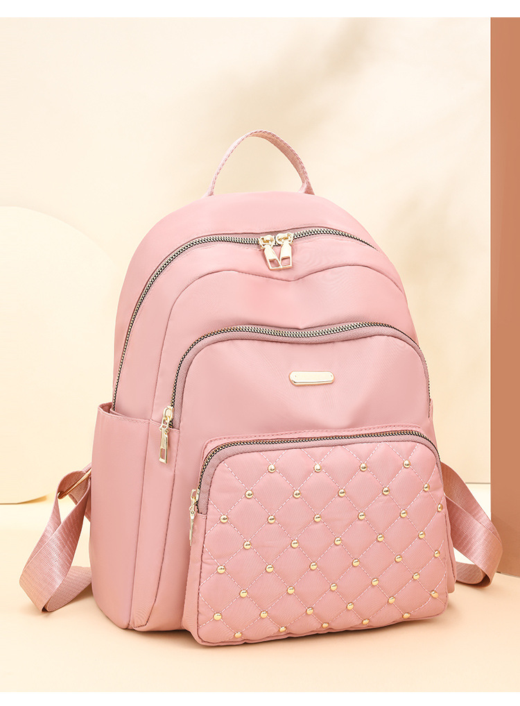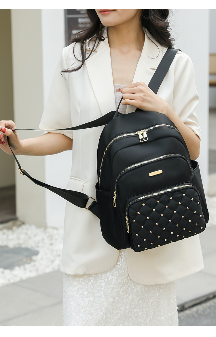 菱格绣线铆钉双肩包女新款时尚旅行背包