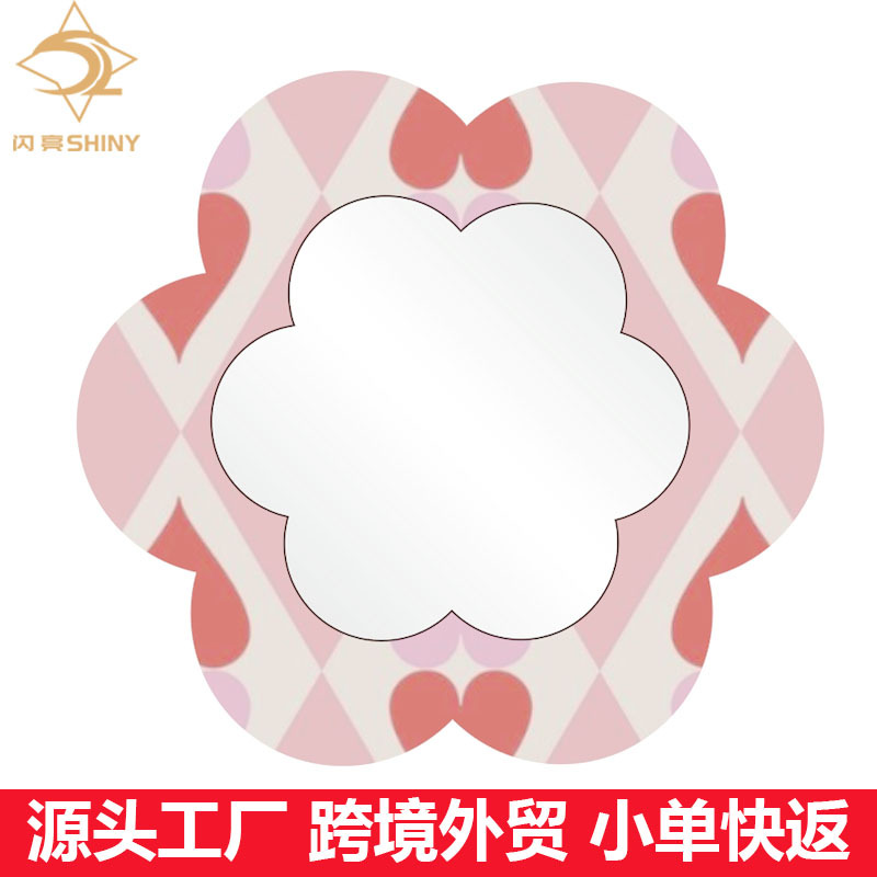 闪亮外贸新款戳戳绣毛绒镜子亚马逊异形便携式化妆镜源头厂家批发