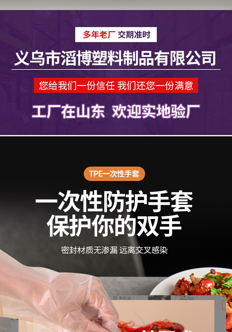 加工定制一次性手套食品级透明加厚TPE手套一次性tpe手套薄膜手套