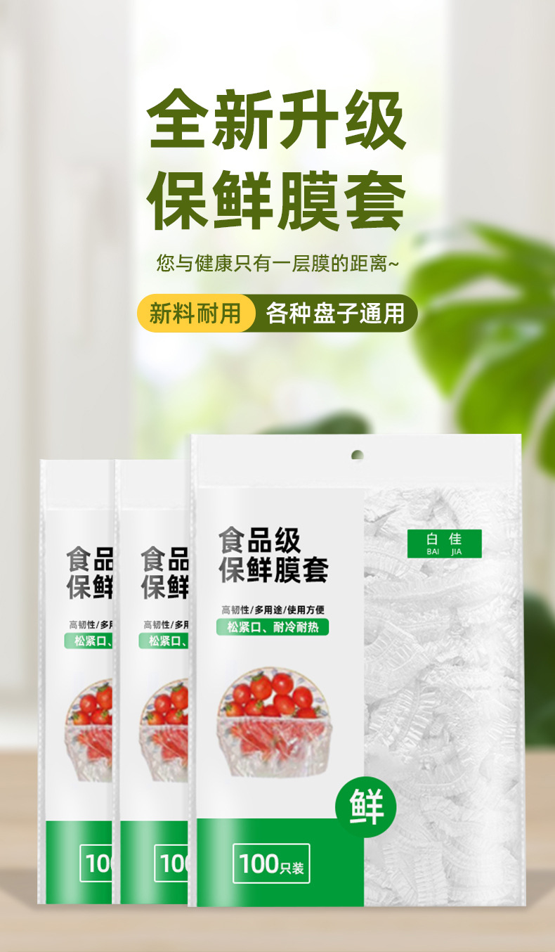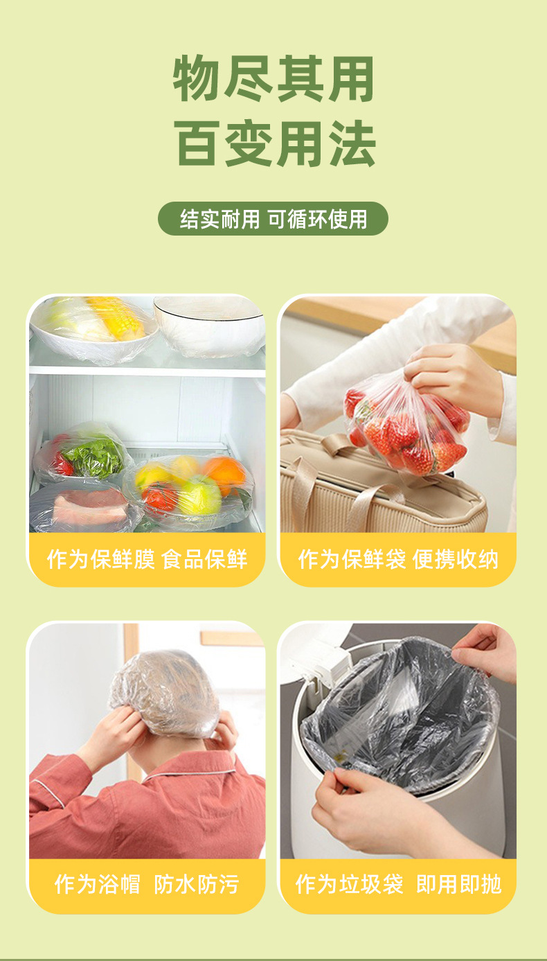 食品级加大号保鲜膜套一次性PE保鲜套剩菜冰箱松紧带家用保鲜碗罩