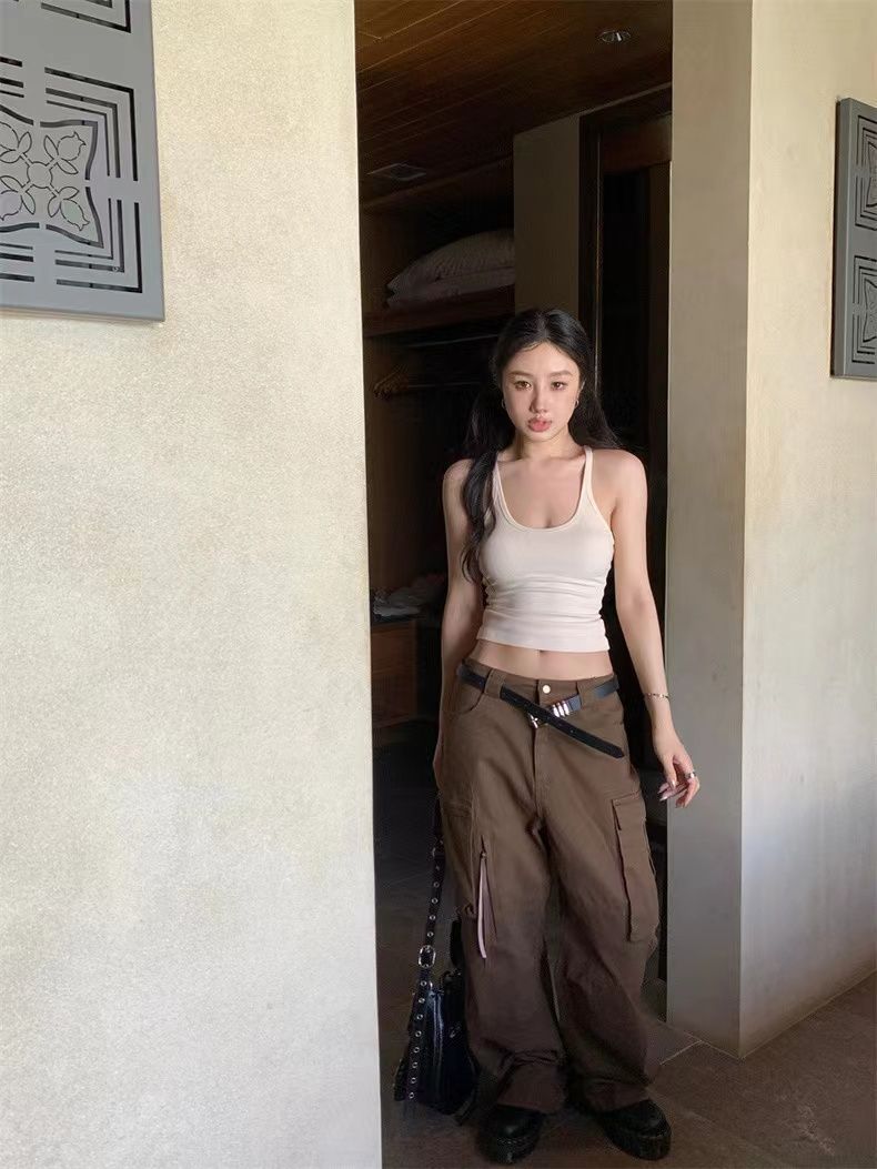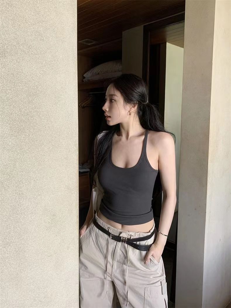辣妹低圆领白色纯欲背心吊带女内搭外搭修身弹力外穿短款上衣无袖