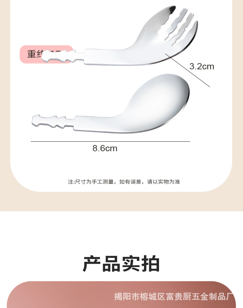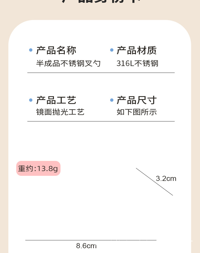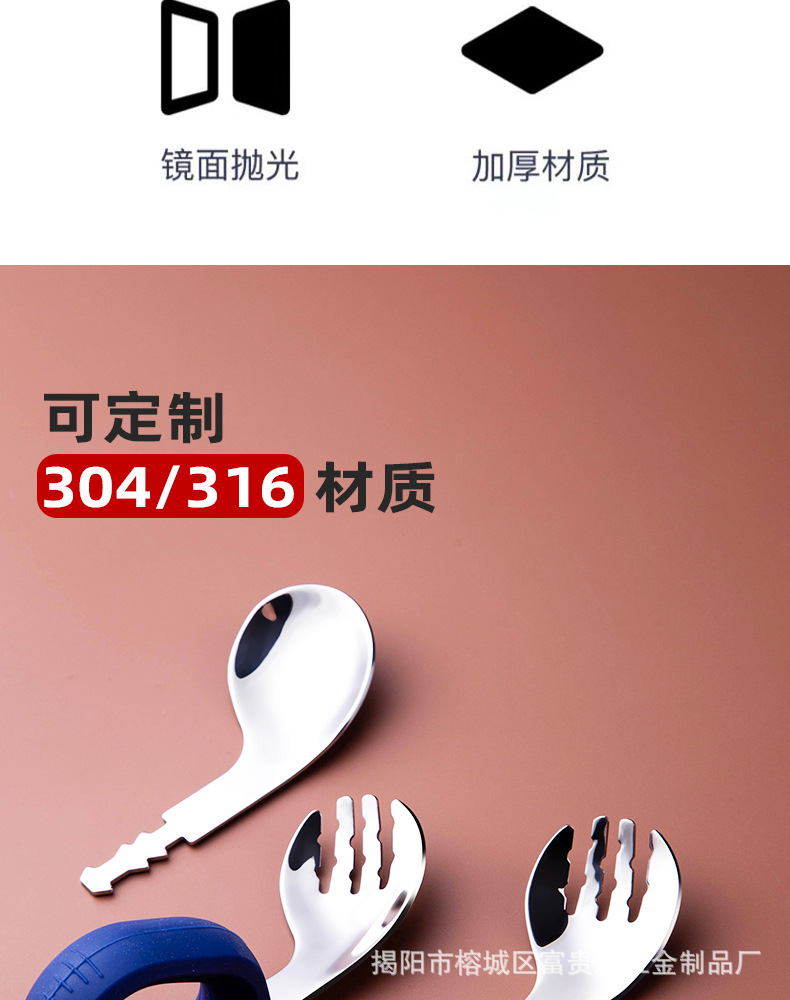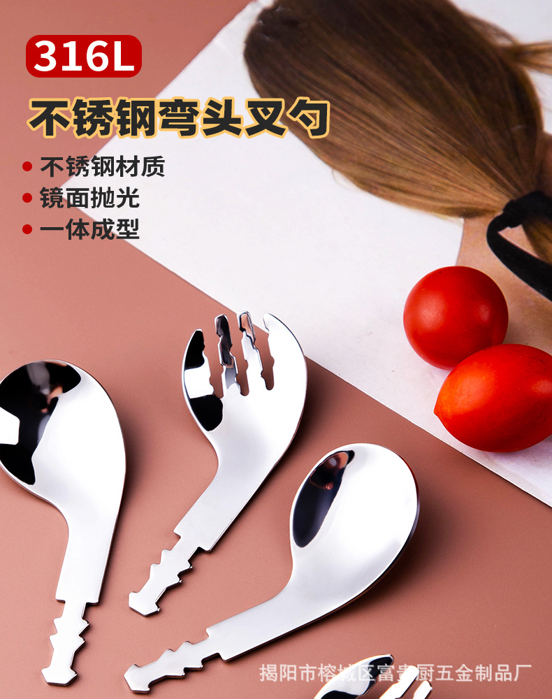 316儿童弯头叉勺配件加深加大304勺头宝宝喂养餐具叉勺五金头