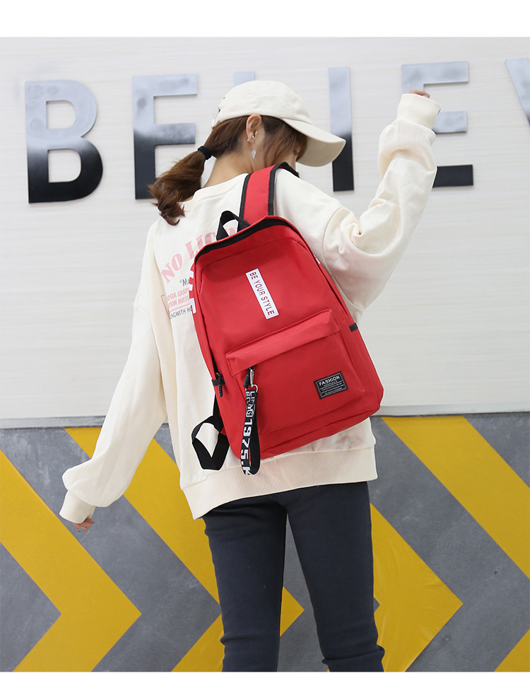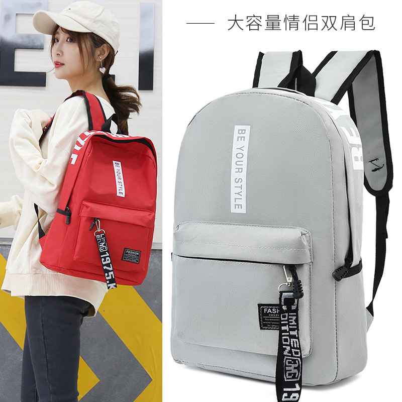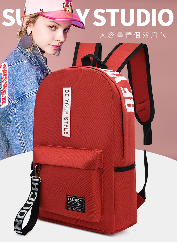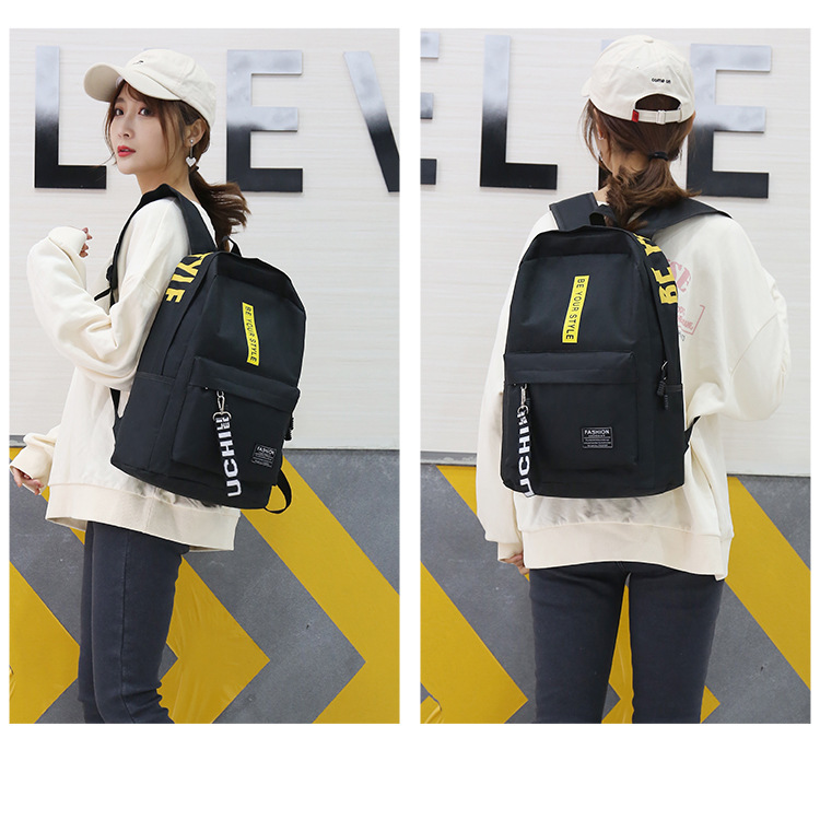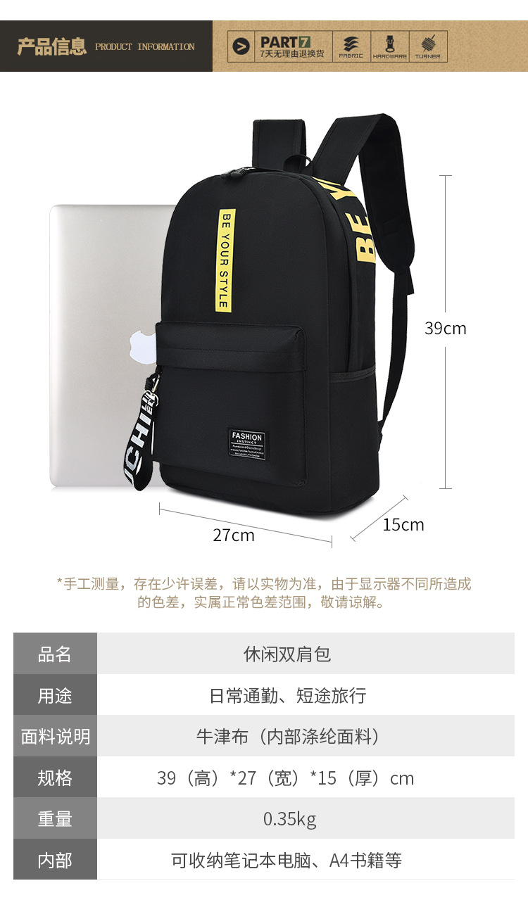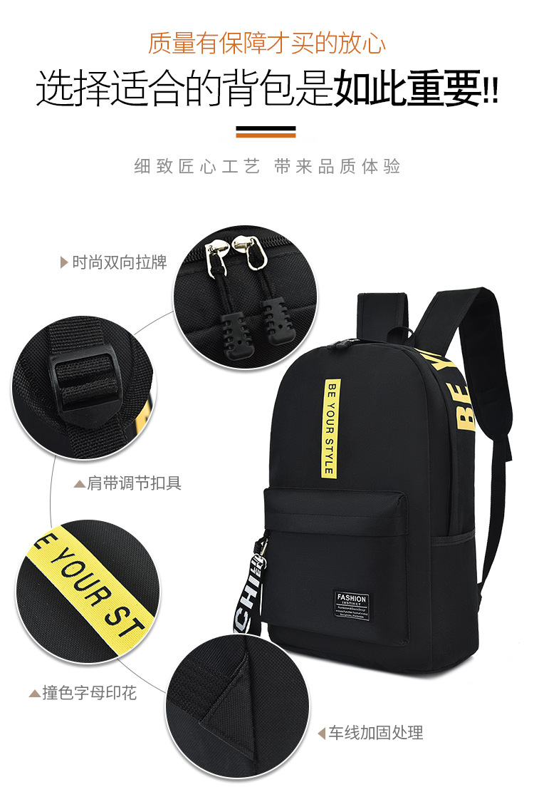 简约百搭中大学生书包2023新款韩版涤纶撞色大容量双肩包男女通用