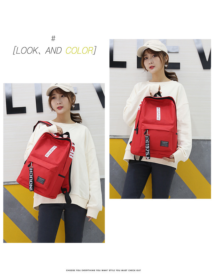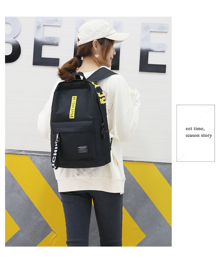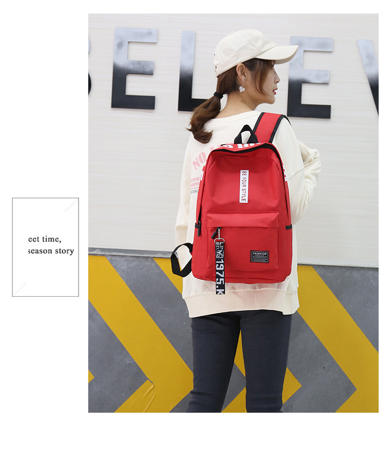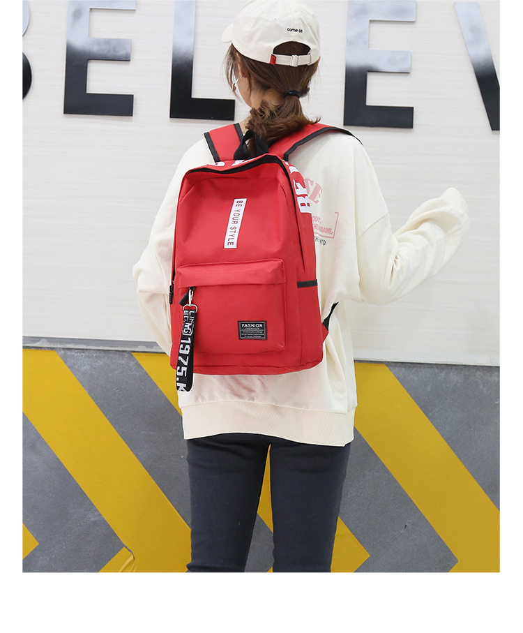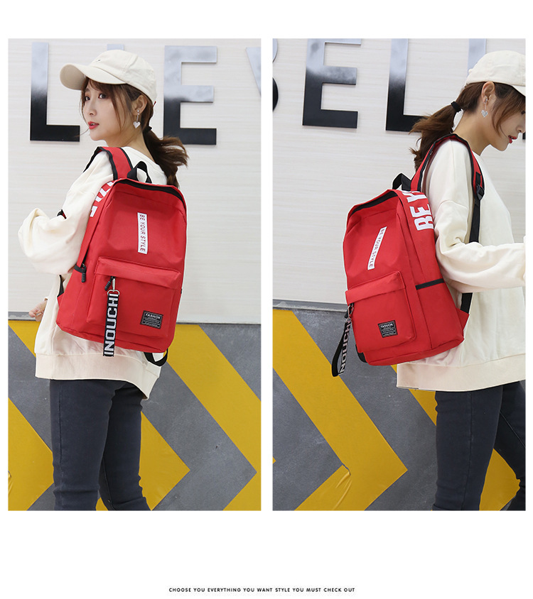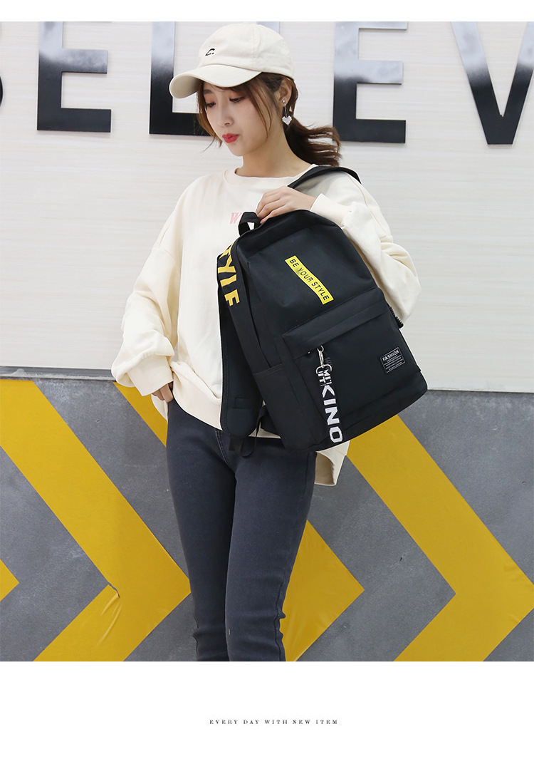 简约百搭中大学生书包2023新款韩版涤纶撞色大容量双肩包男女通用