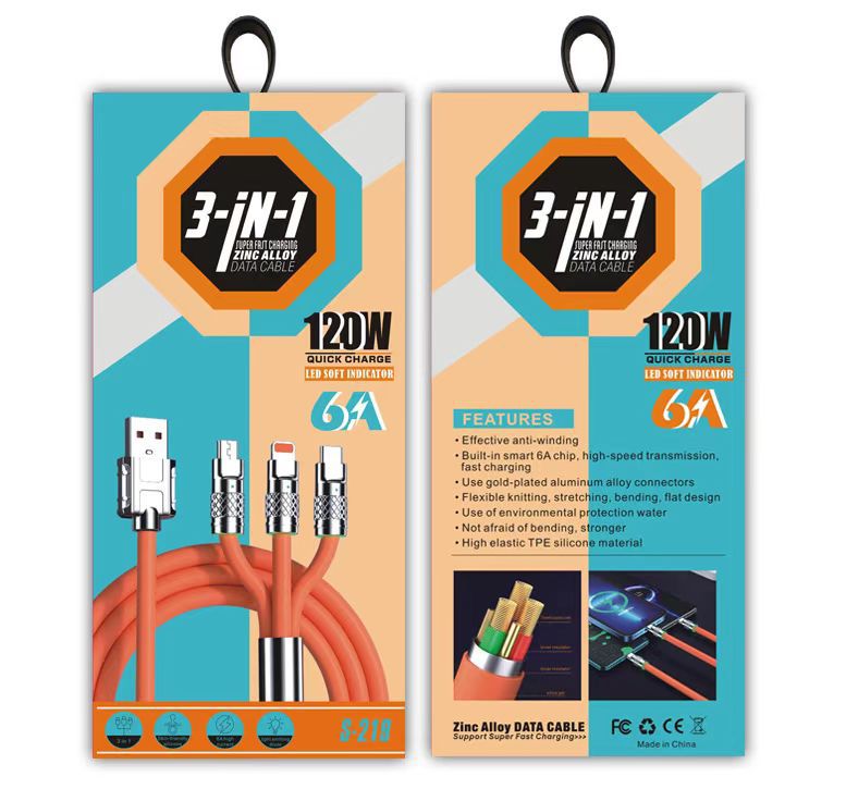 现货机客数据线三合一充电线一拖三120W超级快充极客线适用TYPE-C