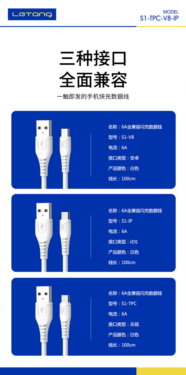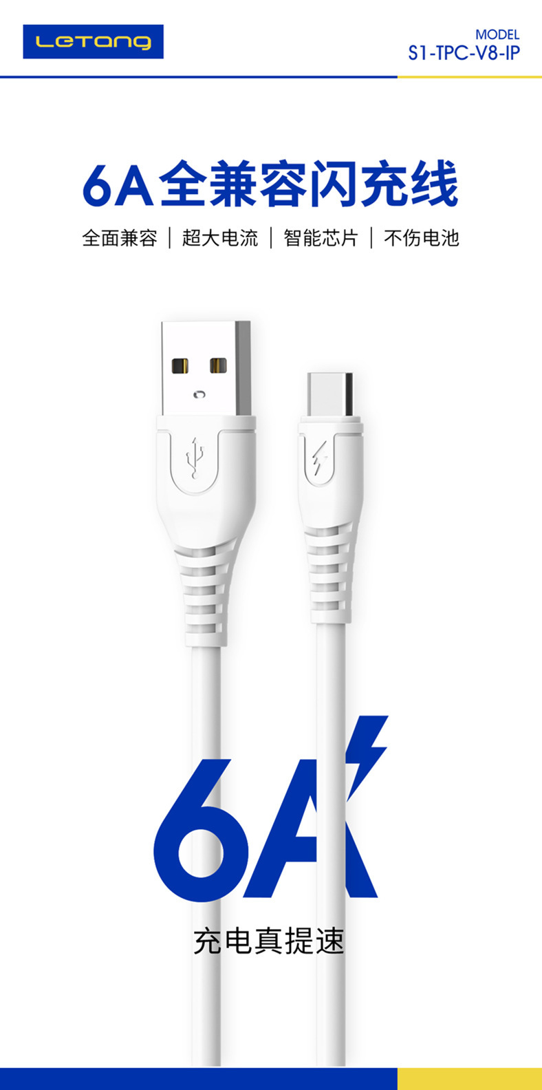 适用苹果OPPO安卓Type-C华为VIVO6A超级快充手机数据线充电线批发
