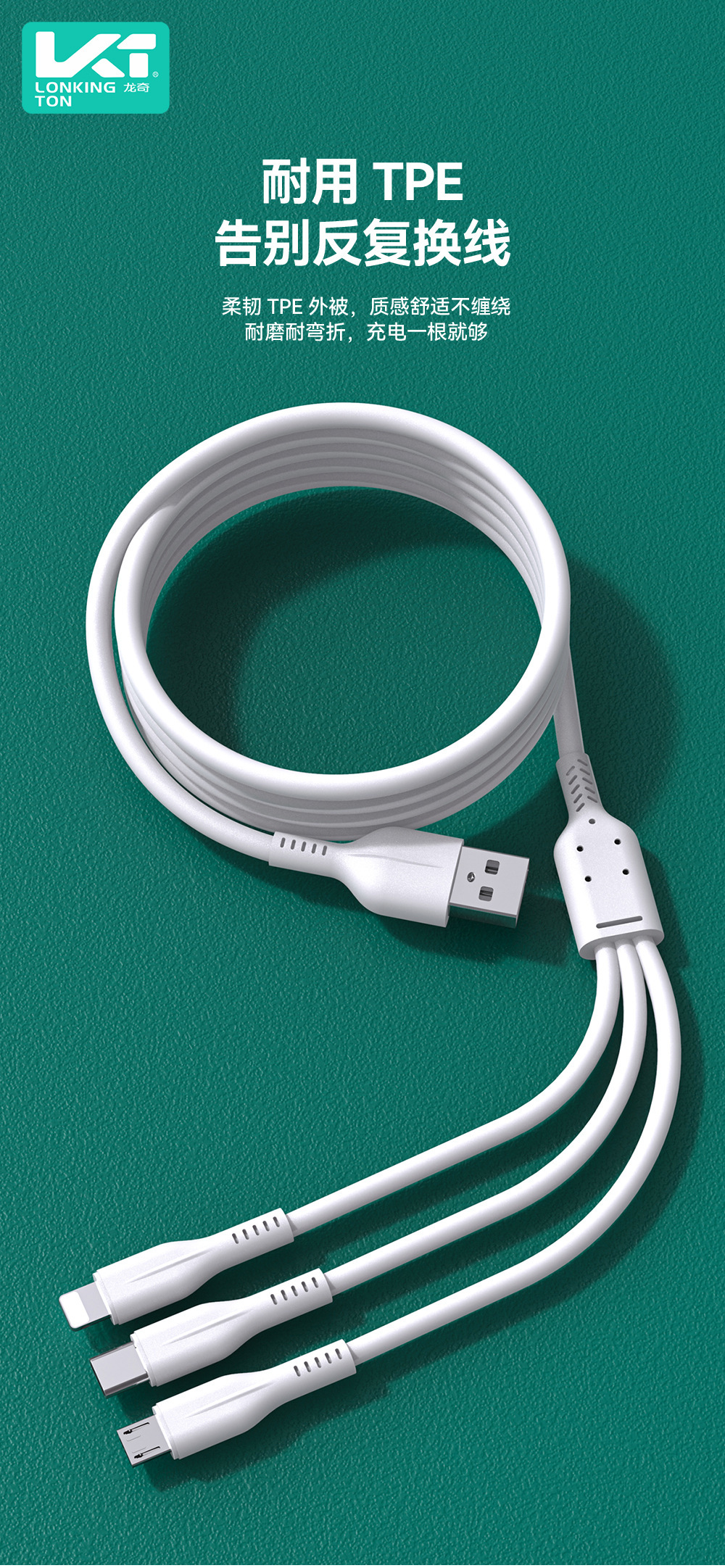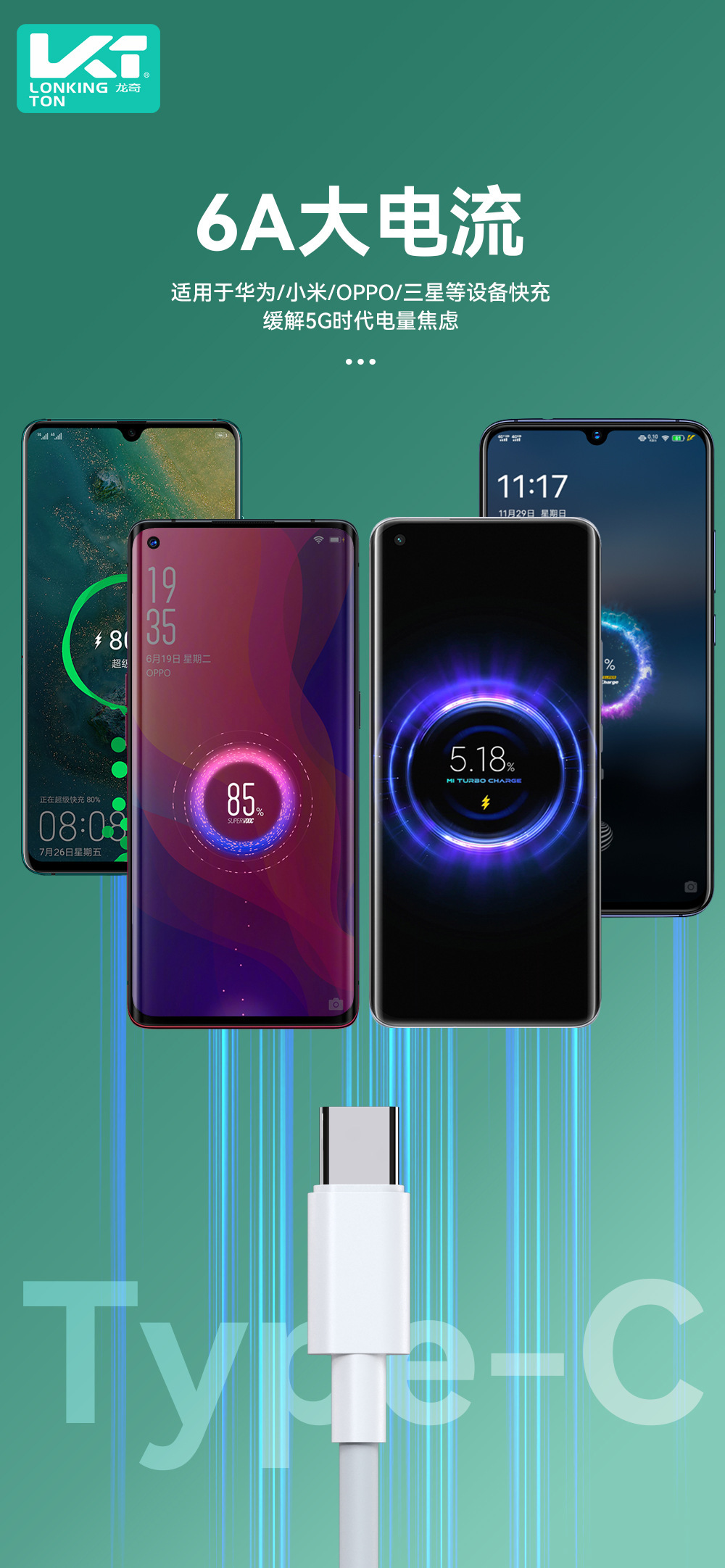 龙奇手机数据线快充usb适用安卓苹果vivo华为typec充电线液态好货
