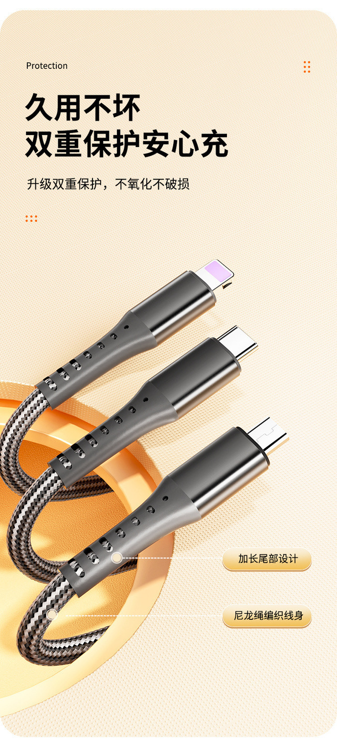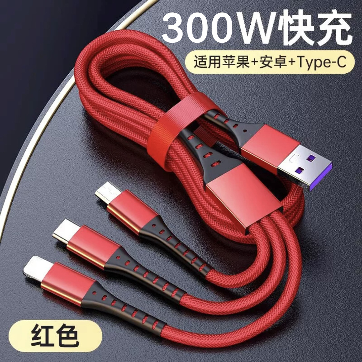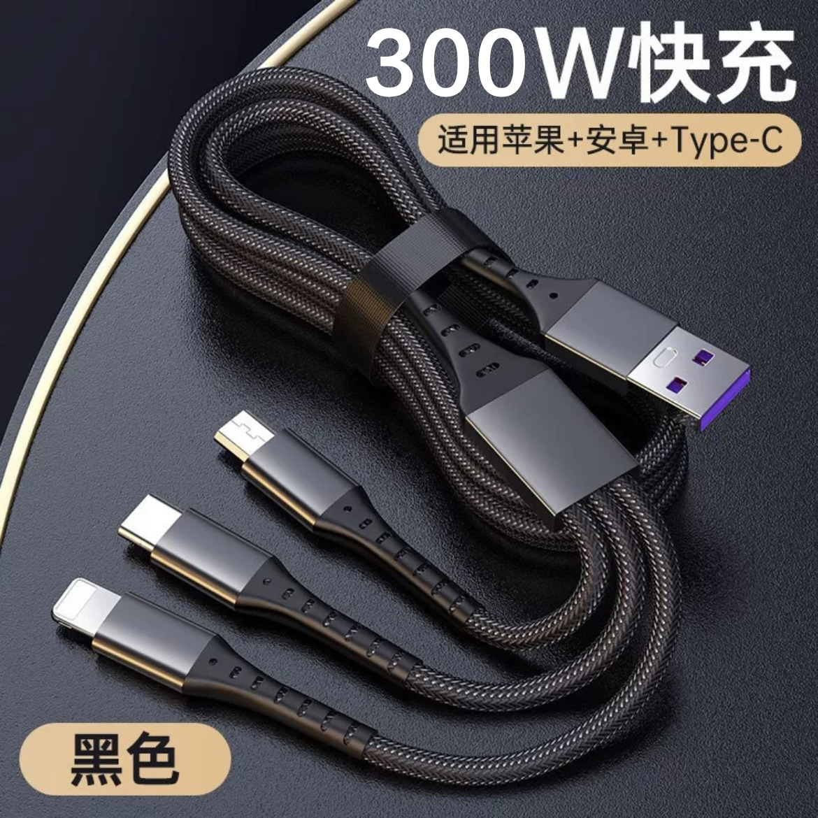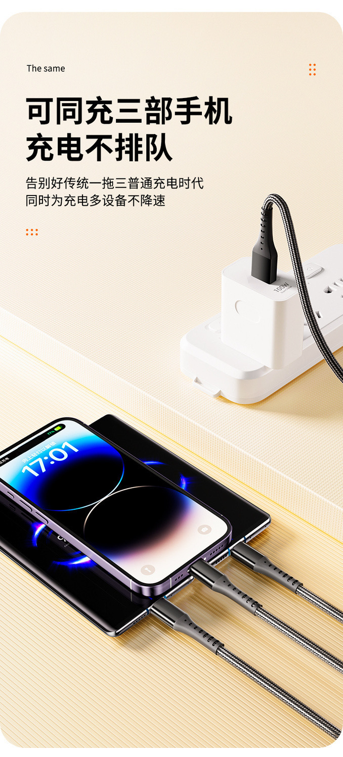 充电线器三合一数据线三头快充适用iPhone14安卓USB转Type-C车载