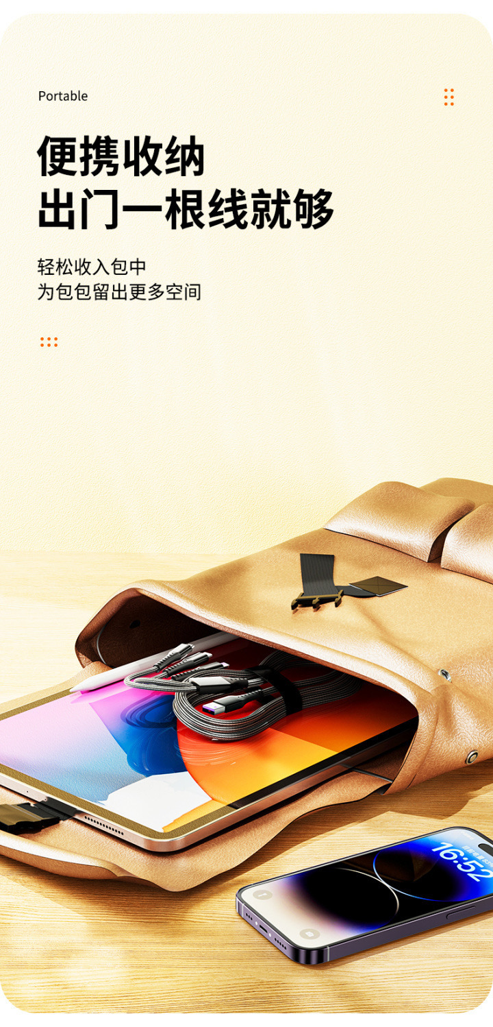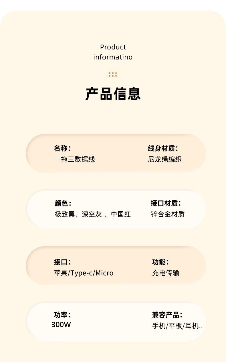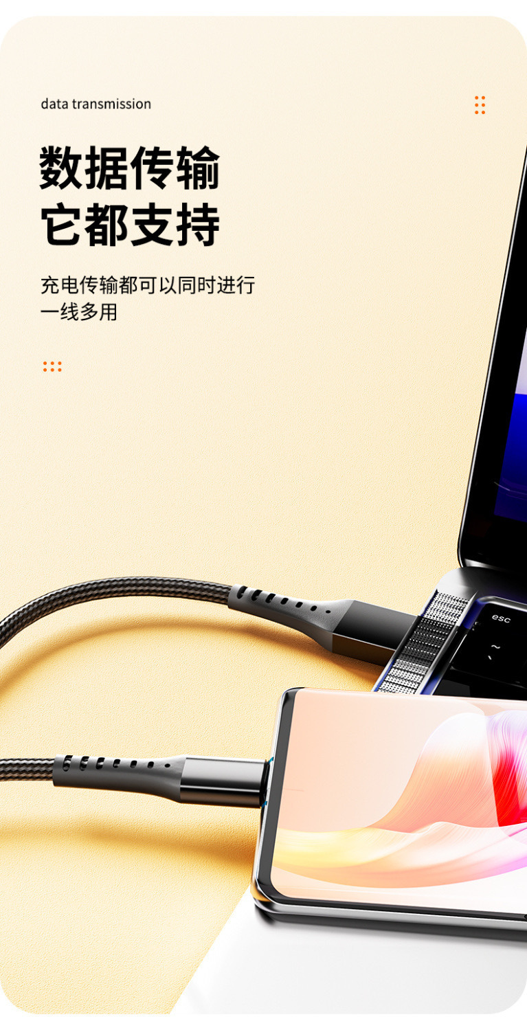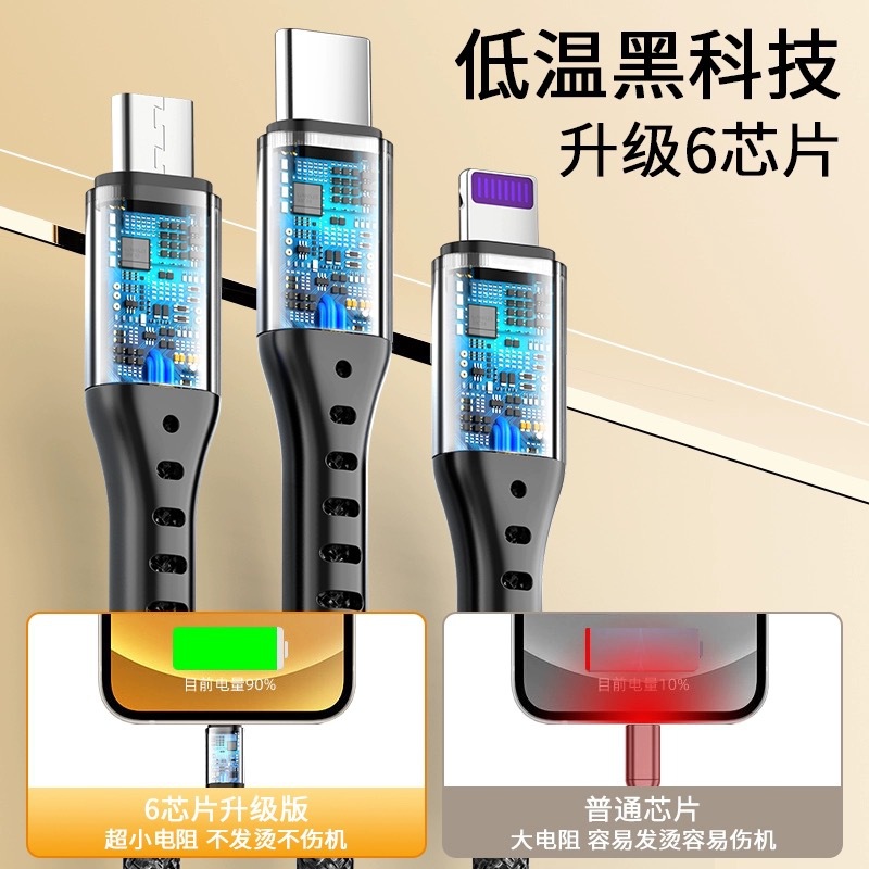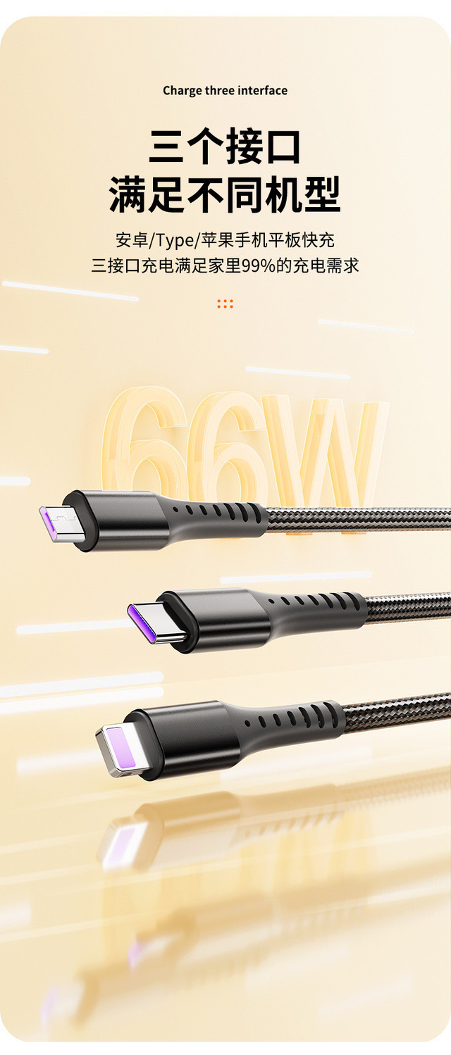 充电线器三合一数据线三头快充适用iPhone14安卓USB转Type-C车载