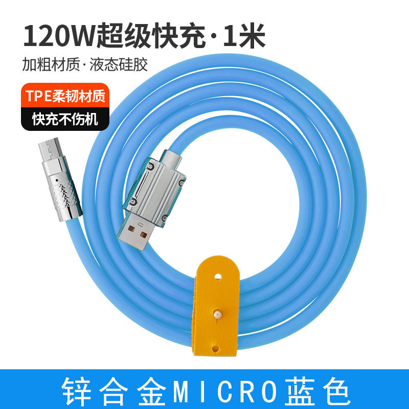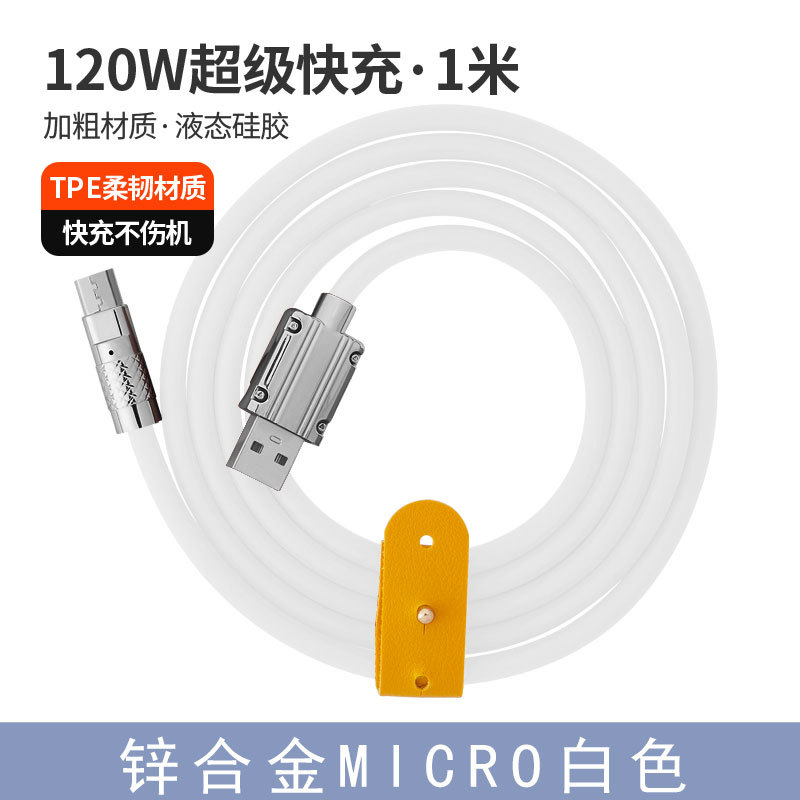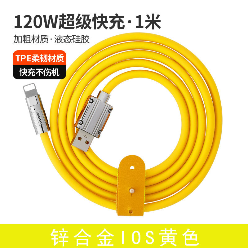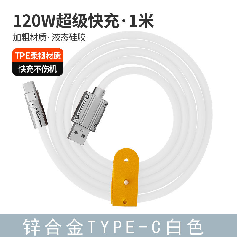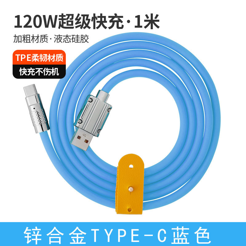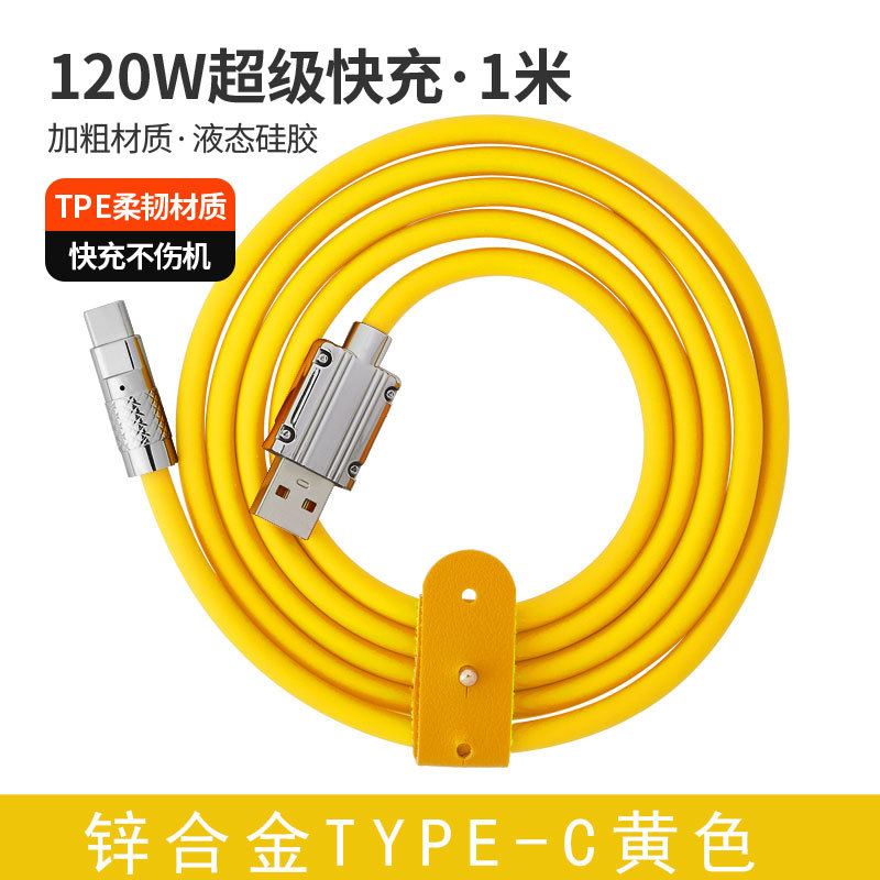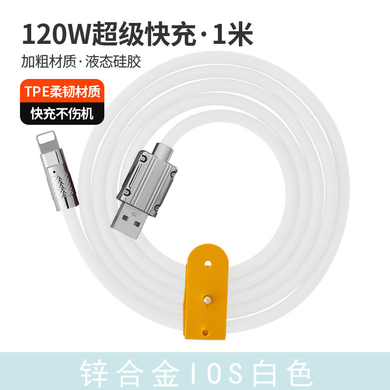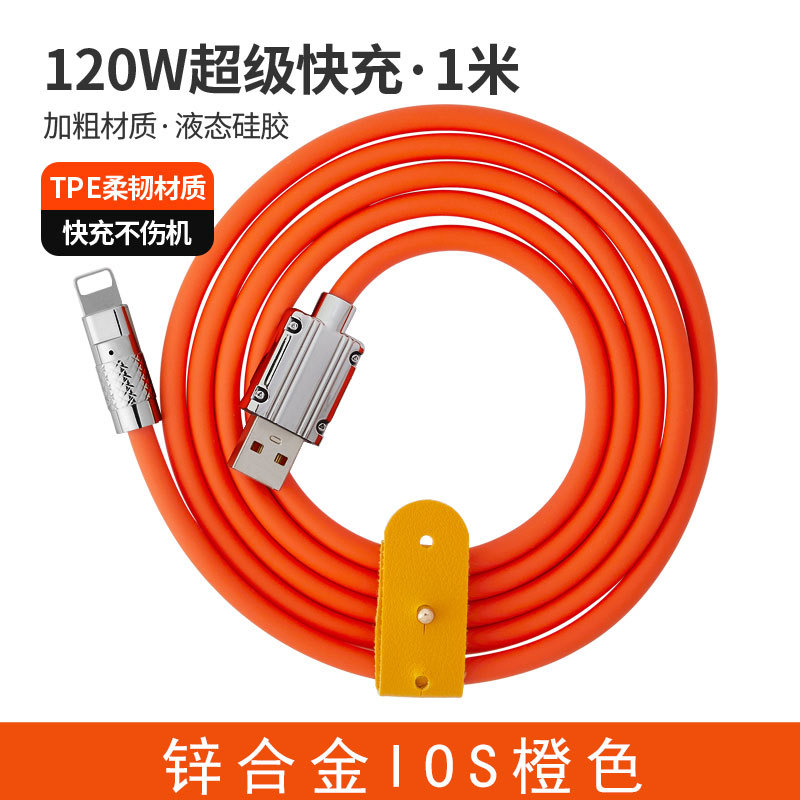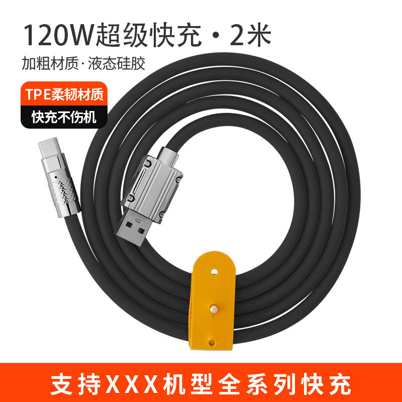 120W超级快充数据线锌合金机客线硅胶加粗6A快充带灯手机充电线