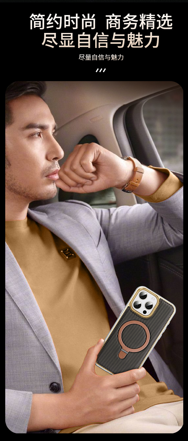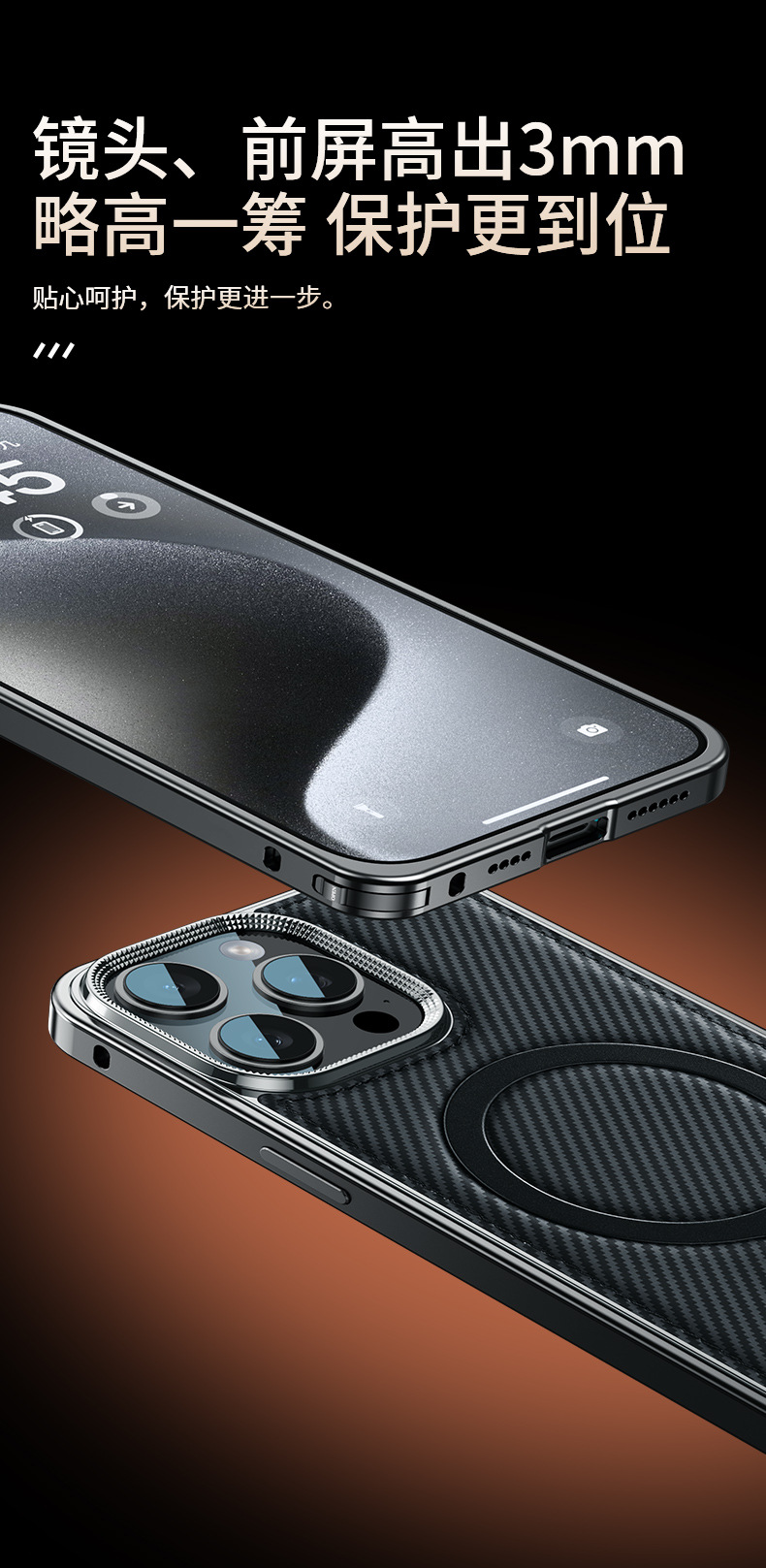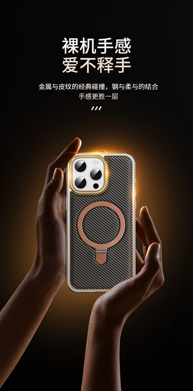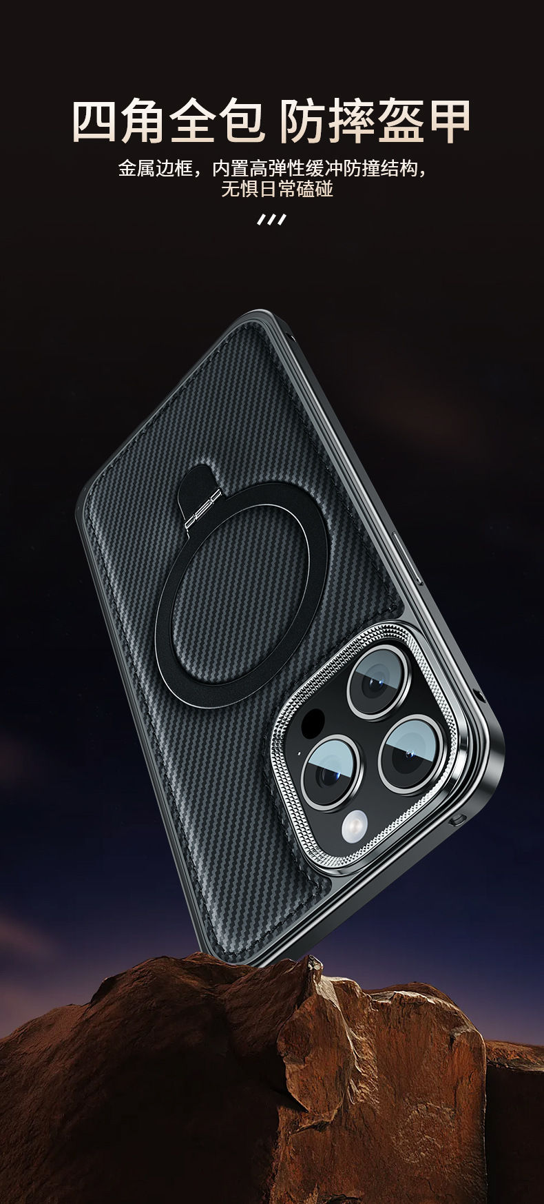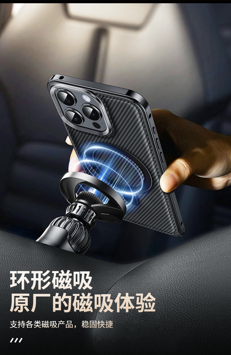 新款适用苹果15弹力扣金属边框碳纤纹支架手机壳iPhone14保护套