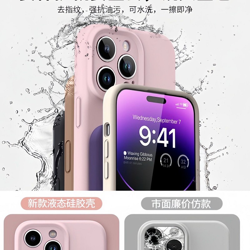 精孔固态硅胶适用iPhone15手机壳苹果14官方液态硅胶带logo保护套