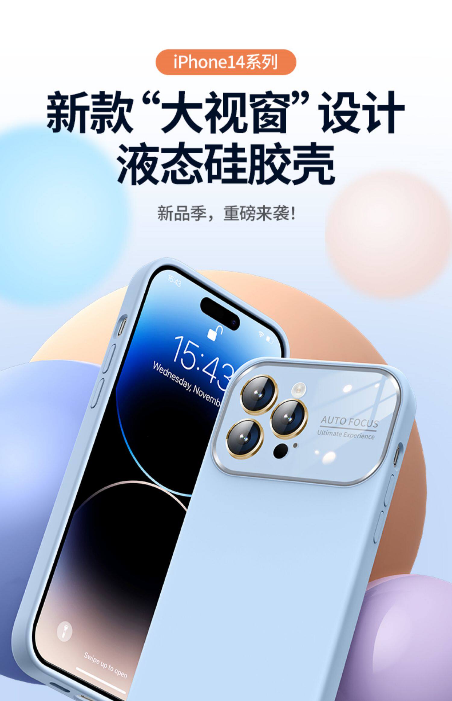 液态大视窗适用苹果15promax手机壳iPhone14带镜头膜硅胶保护套13