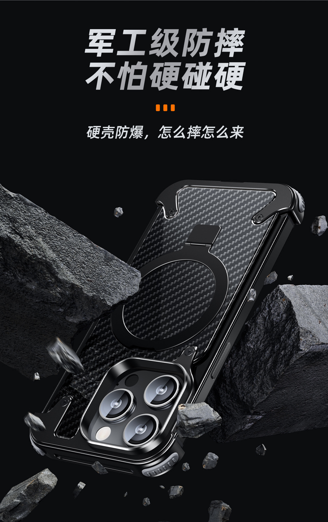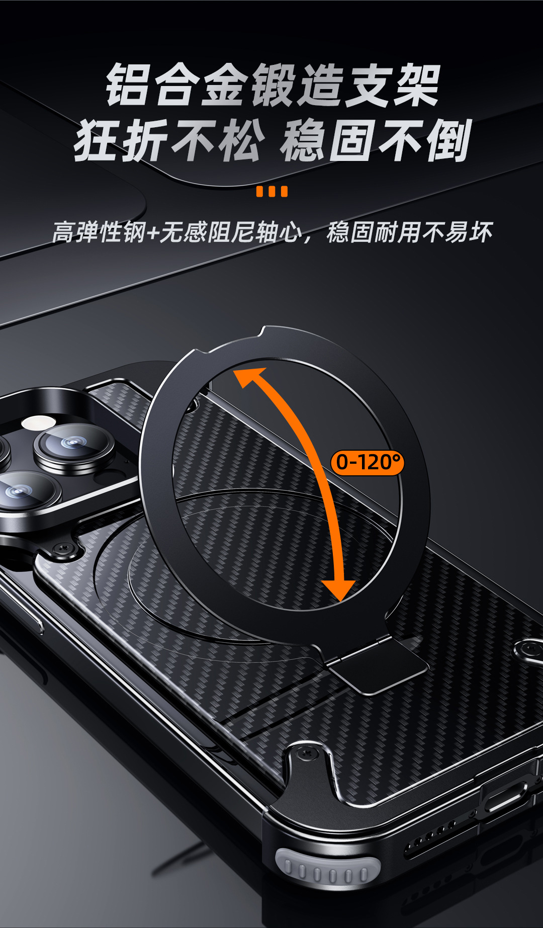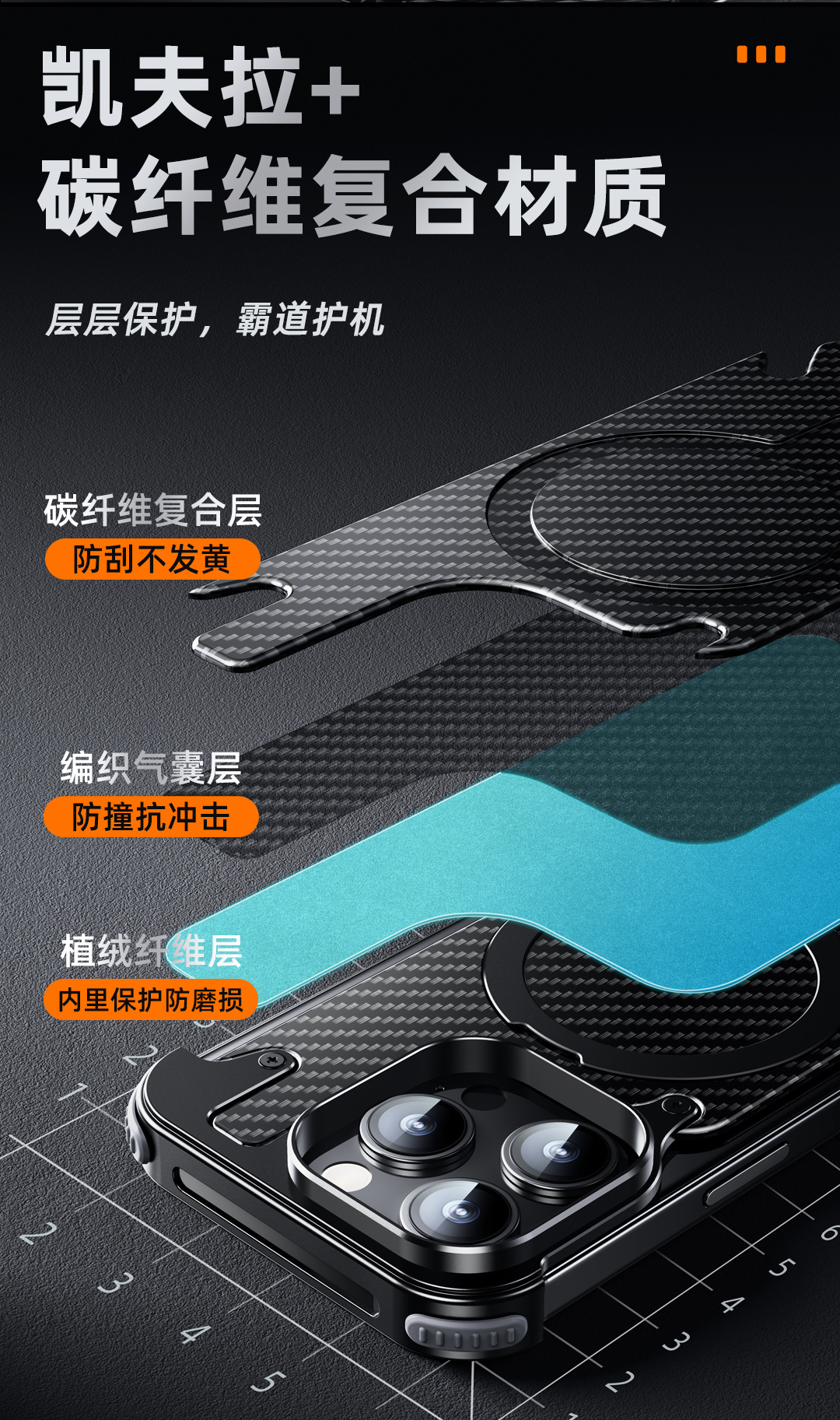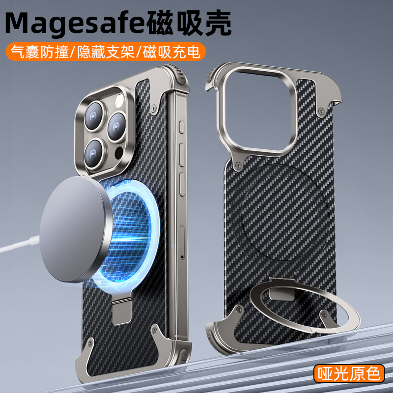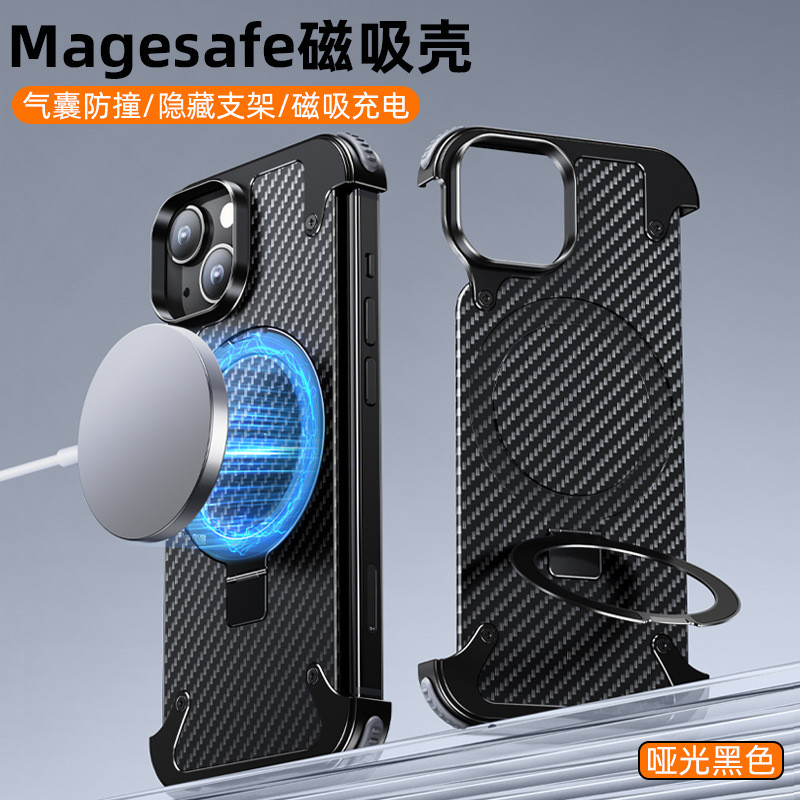 新款适用苹果15Promax手机壳气囊防摔碳纤维磁吸支架14保护套批发