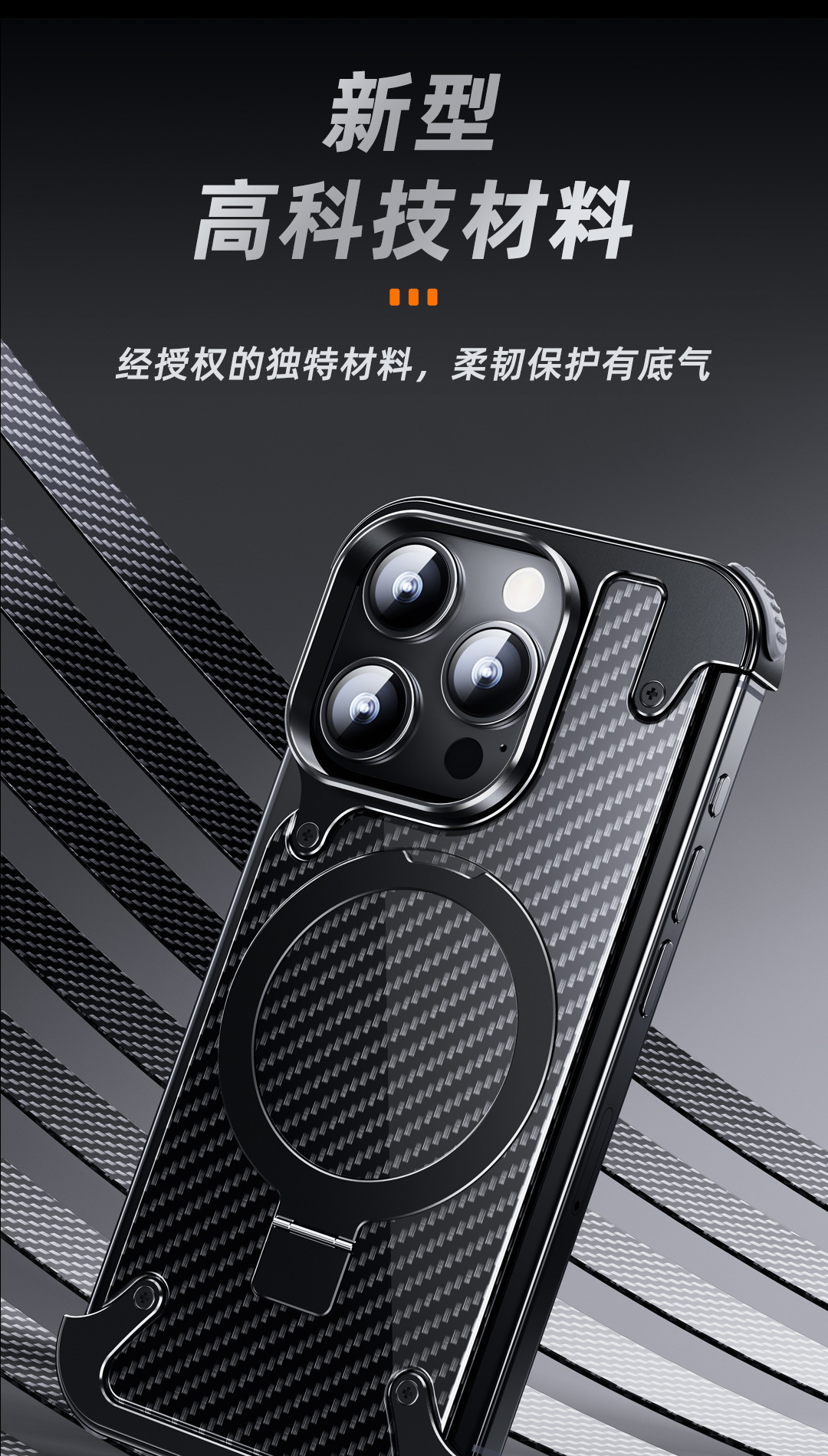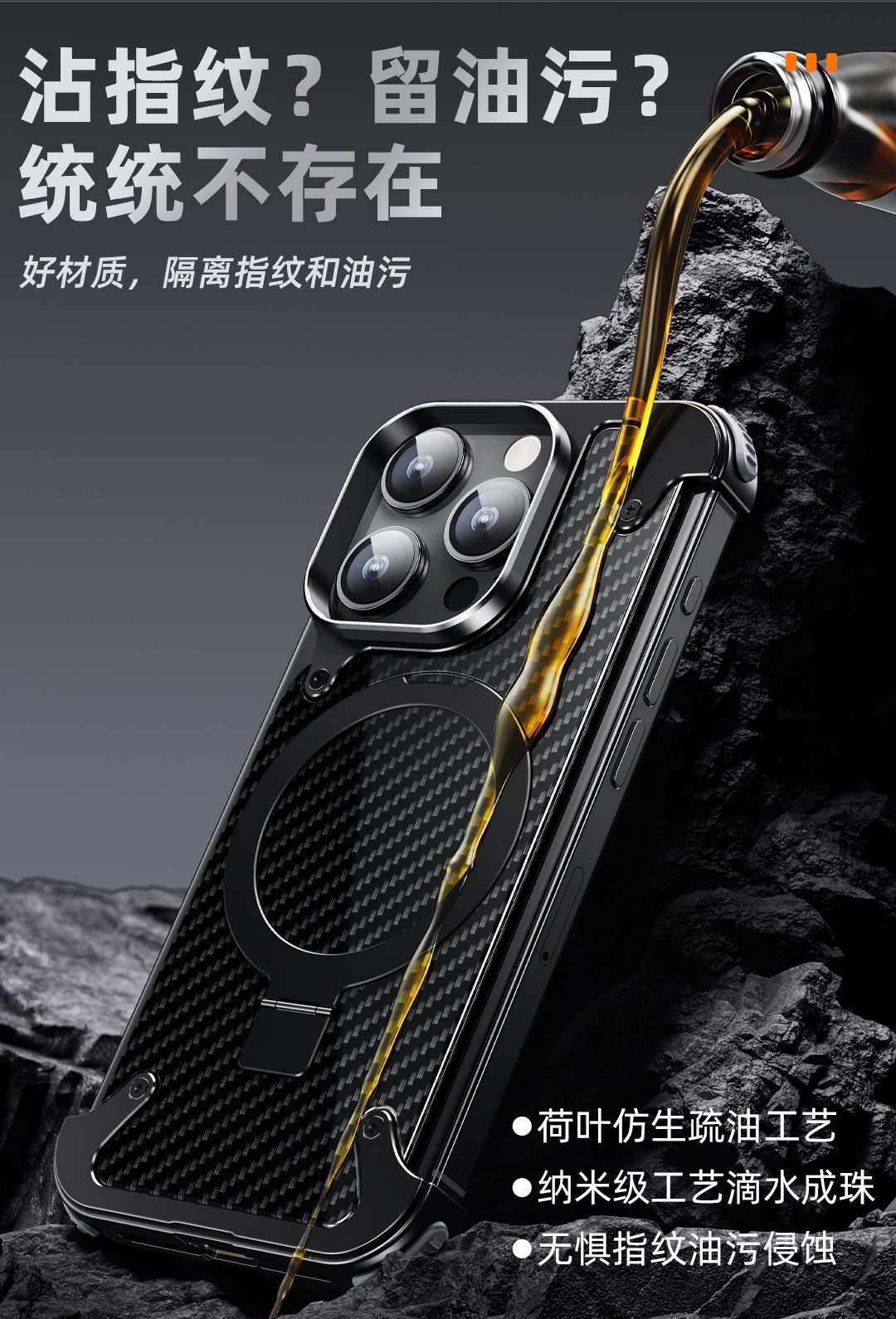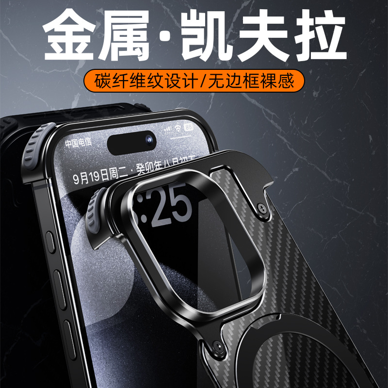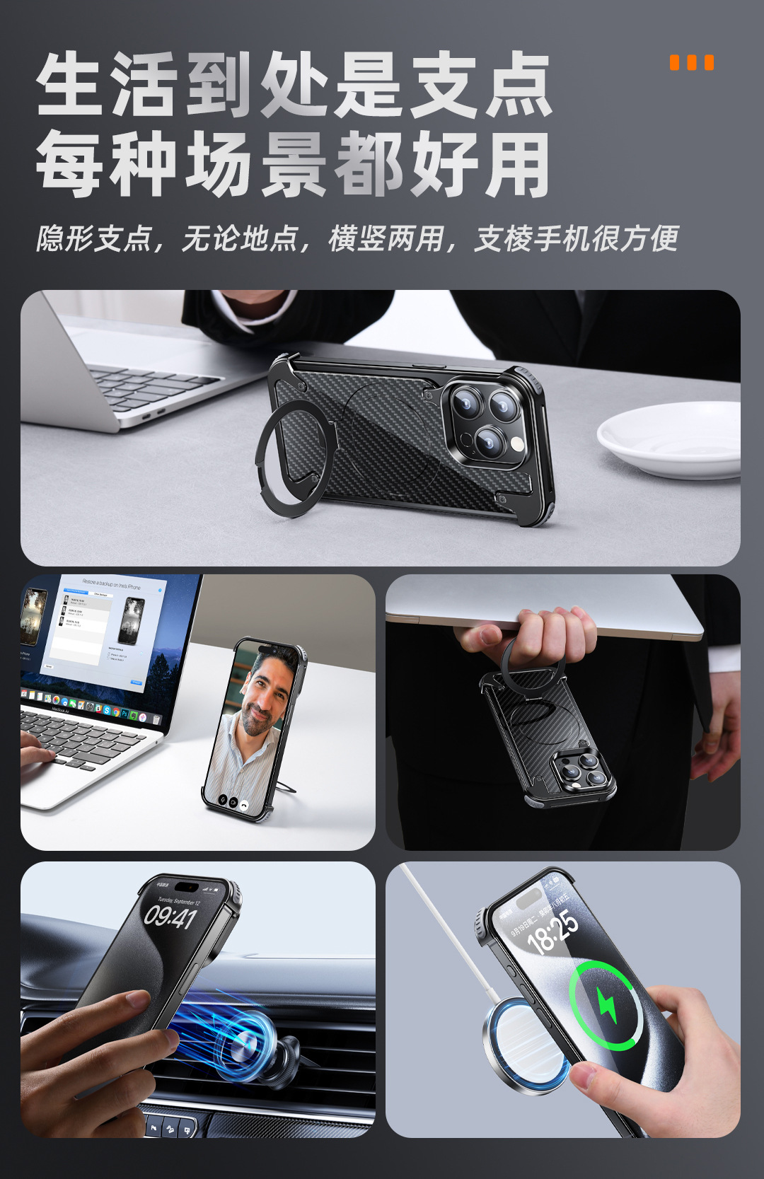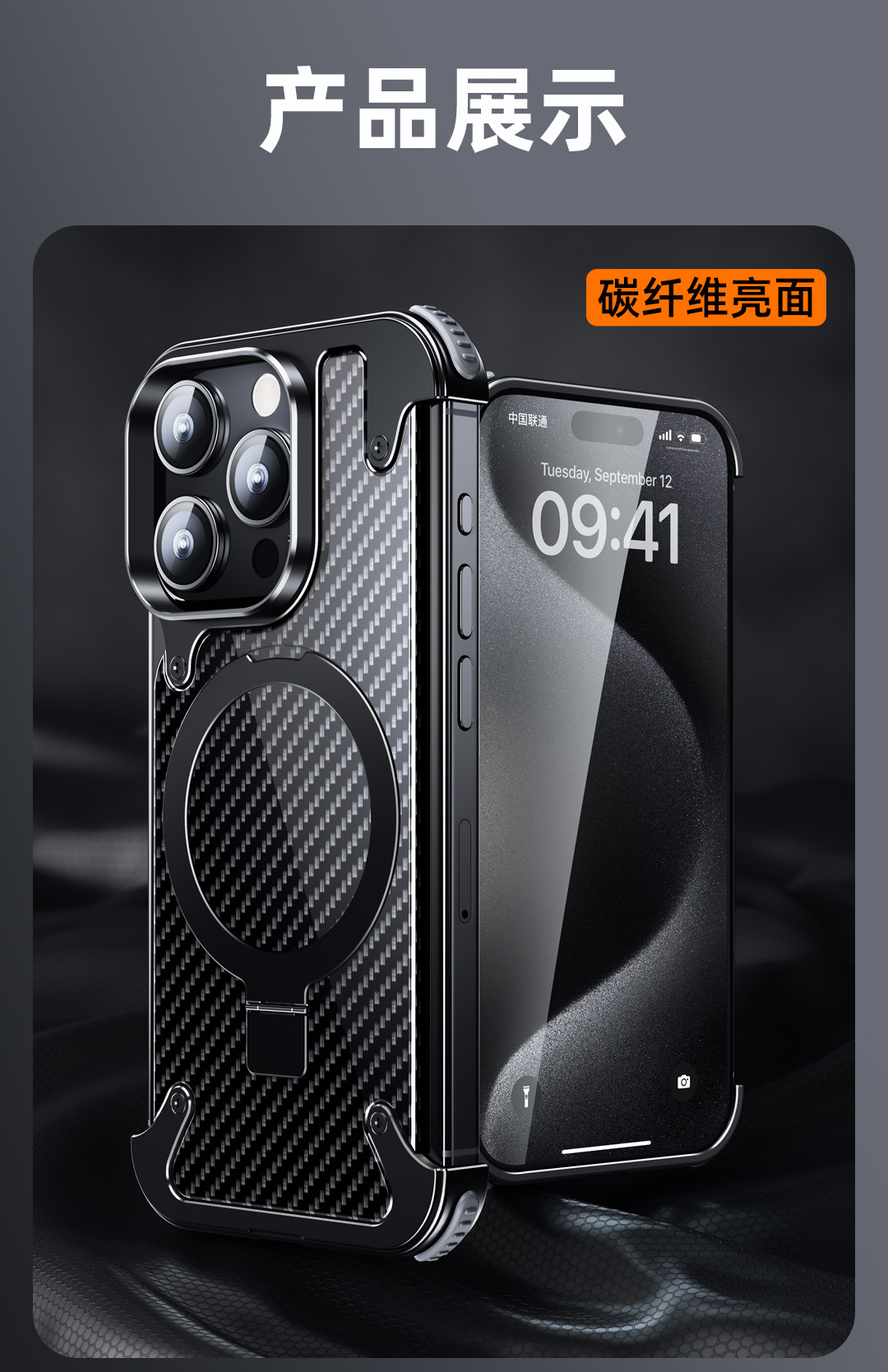 新款适用苹果15Promax手机壳气囊防摔碳纤维磁吸支架14保护套批发