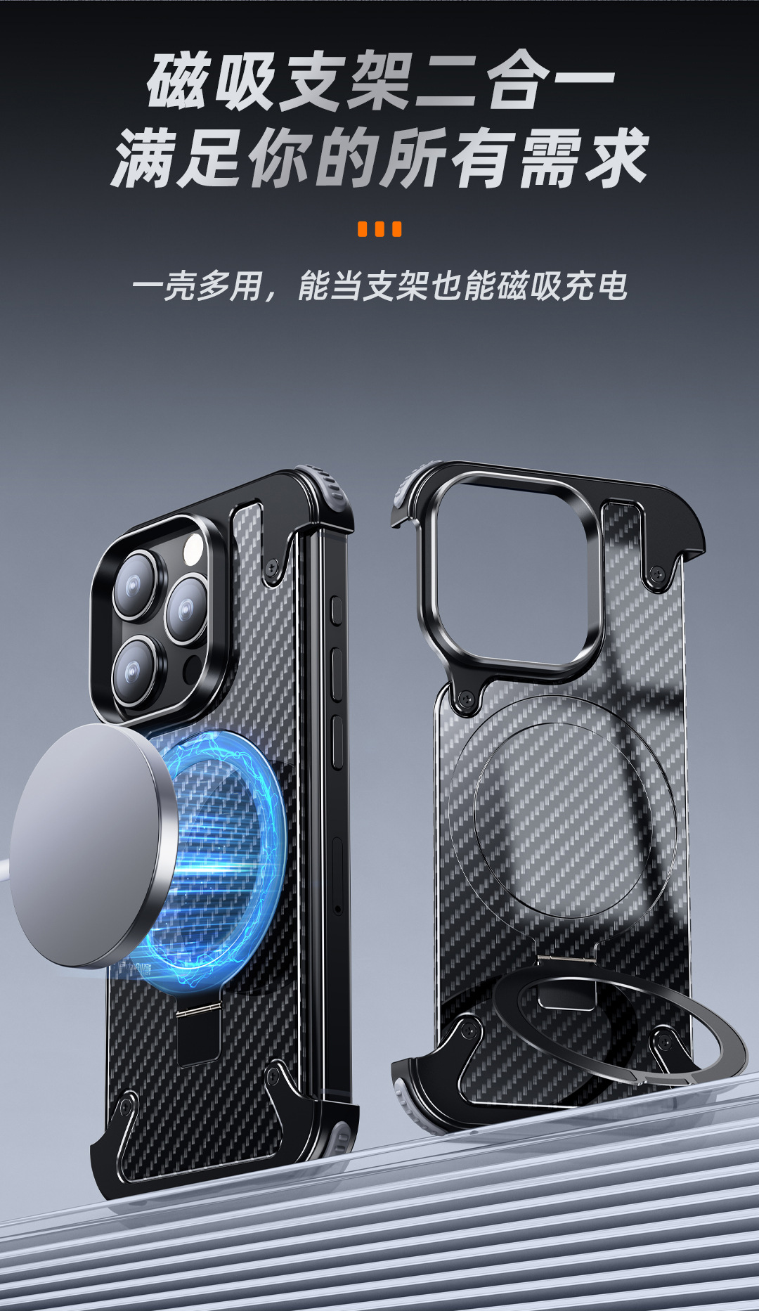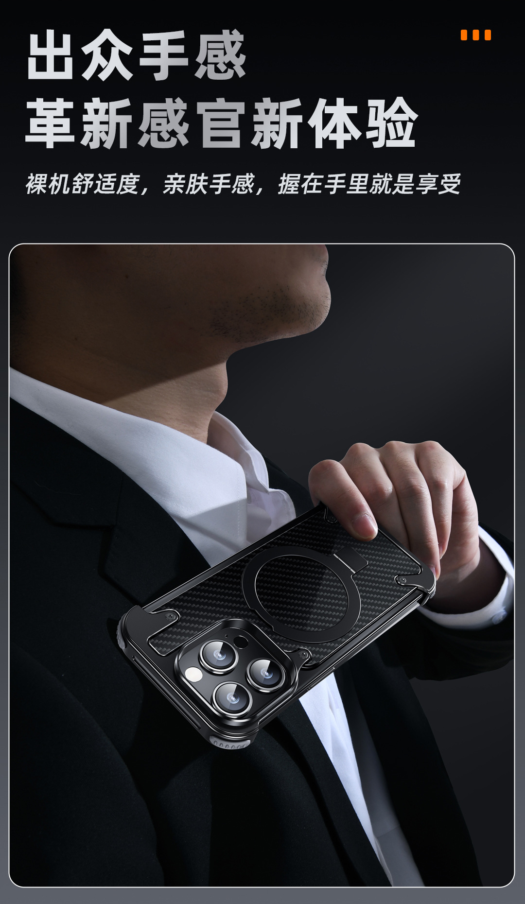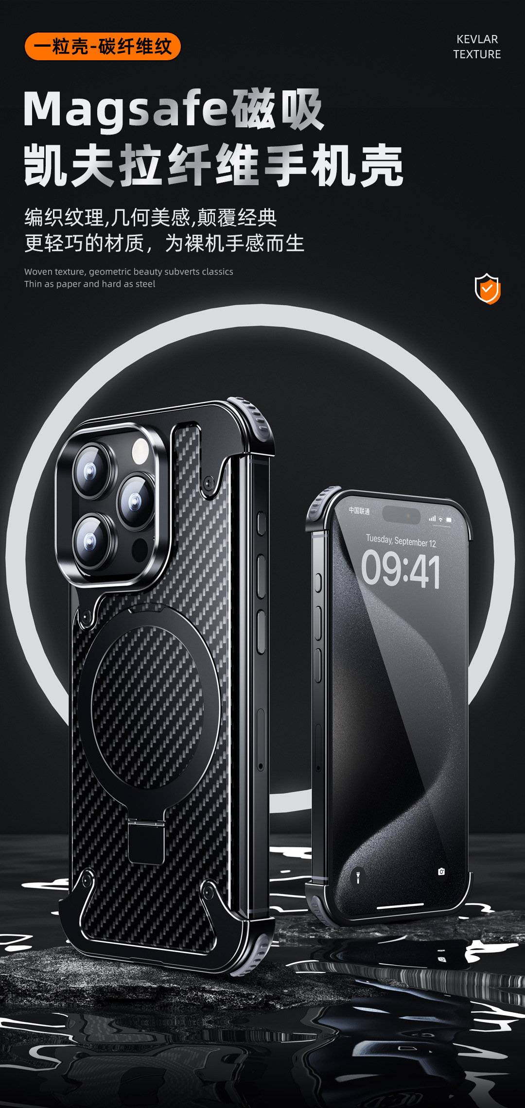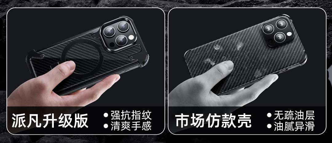新款适用苹果15Promax手机壳气囊防摔碳纤维磁吸支架14保护套批发