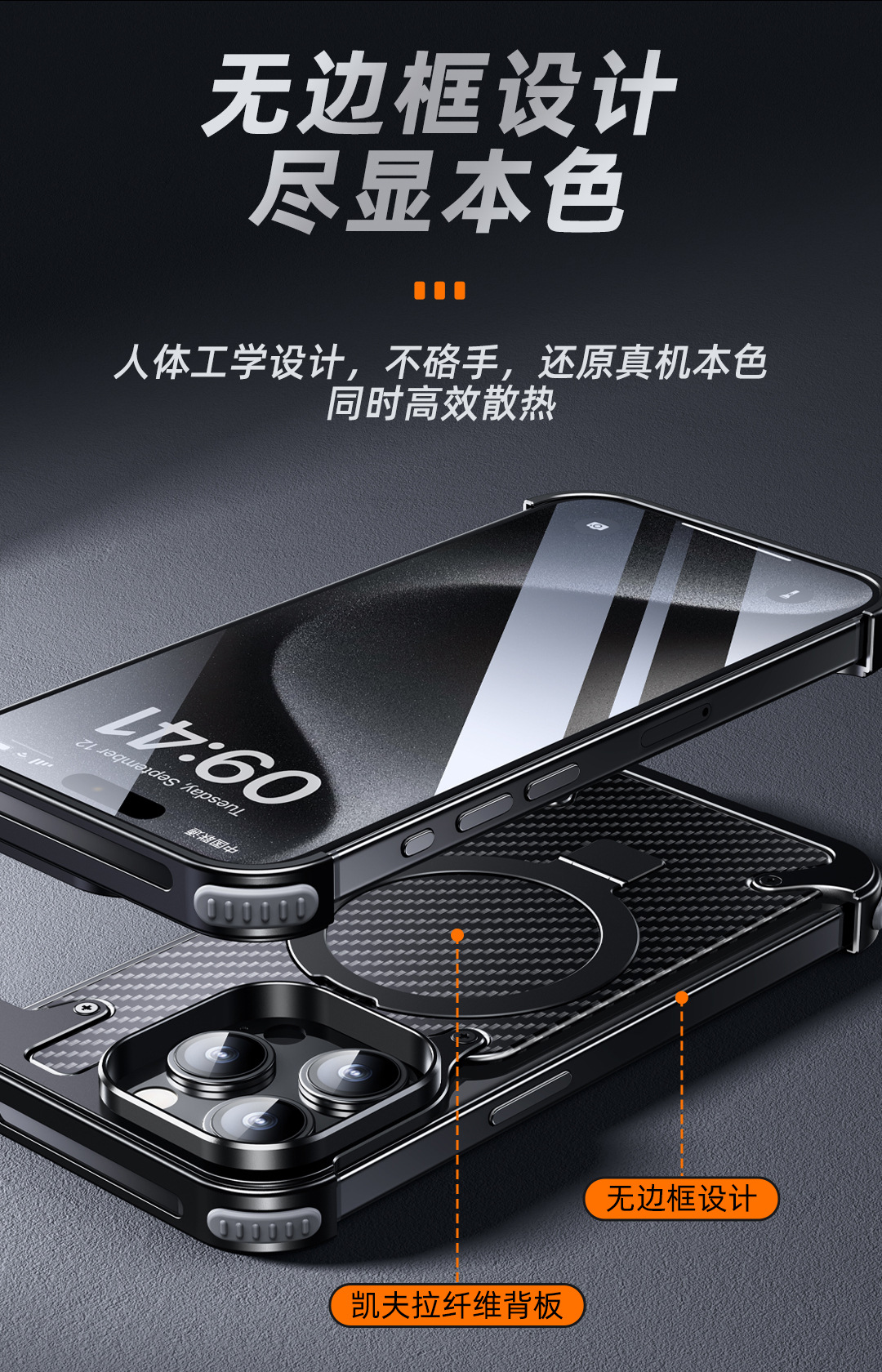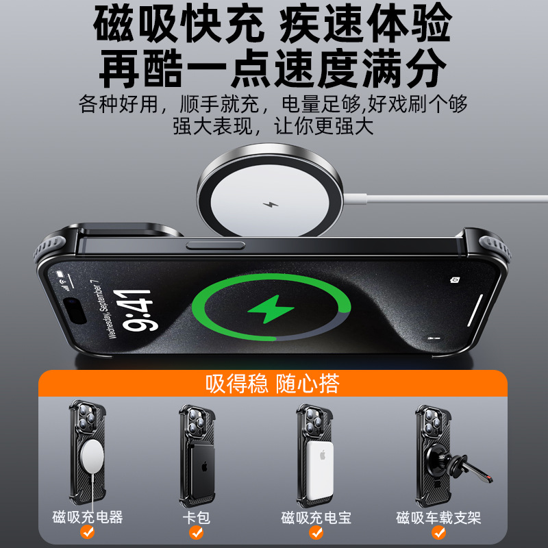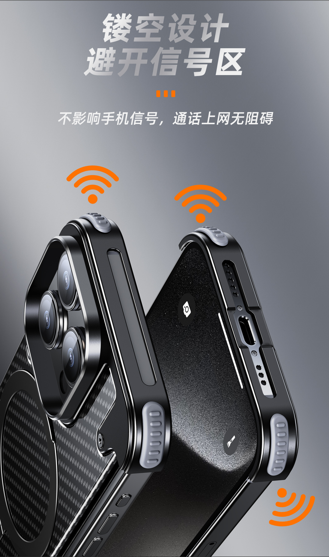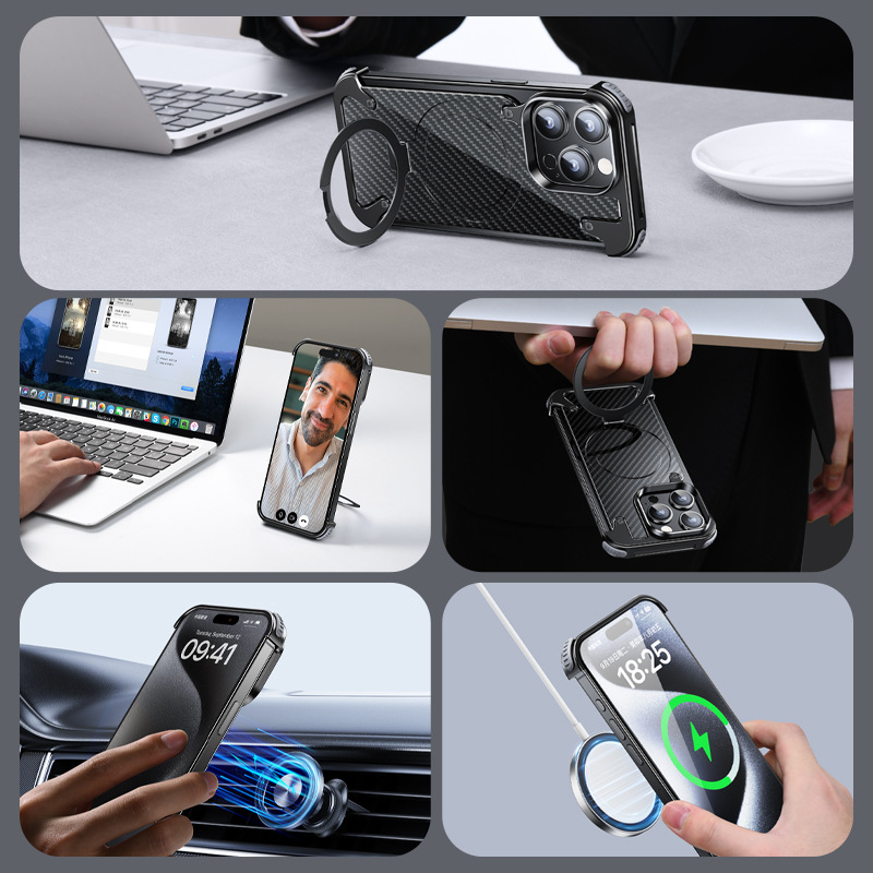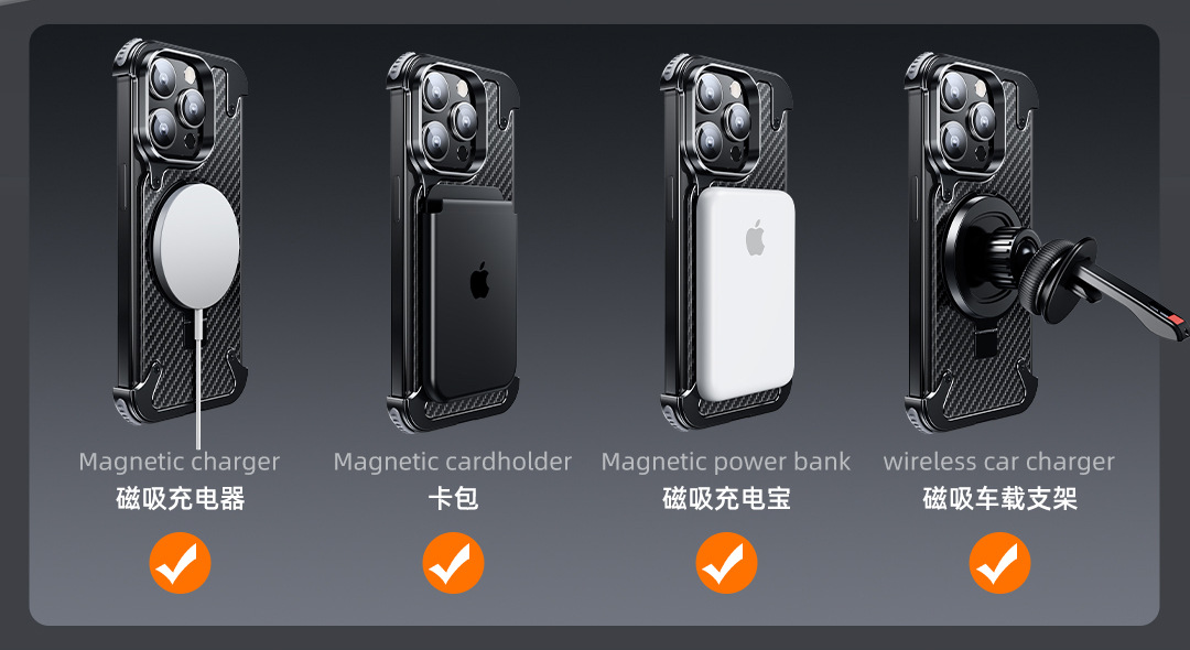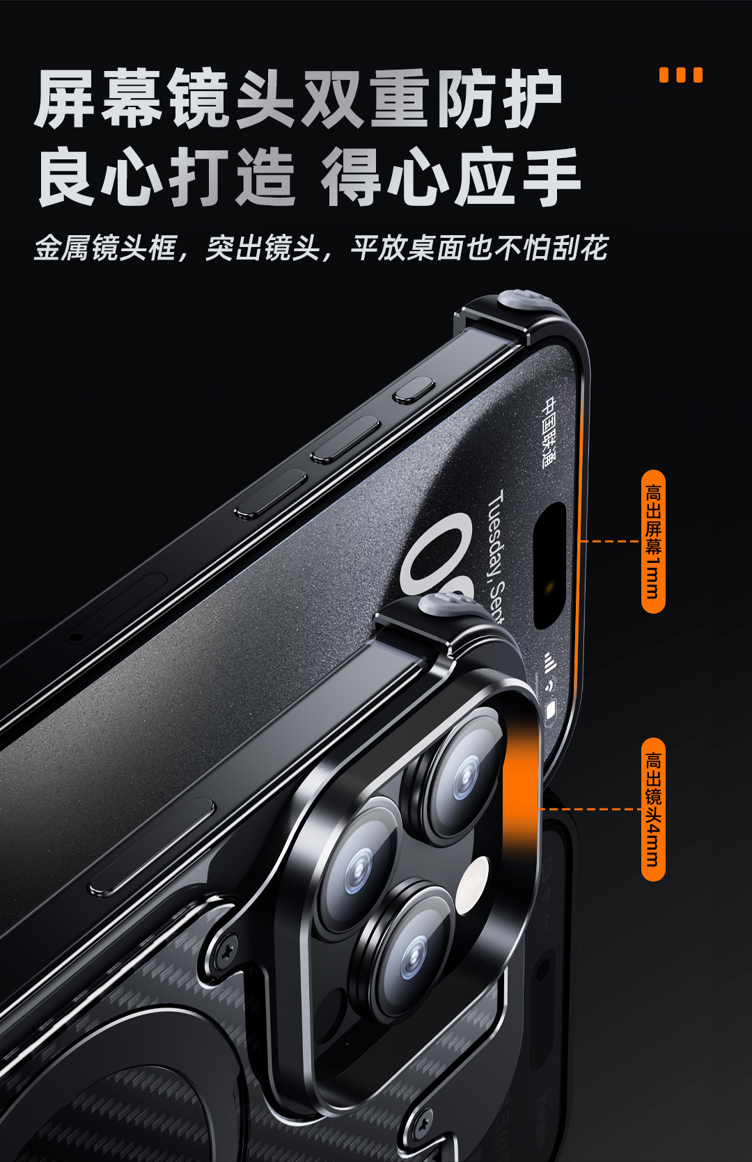 新款适用苹果15Promax手机壳气囊防摔碳纤维磁吸支架14保护套批发