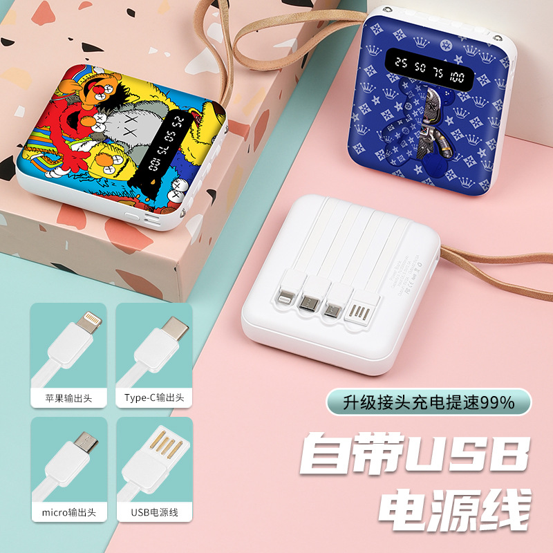 新款自带线迷你小巧20000毫安充电宝大容量移动电源礼品定制LOGO