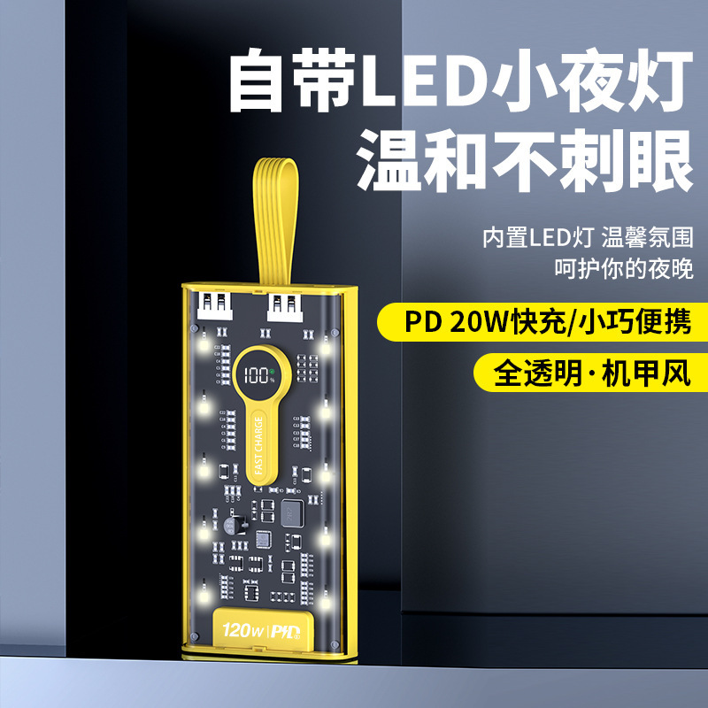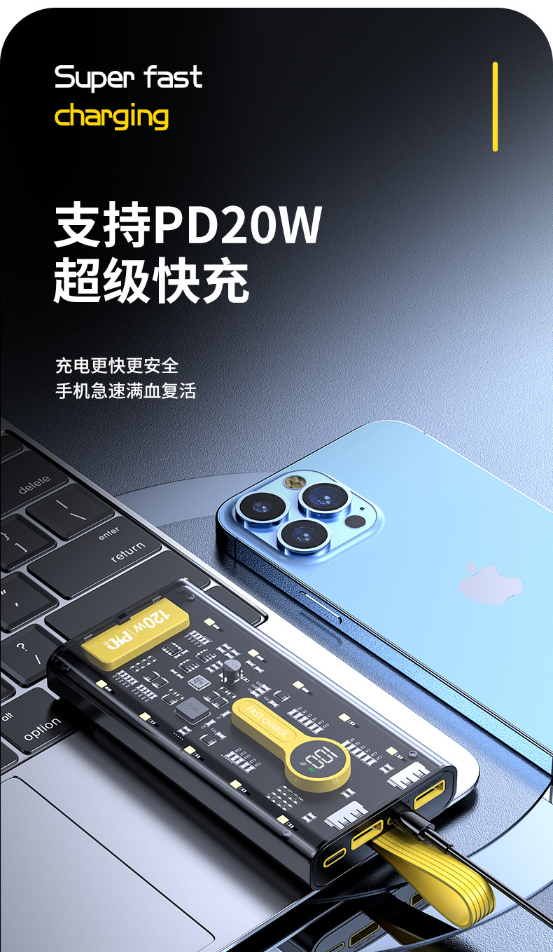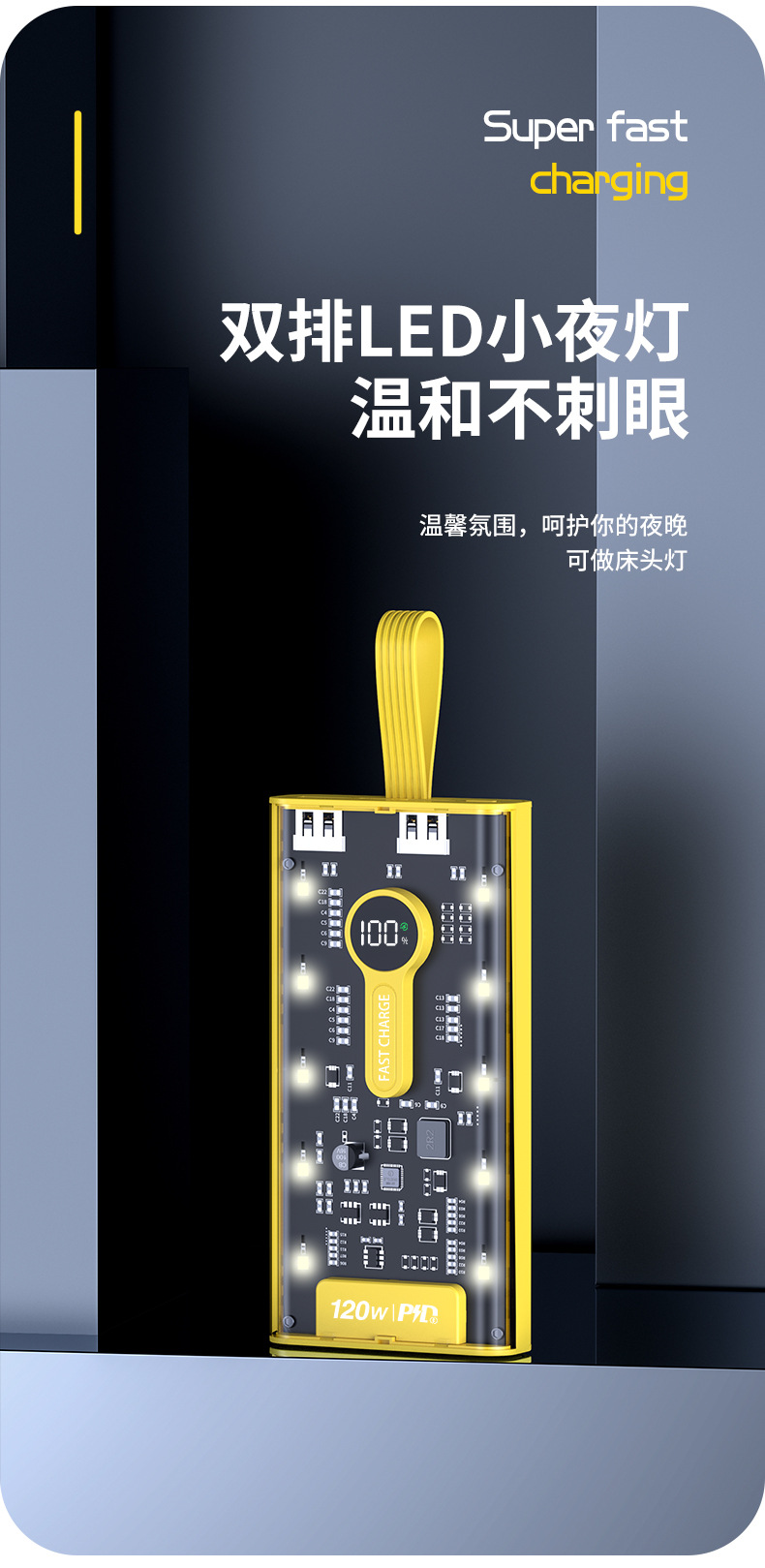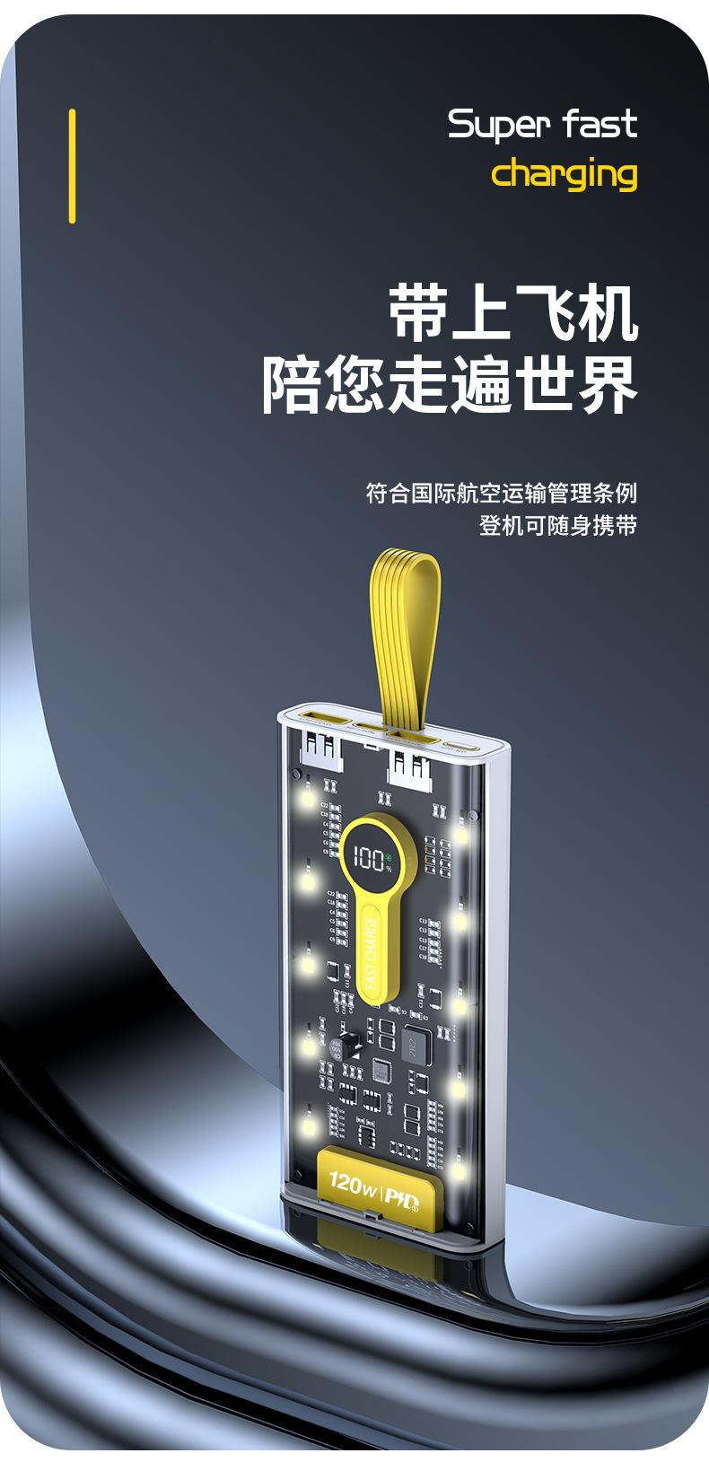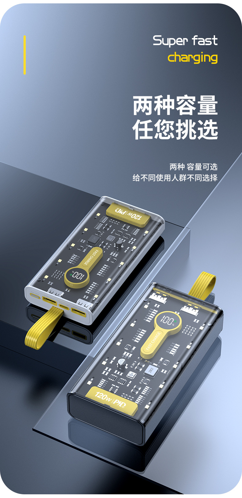 跨境批发手机充电宝超级快充120W自带线2万20000毫安移动电源LOGO