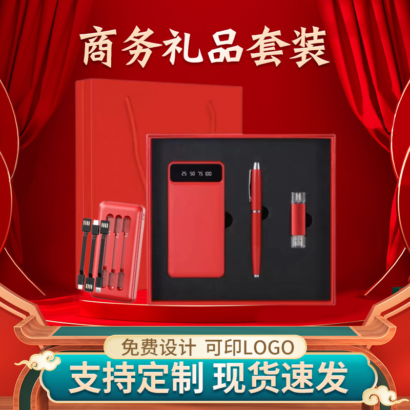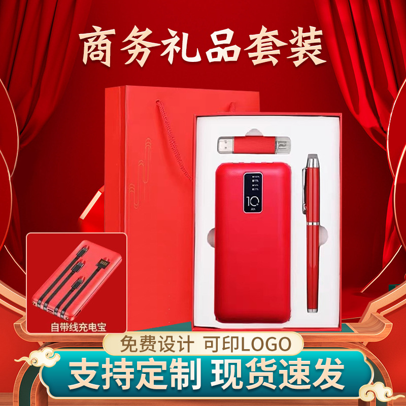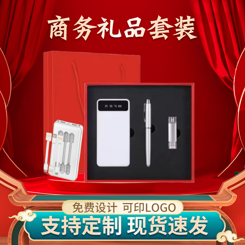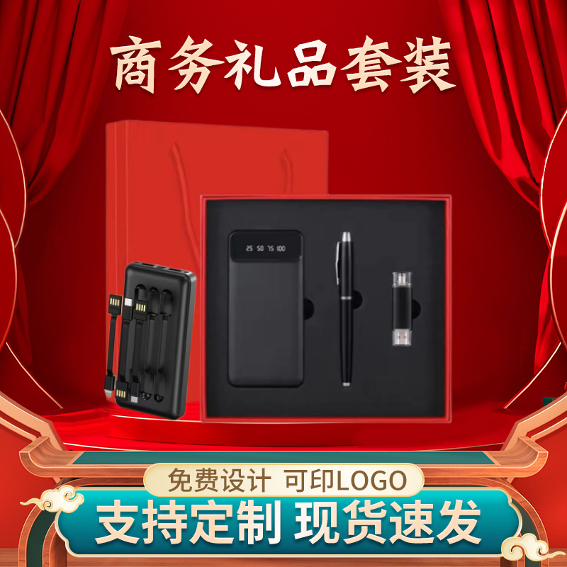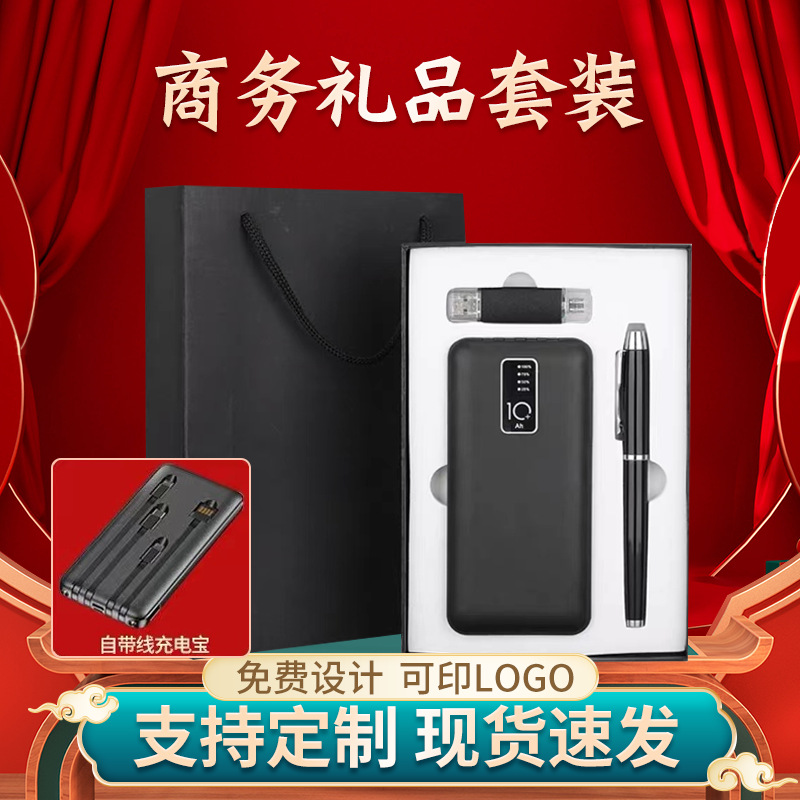 自带线便携充电宝套装批发公司商务礼品印logo大容量移动电源礼盒