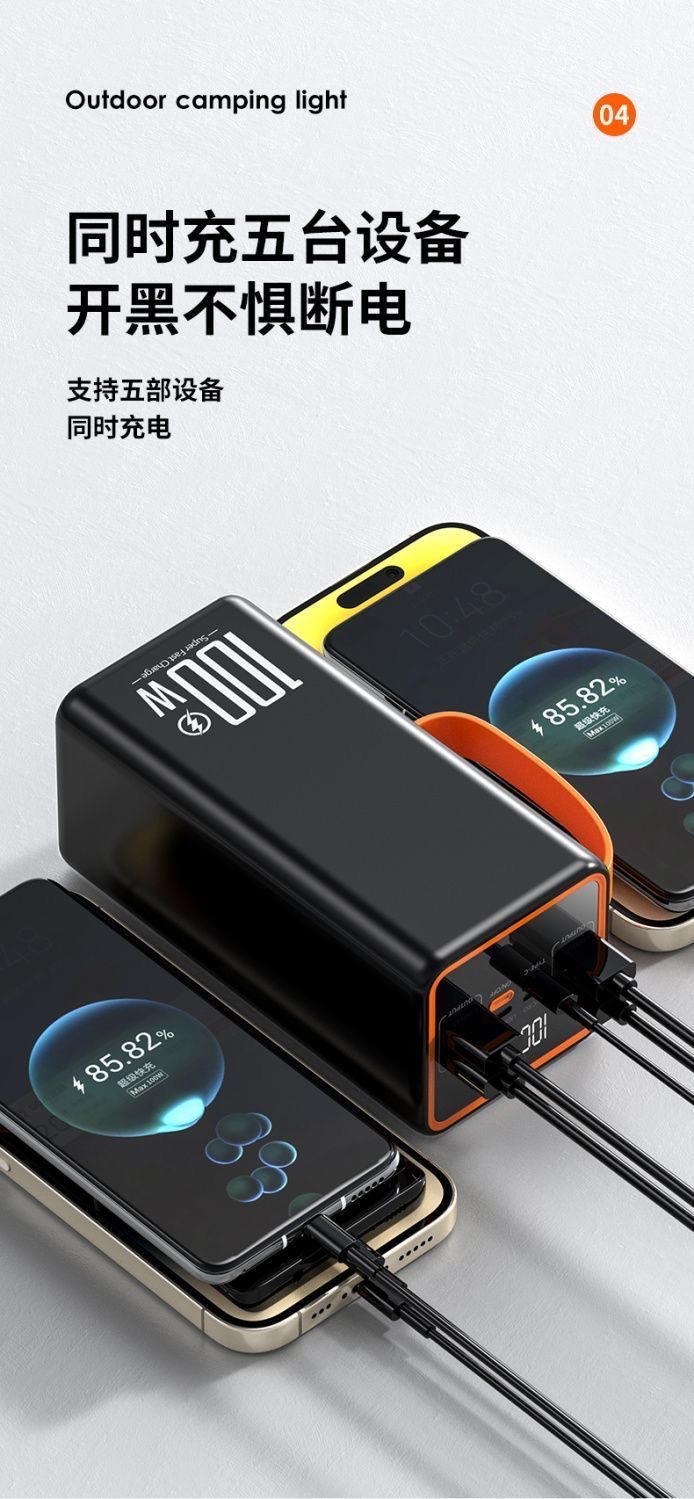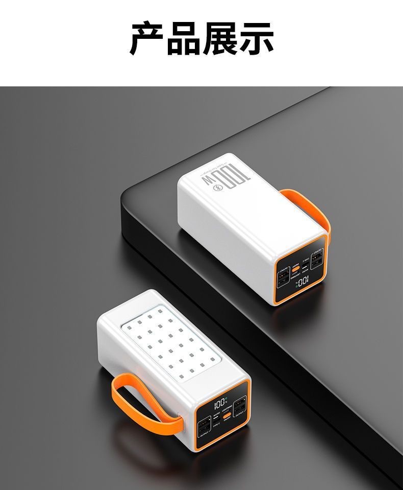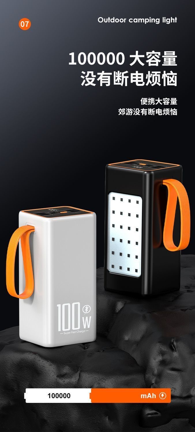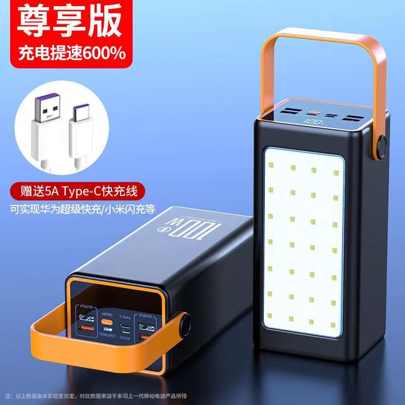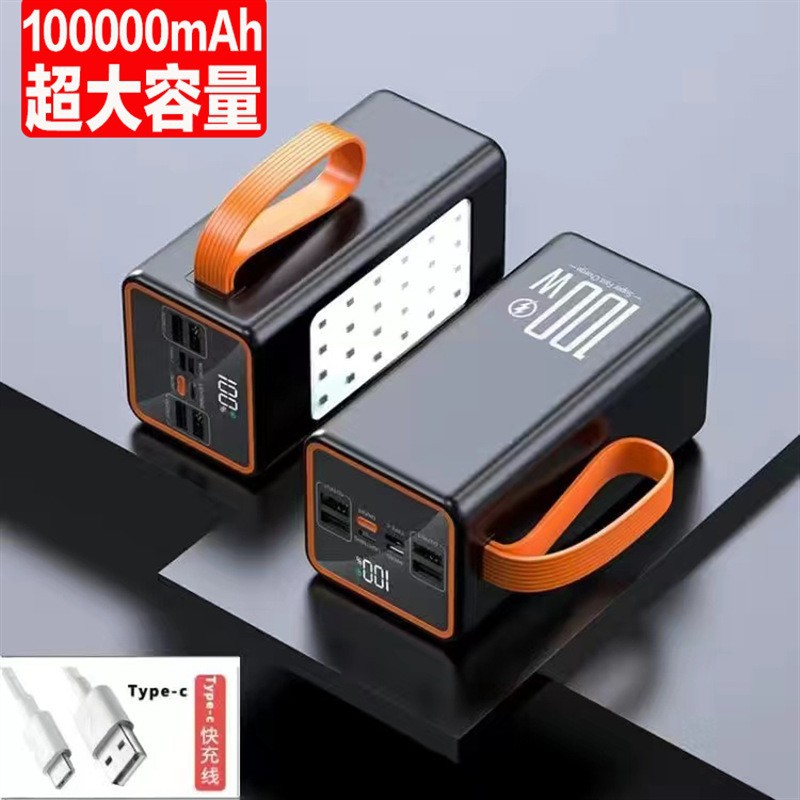 跨境100W超级快充充电宝超大容量100000毫安户外露营移动电源