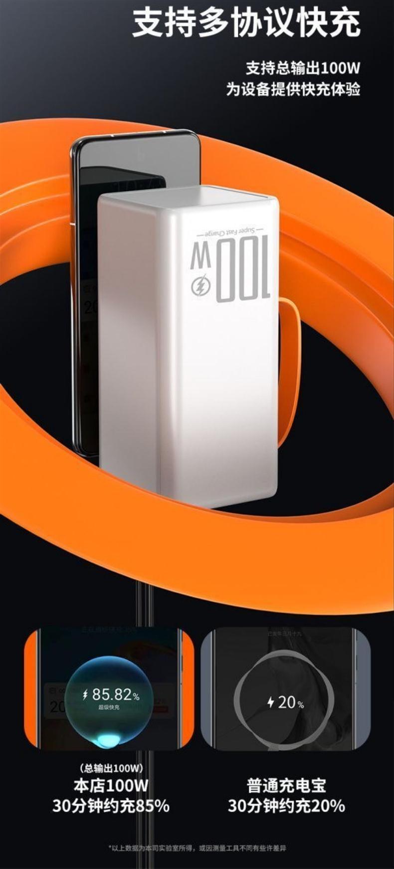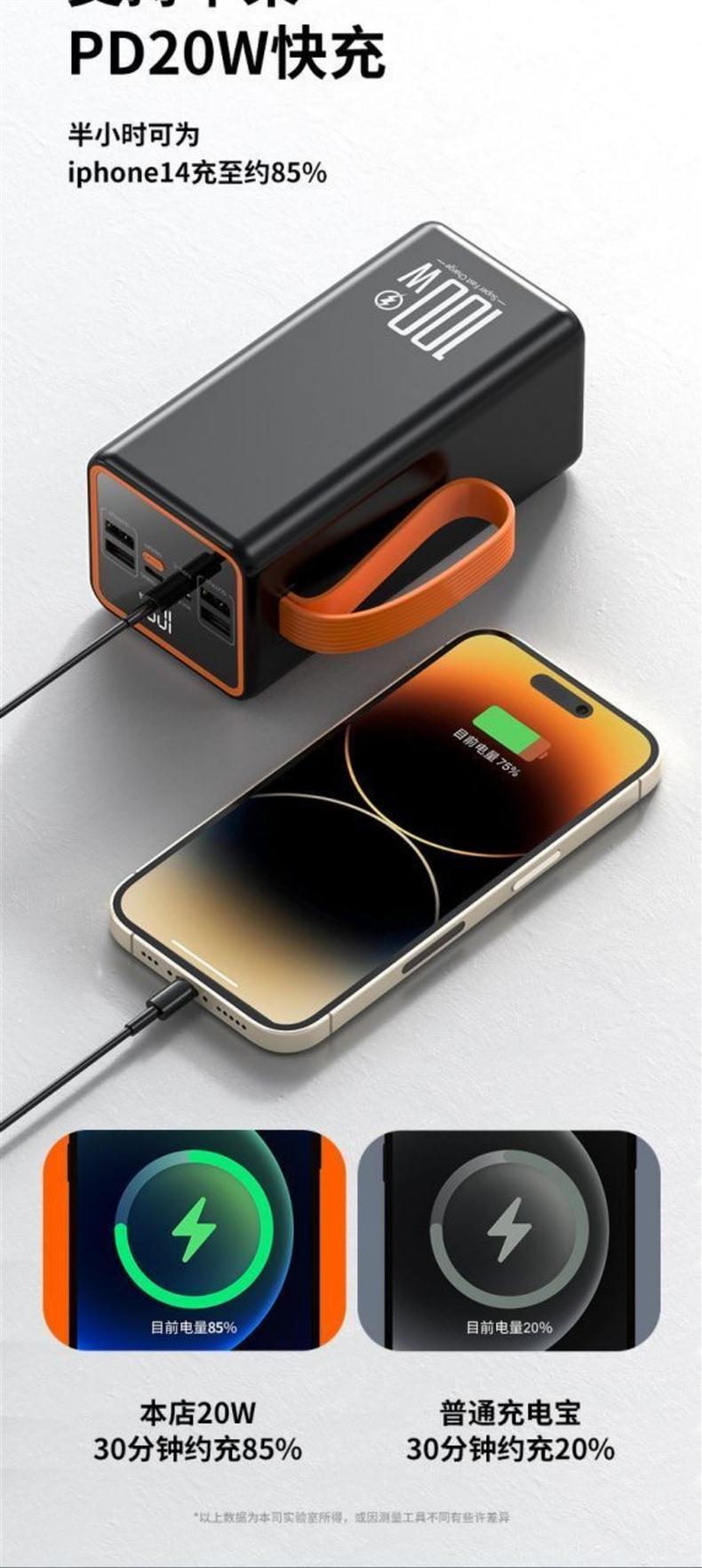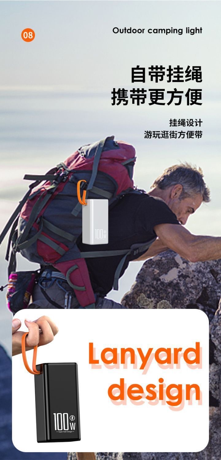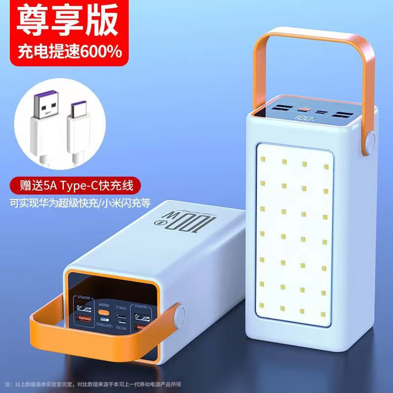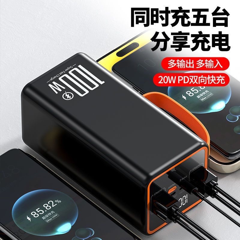 跨境100W超级快充充电宝超大容量100000毫安户外露营移动电源