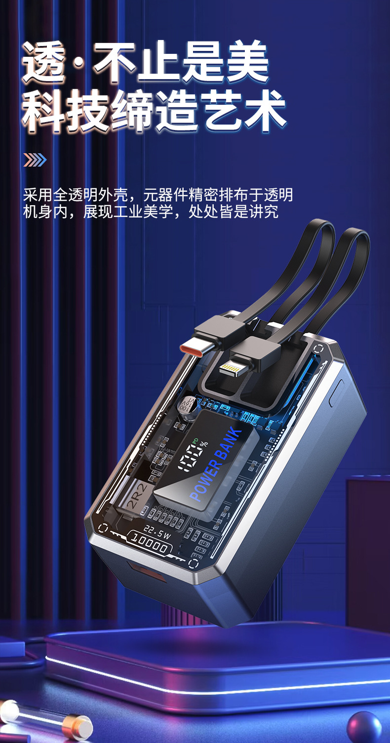 透明机甲2节4节自带线移动电源套件充电宝外壳DIY套料21700电池盒