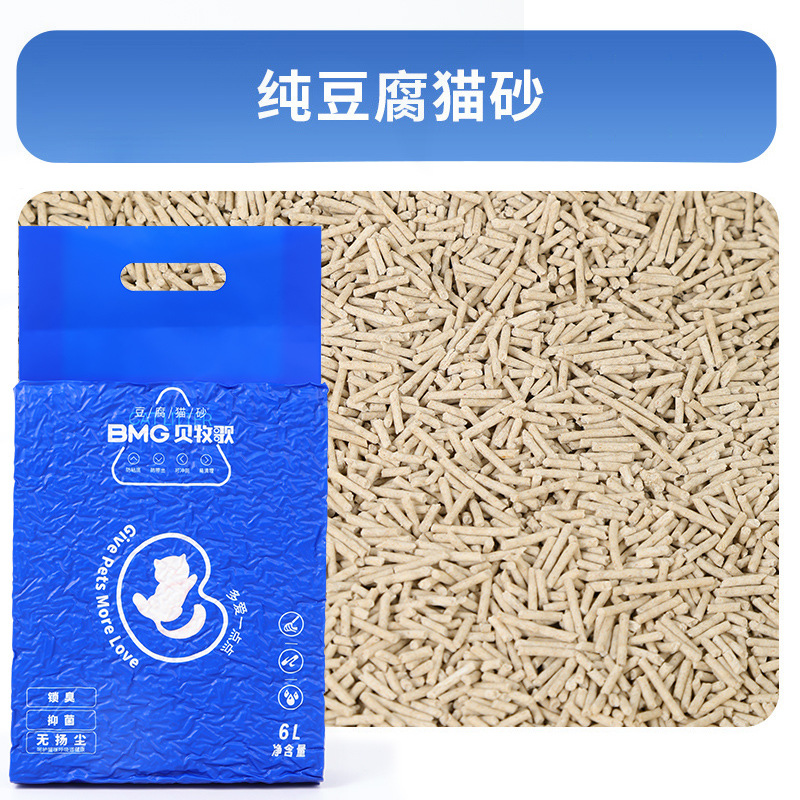 厂家批发纯豆腐猫砂 无尘2mm强结团6L除臭2.3KG防沾底易清理猫砂