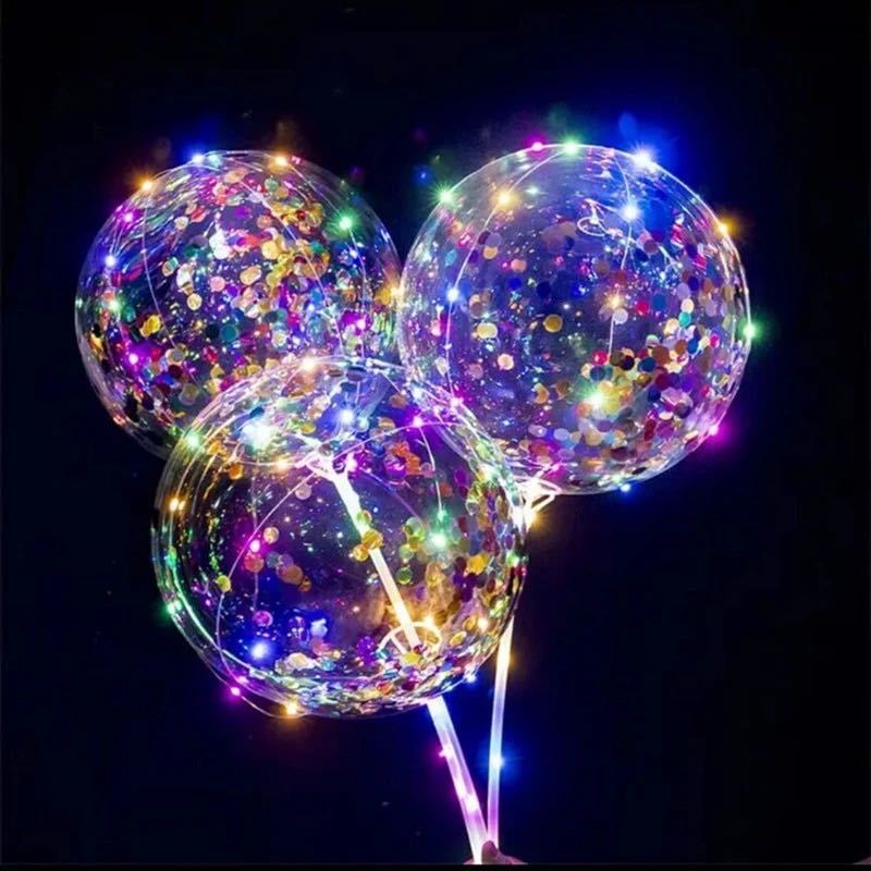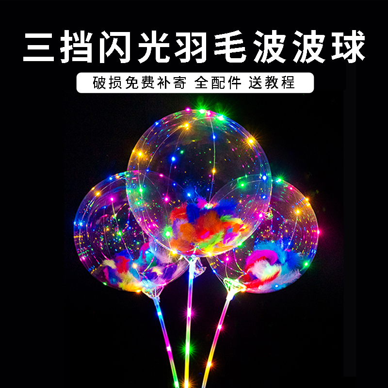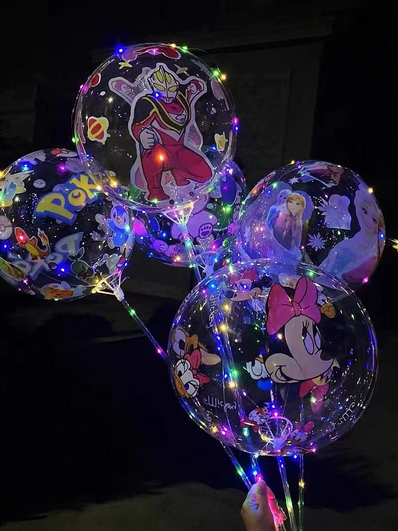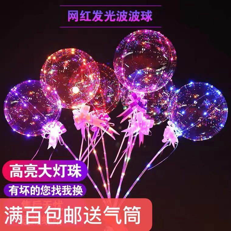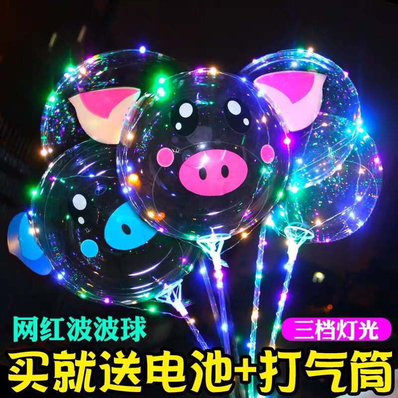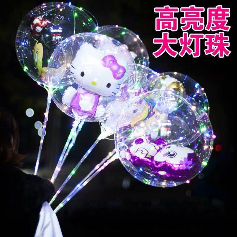 网红透明电子三档款调节波波球摆摊夜市带灯卡通发光气球闪光彩灯