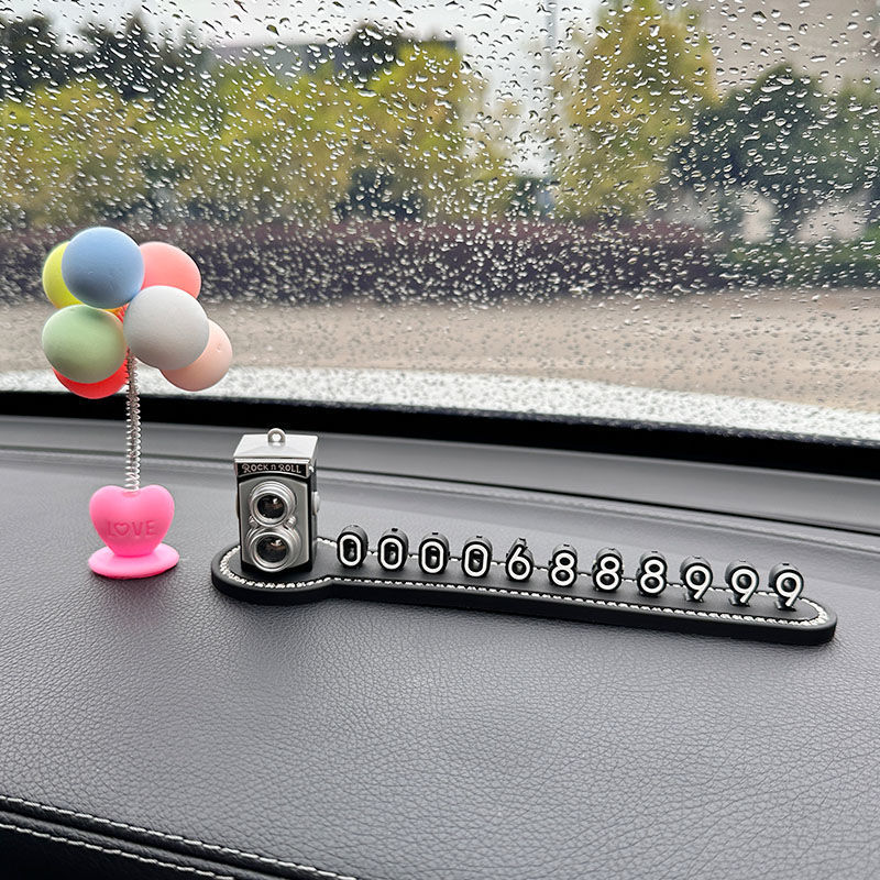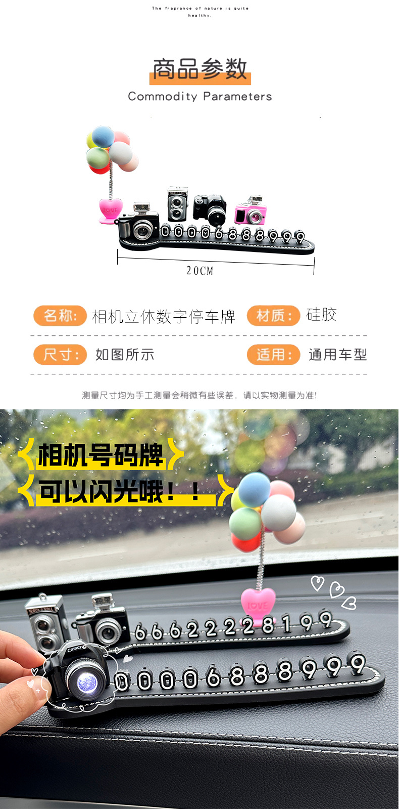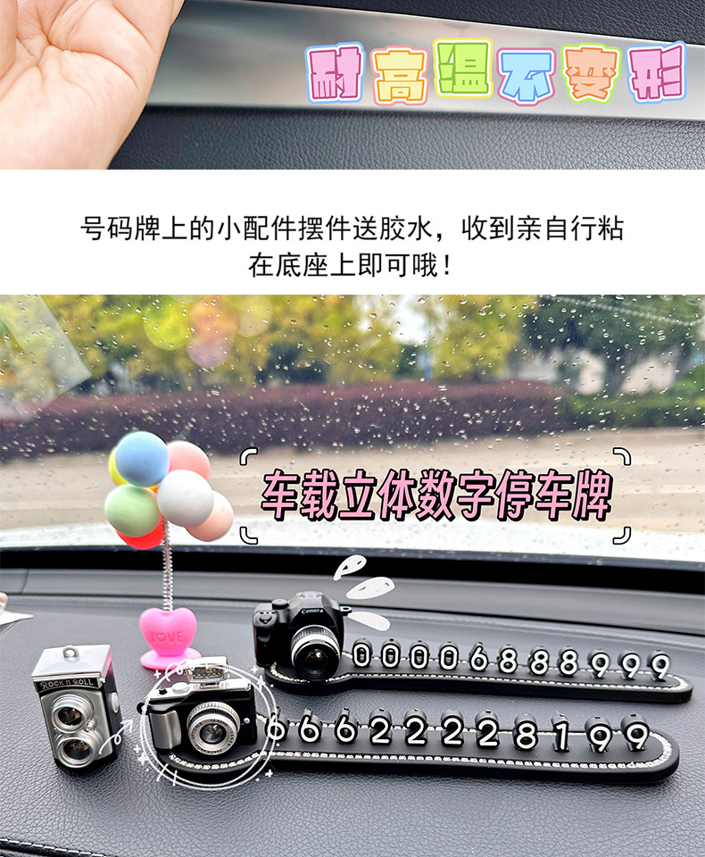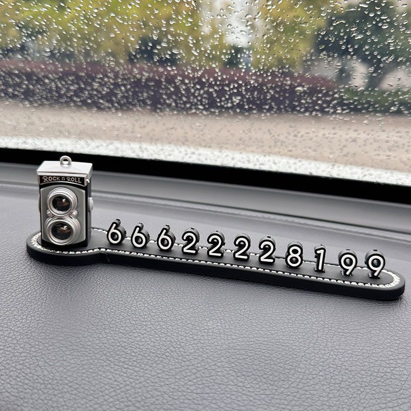 汽车临时停车号码牌创意个性复古相机移车挪车电话车载手机停车牌