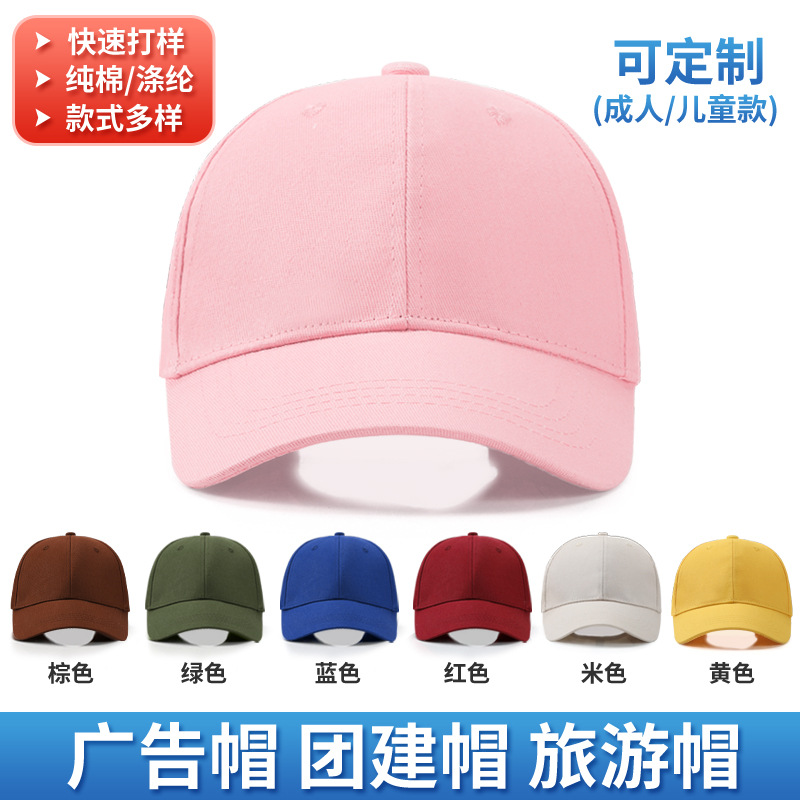 定制纯棉硬顶棒球帽印LOGO纯色光板鸭舌帽女户外防晒太阳帽男批发