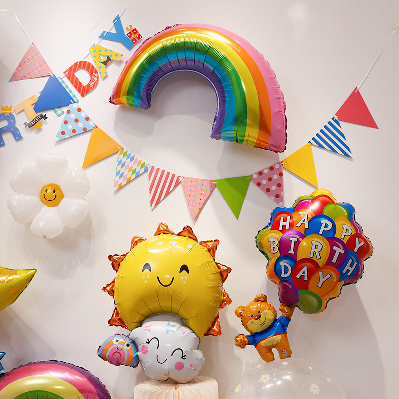 ins风彩虹云朵雏菊造型铝膜气球拍照道具宝宝儿童生日派对太阳花