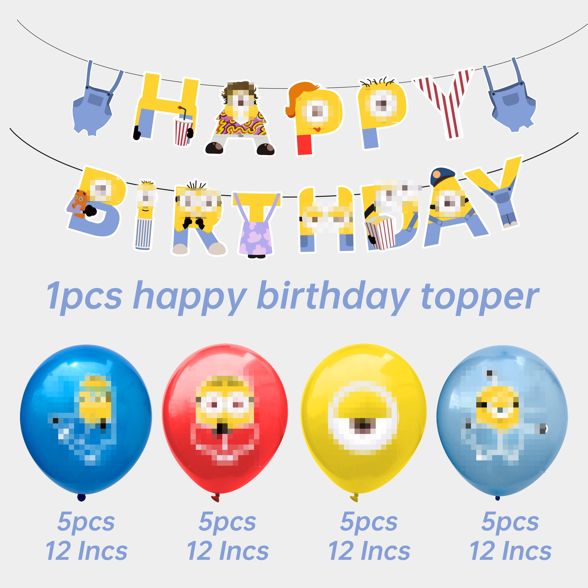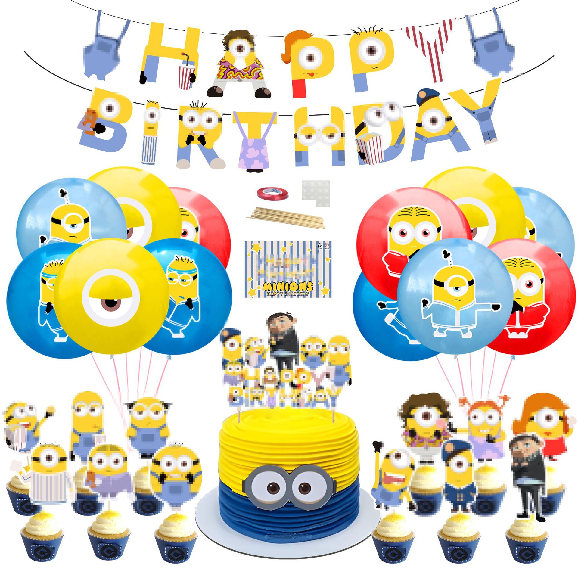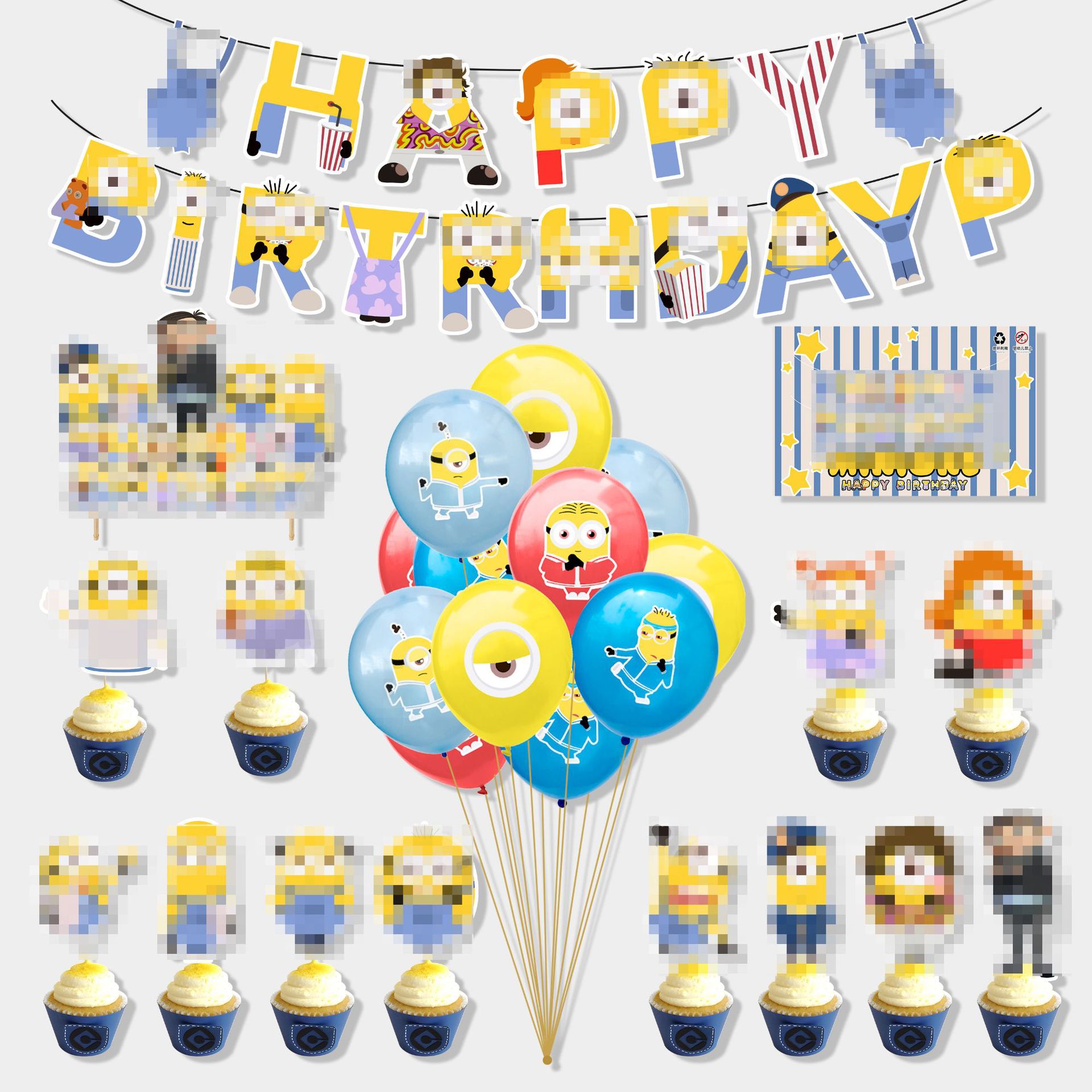 小小兵主题派对生日节庆场景布置拉旗蛋糕插儿童气球装饰用品
