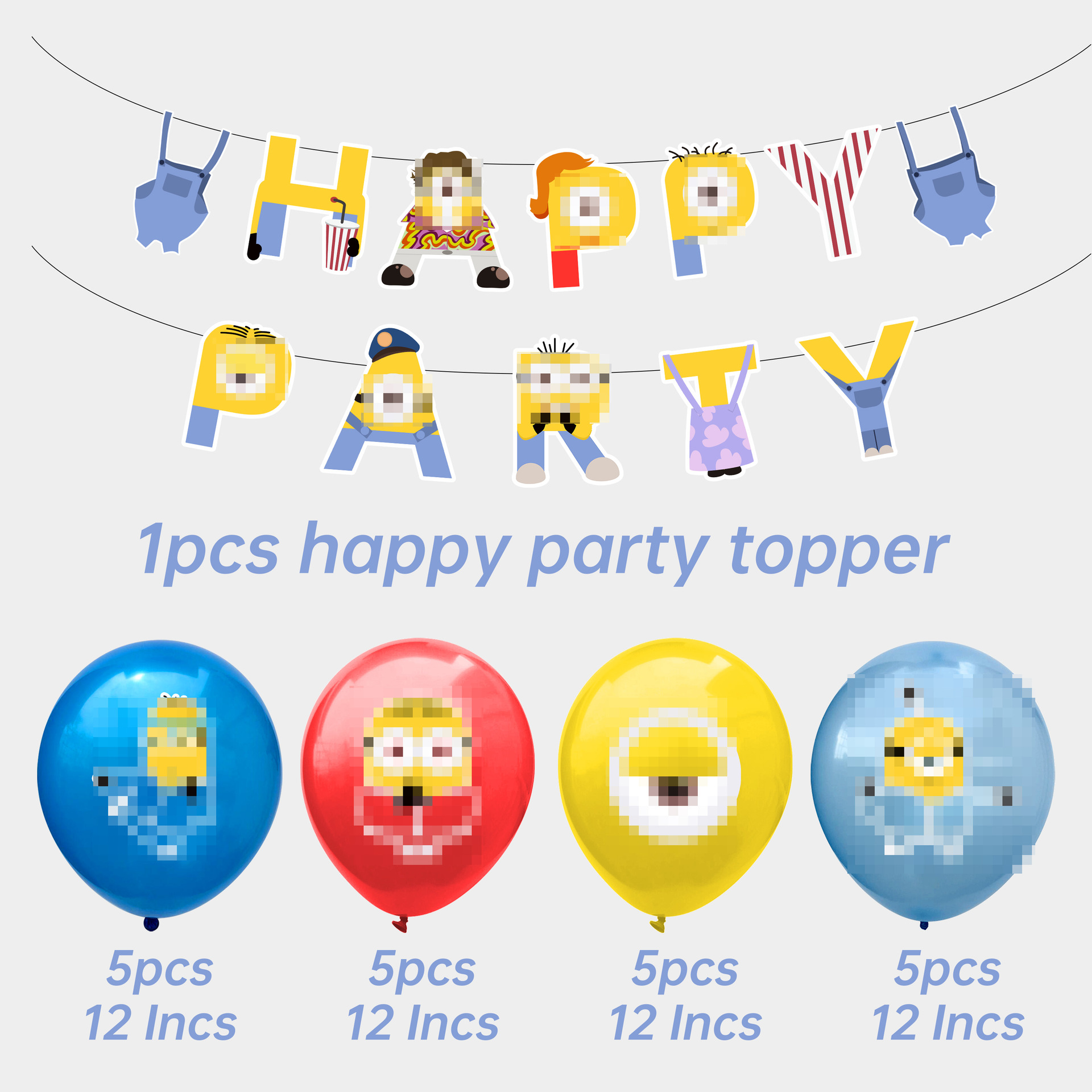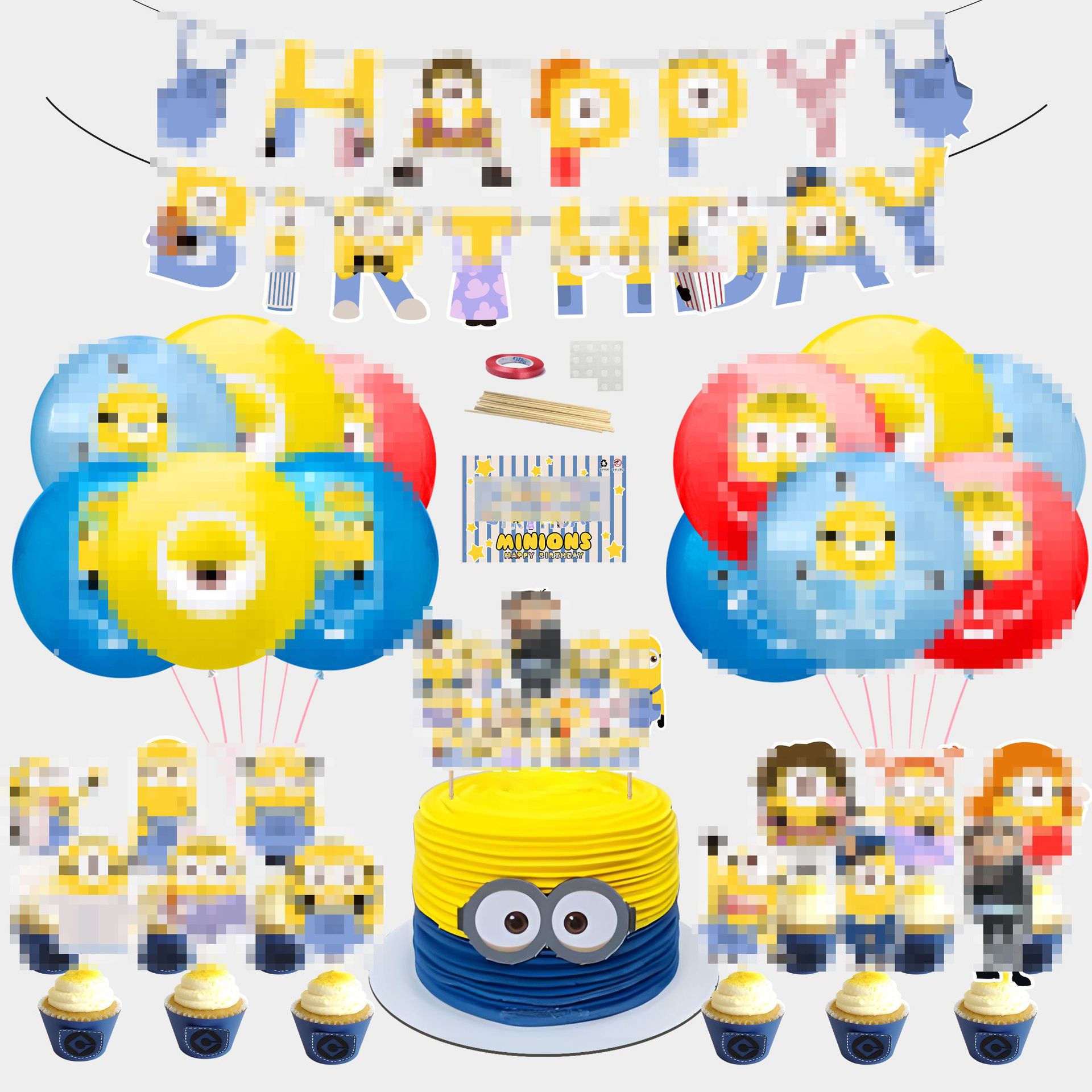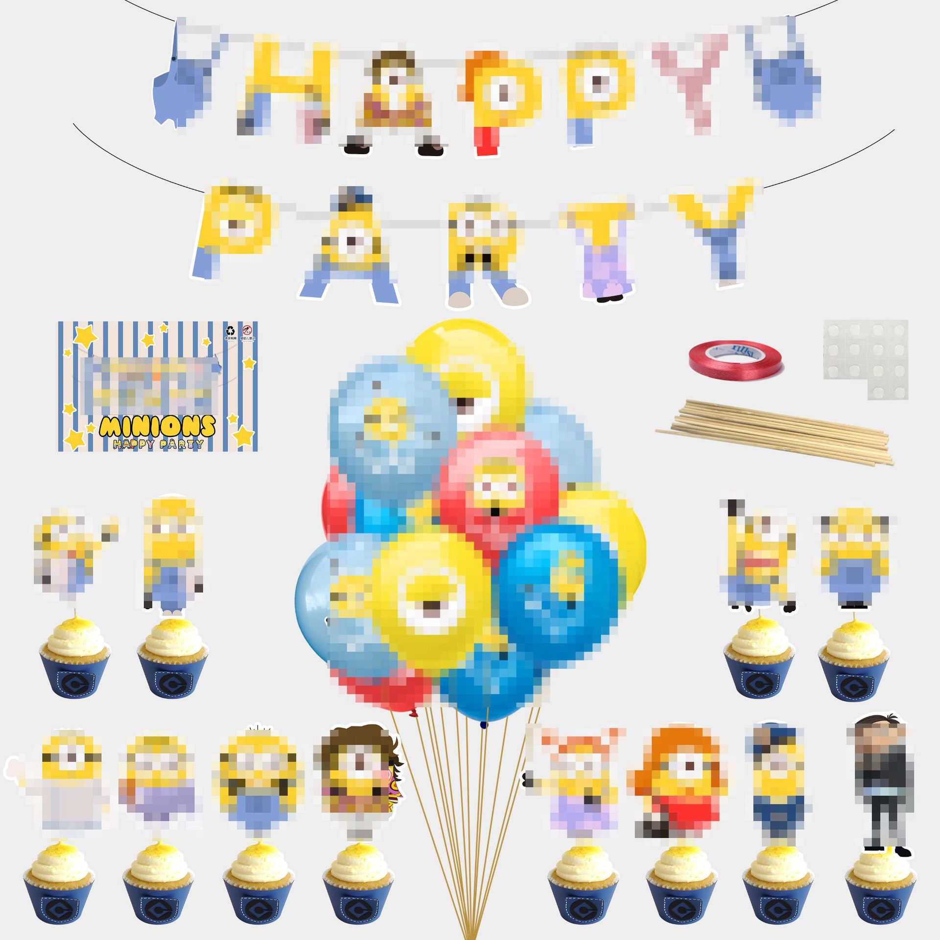 小小兵主题派对生日节庆场景布置拉旗蛋糕插儿童气球装饰用品