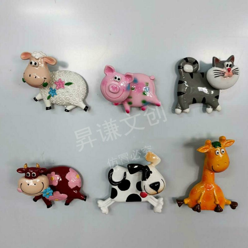 卡通摇头猫狗猪羊牛动物冰箱贴厂家直供饰品可爱树脂配件冰箱贴