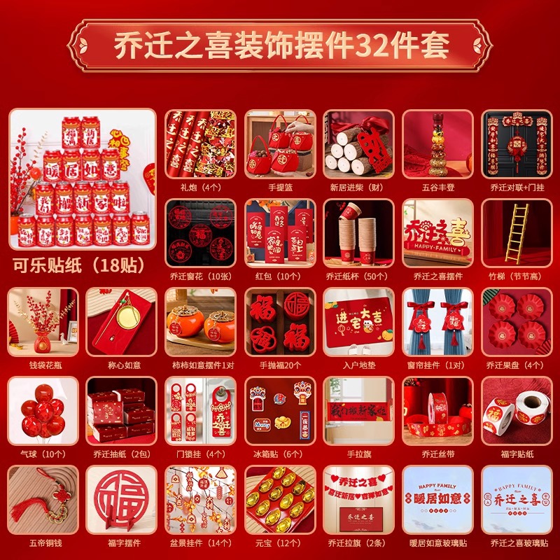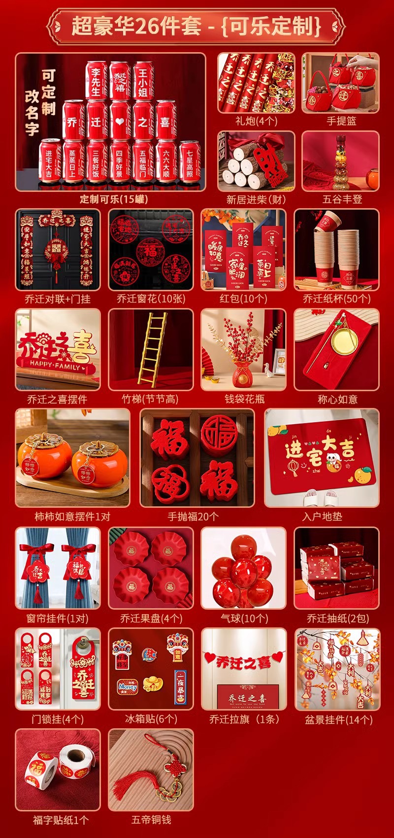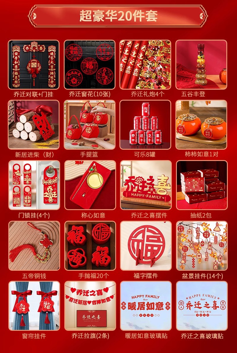 乔迁之喜全套搬家仪式用品新居布置装饰礼品入宅礼物新房入伙摆件