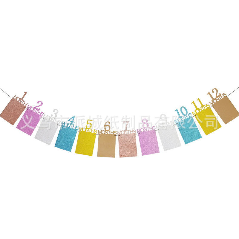1st Birthday宝宝一周岁12个月生日照片拉旗周岁生日布置打印照片